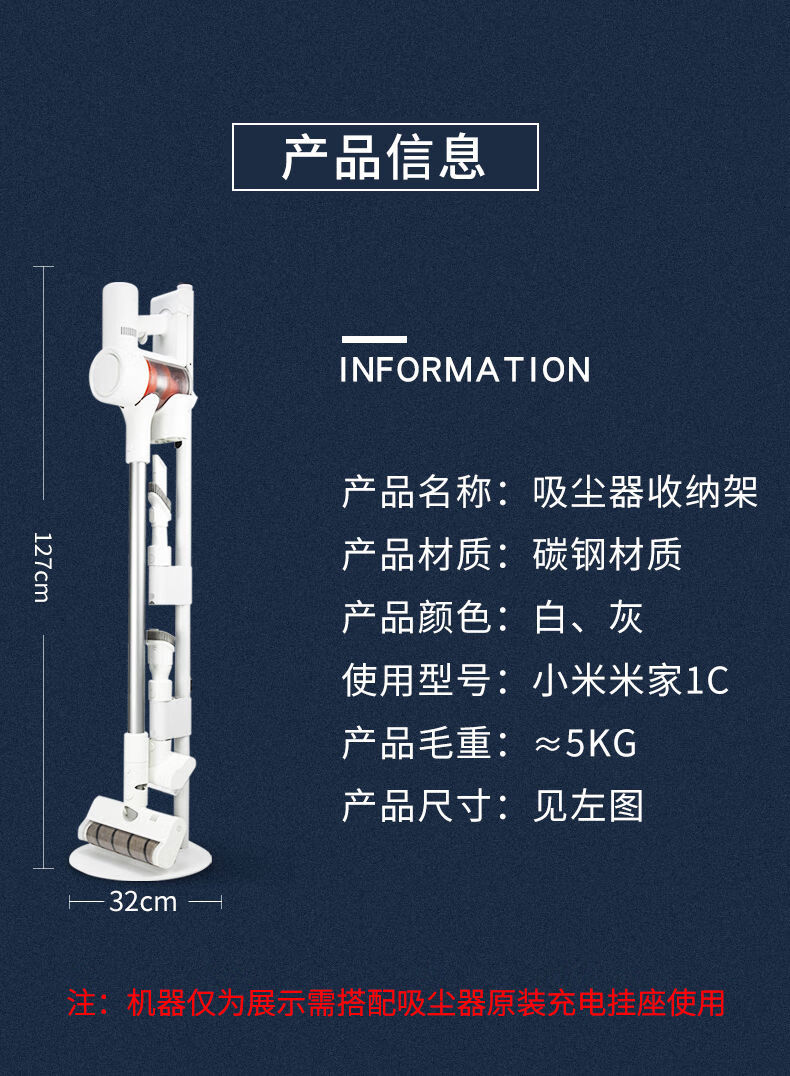 Suitable for Xiaomi Mijia vacuum cleaner hanging bracket 2ProG20liteG9G10Plus punch-free storage shelf wireless vacuum cleaner 2 hidden wire model white weighted