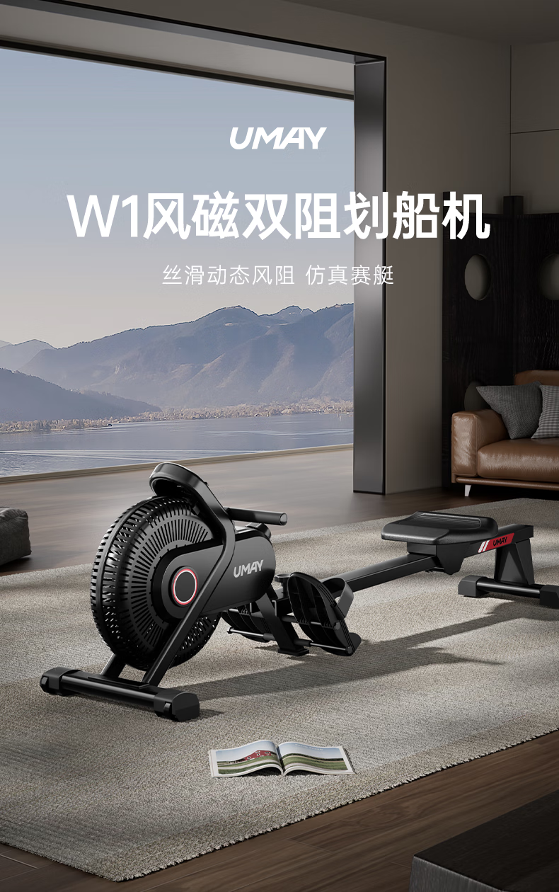 UMAY Youmei rowing machine home wind-magnetic dual resistance indoor silent folding fitness equipment gym rowing trainer folding model wind resistance + magnetic resistance dual resistance丨16-level resistance adjustment丨Bold and refined