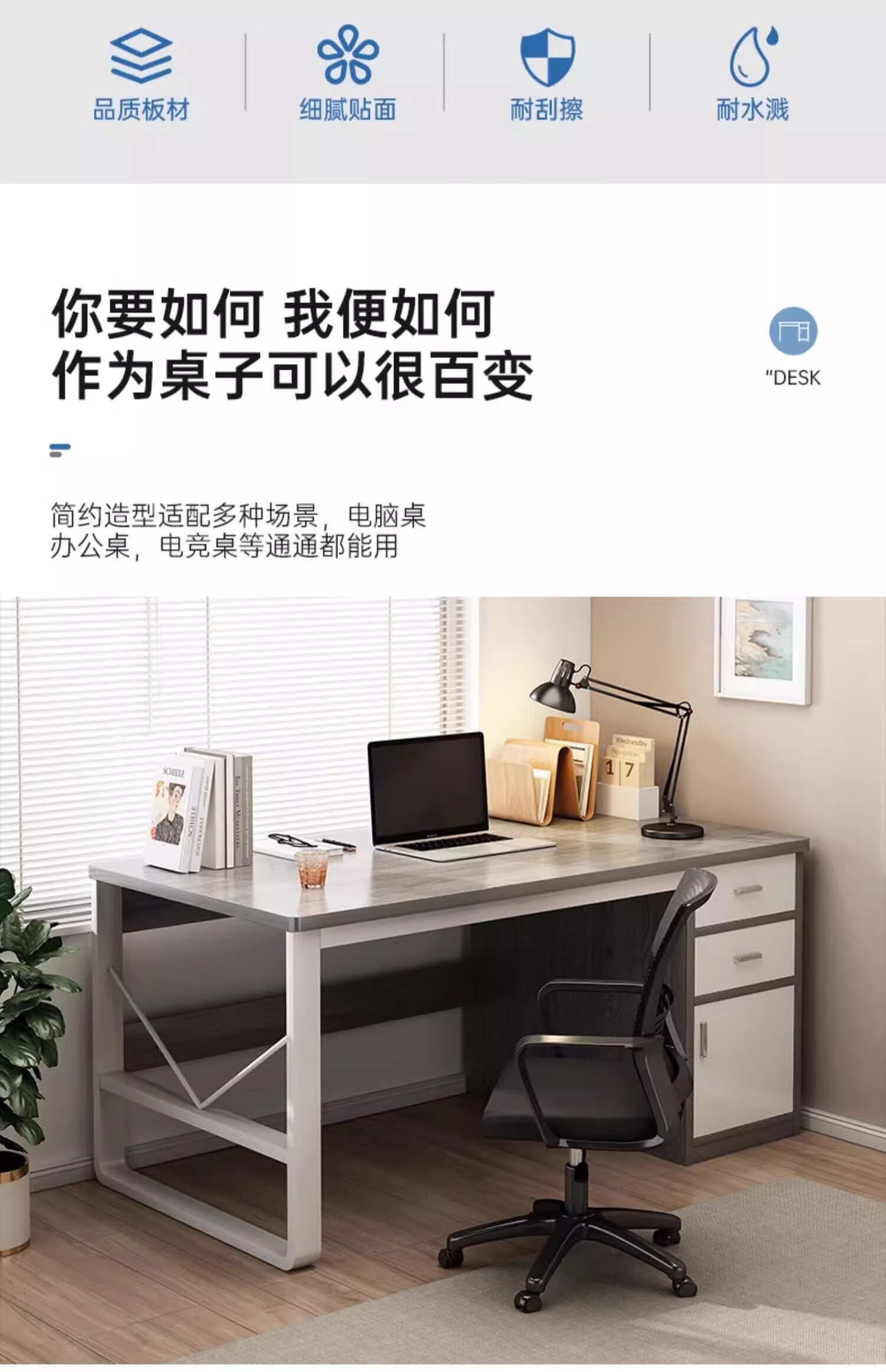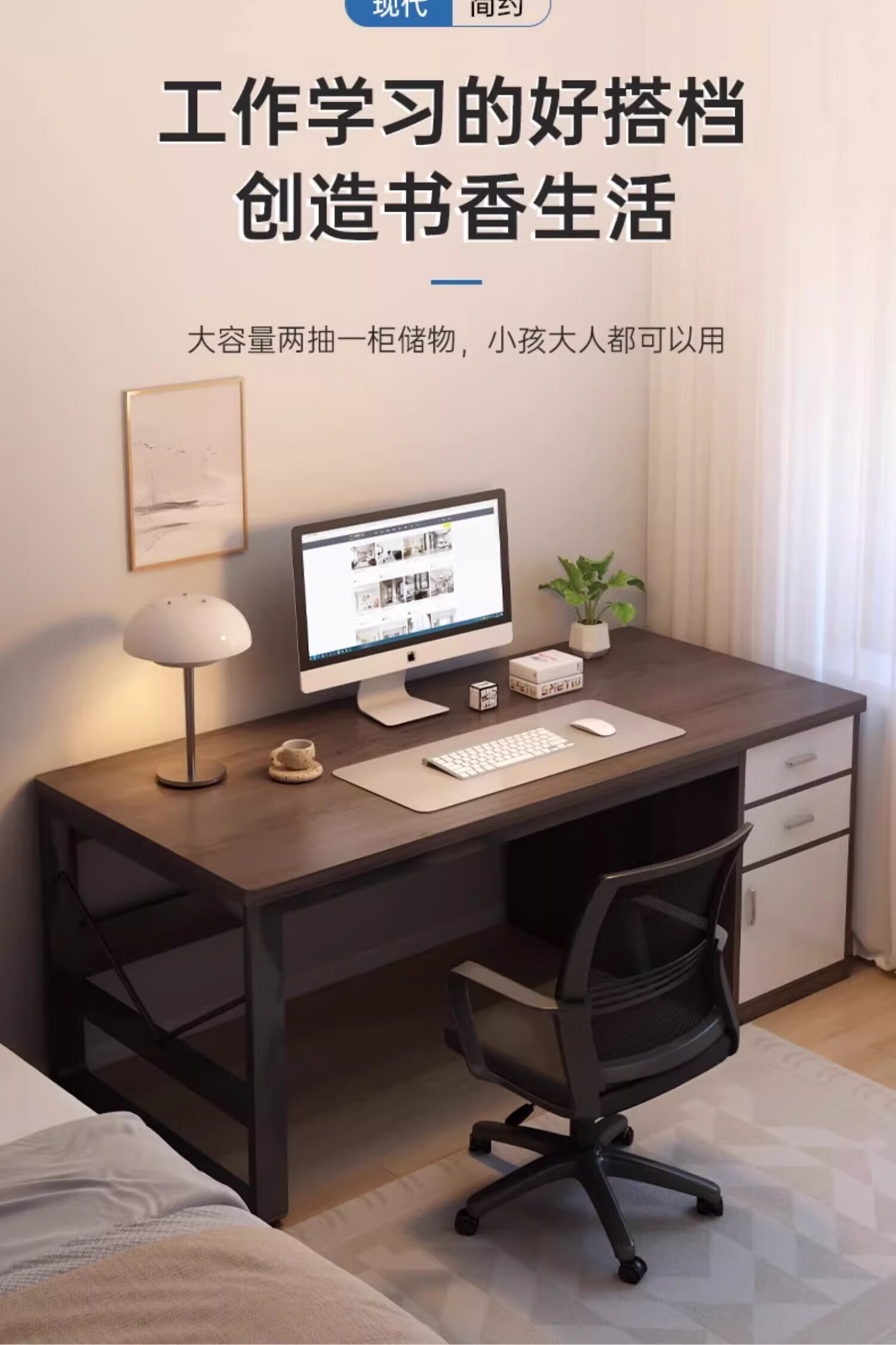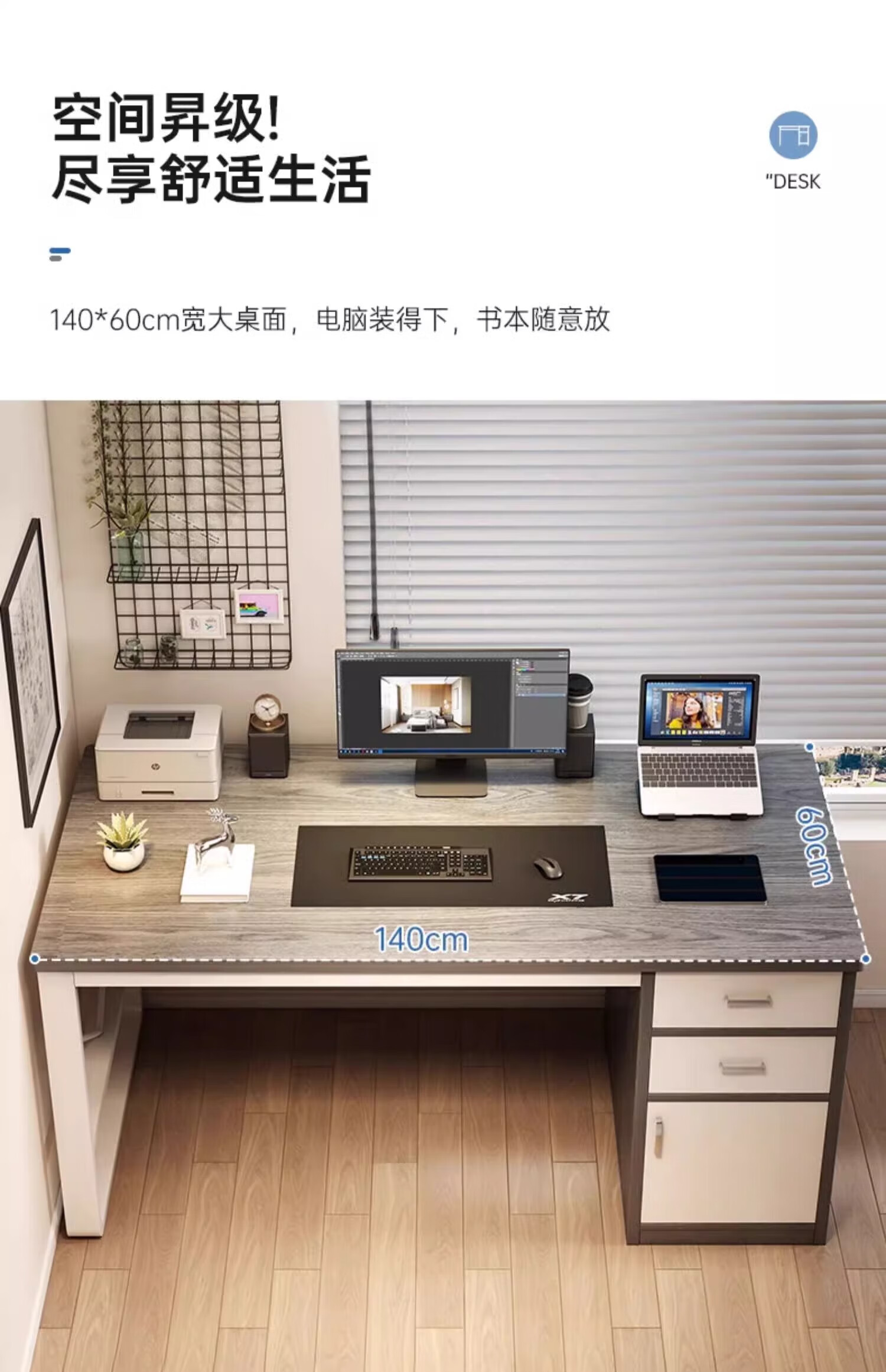 Computer desk desktop home desk student study desk simple workbench bedroom with drawers office desk two drawers and one cabinet 120*60CM Morandi gray