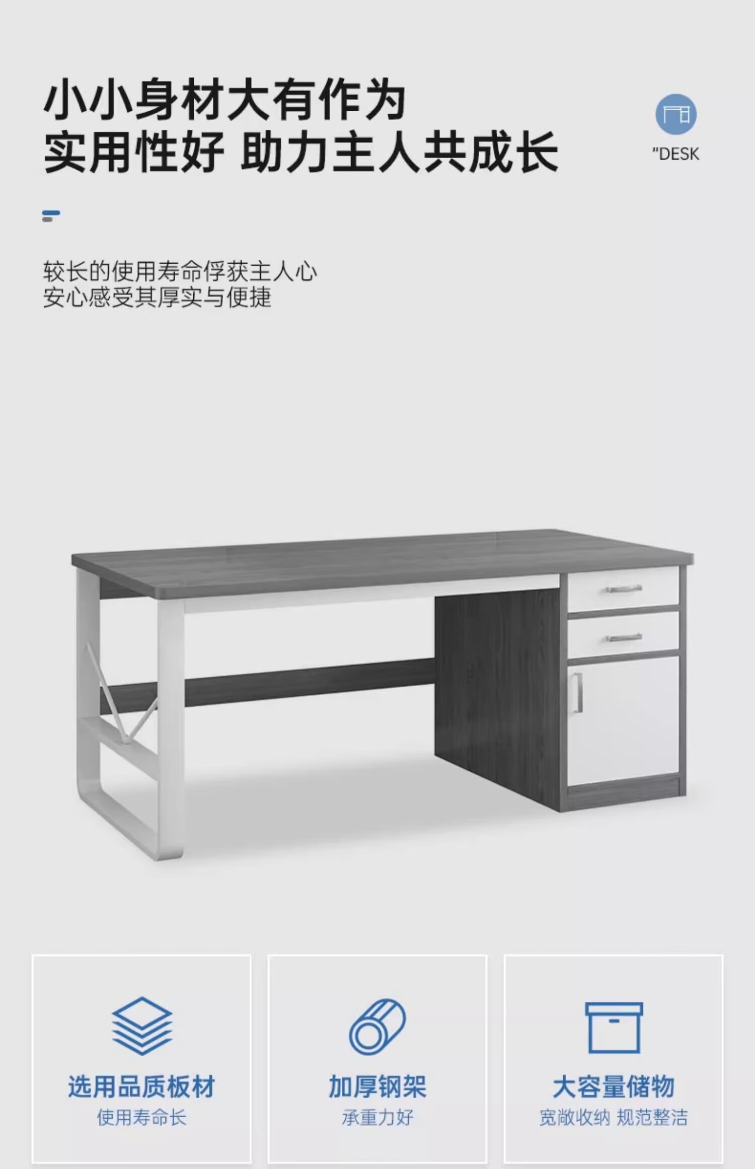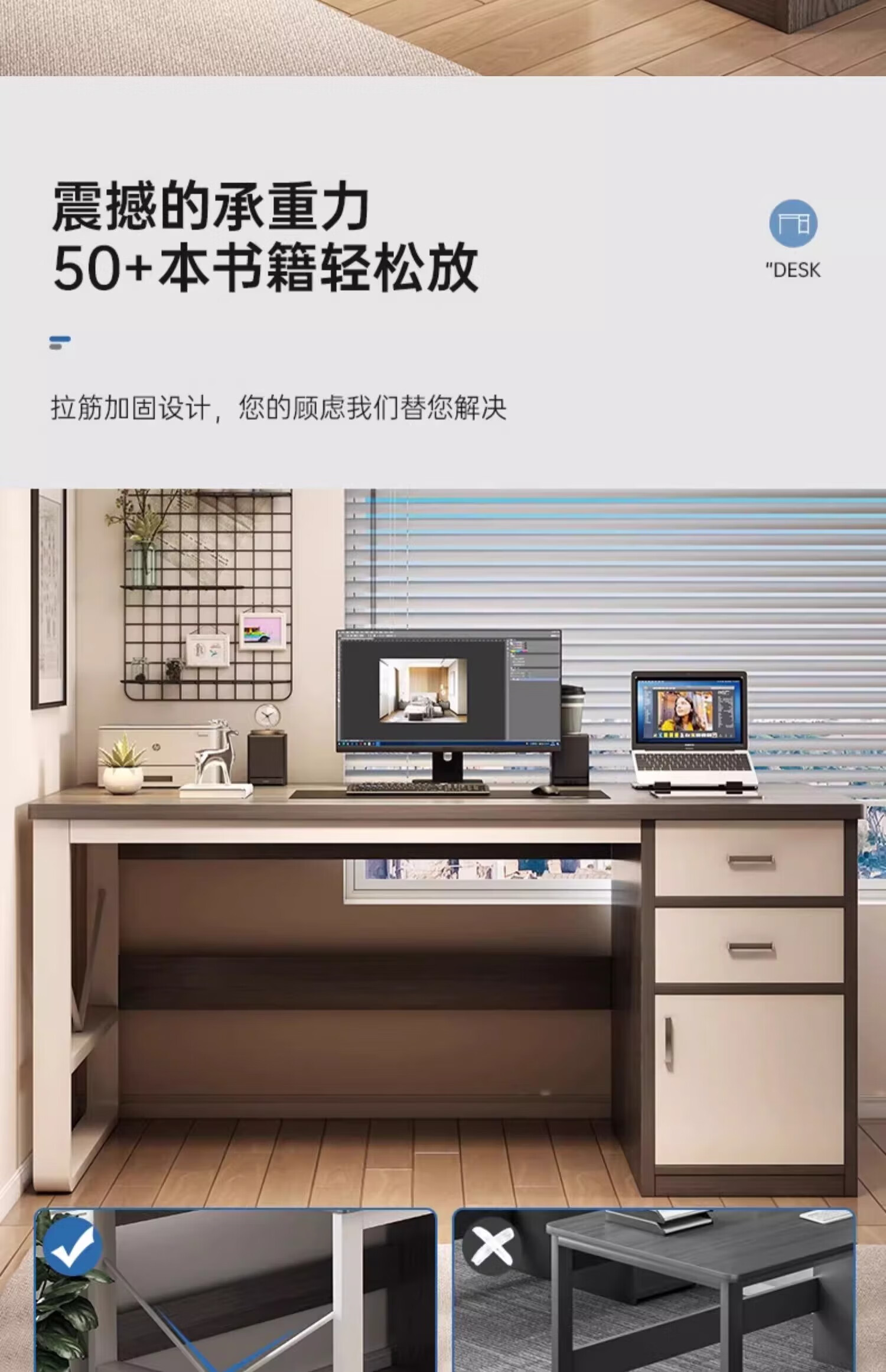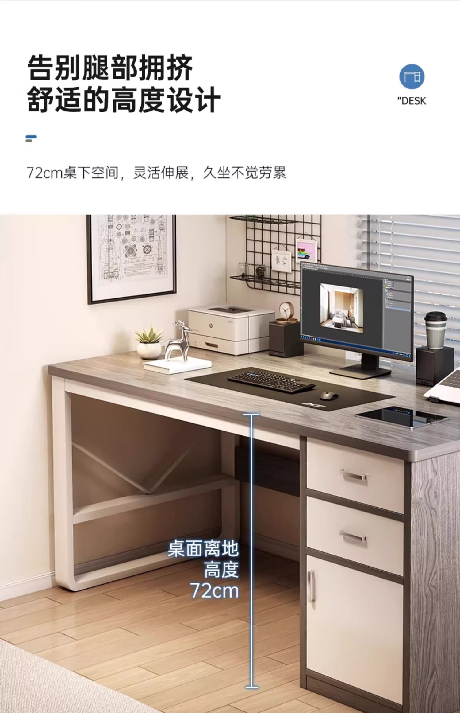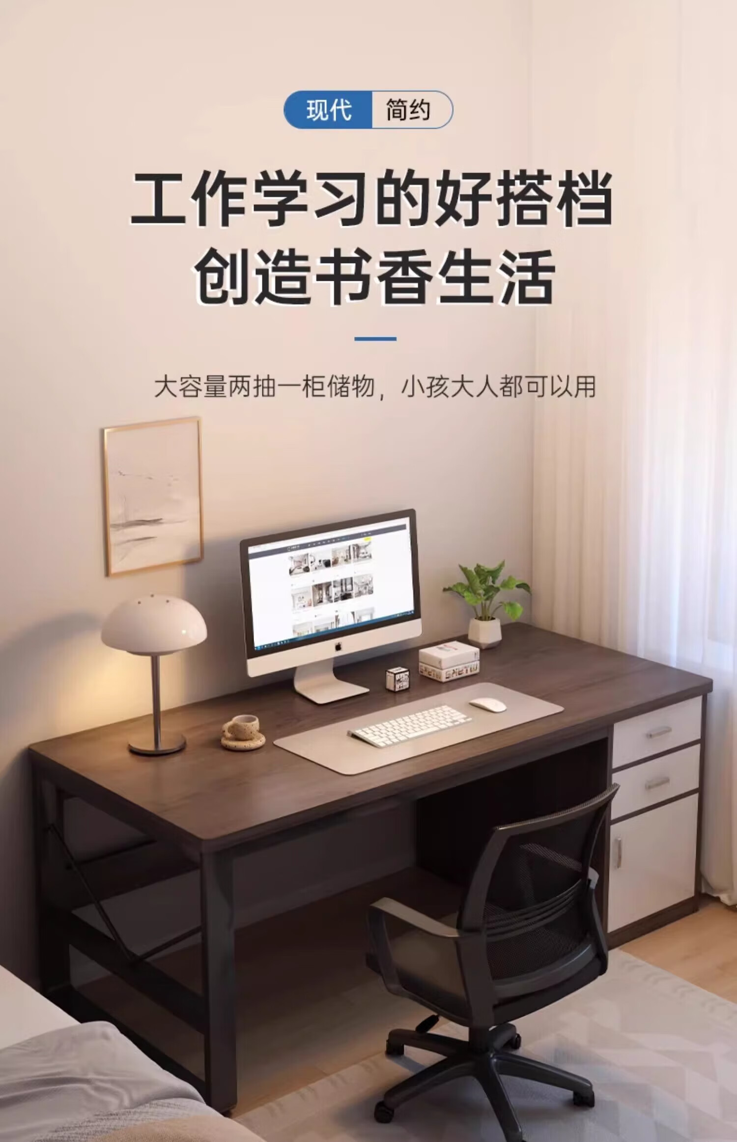 Computer desk desktop home desk student study desk simple workbench bedroom with drawers office desk two drawers and one cabinet 120*60CM Morandi gray