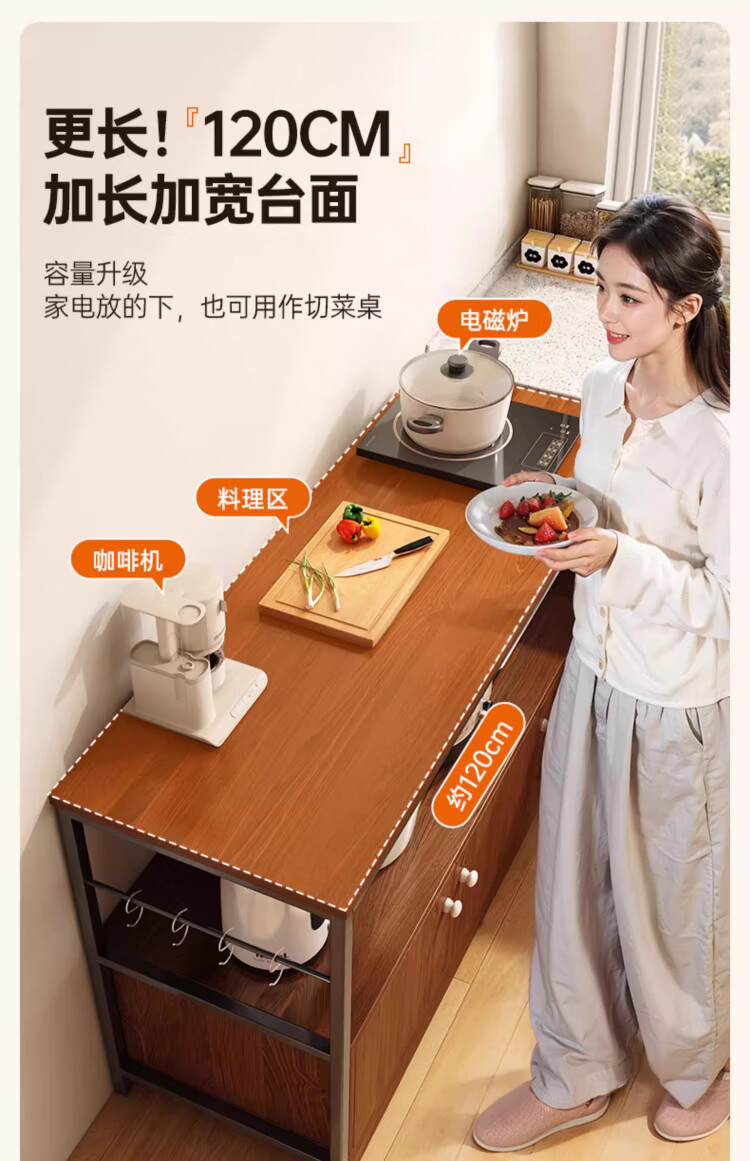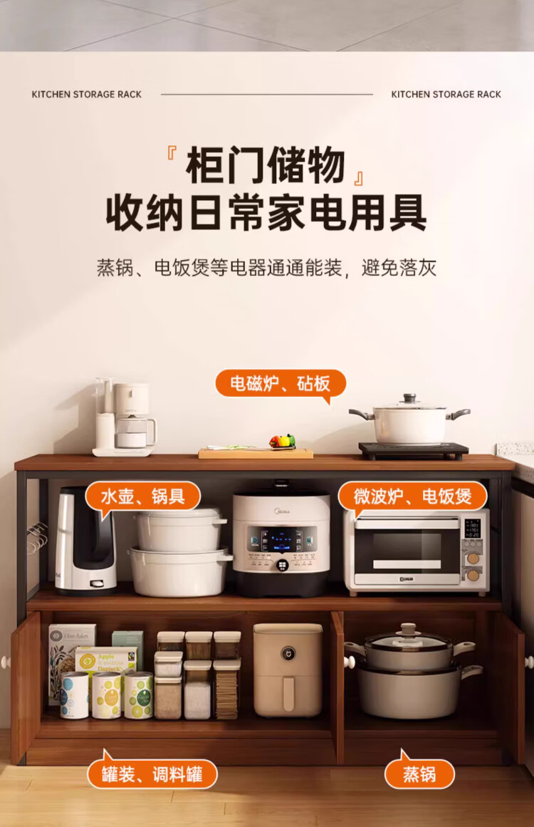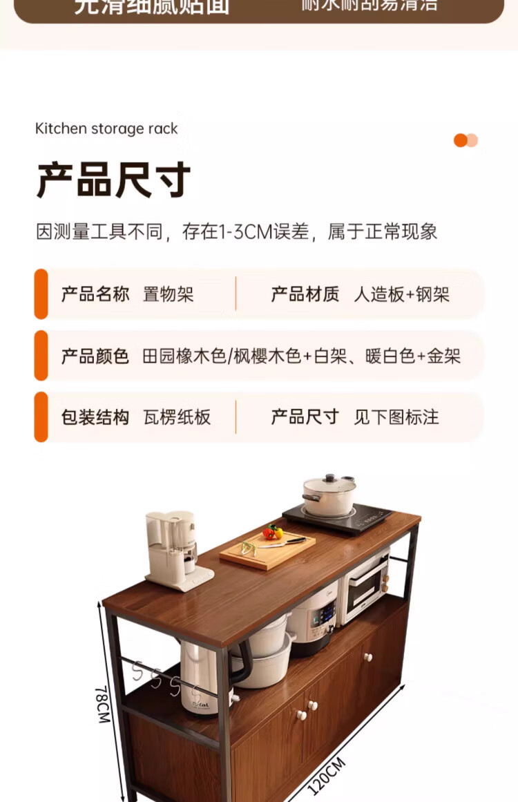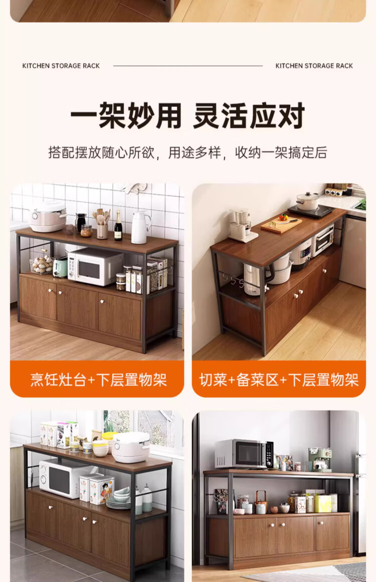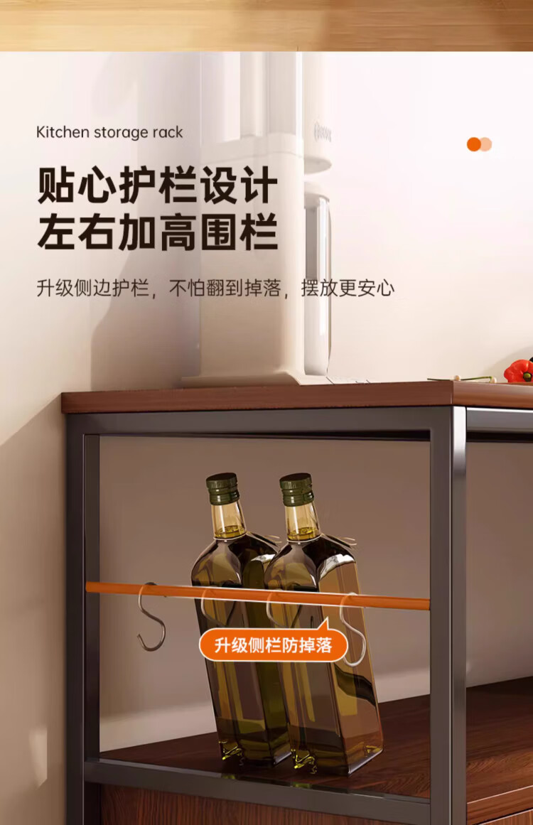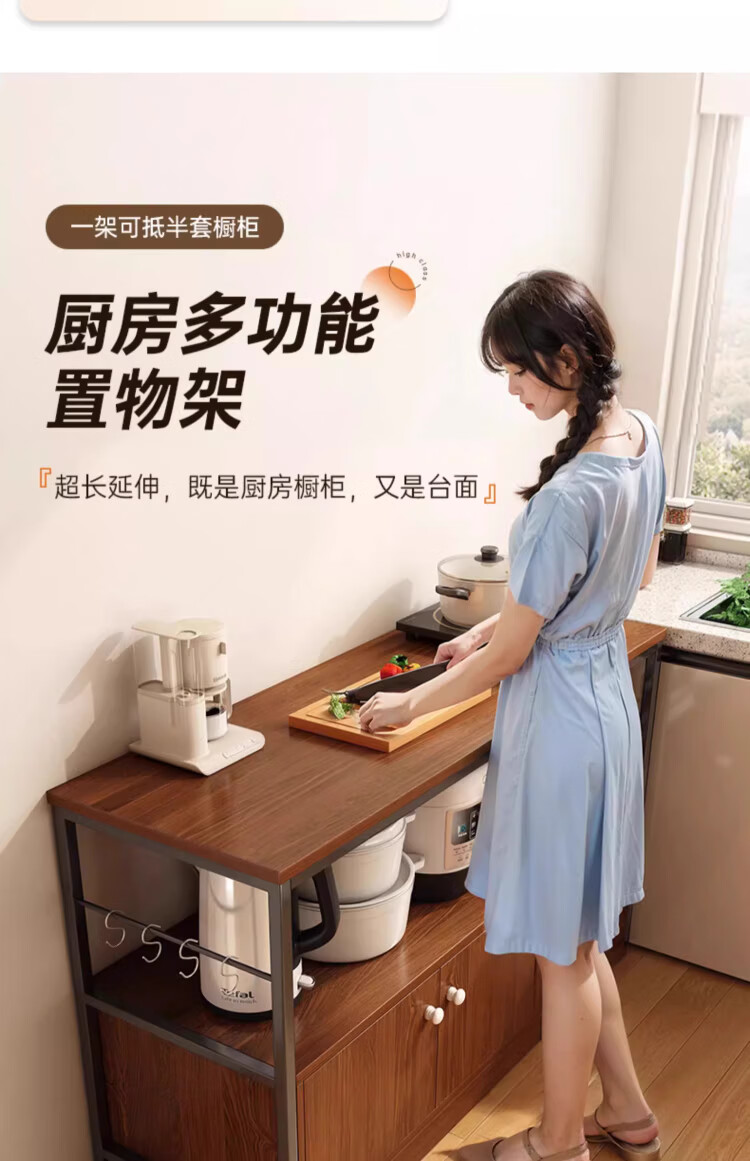 Kitchen rack floor-standing integrated wall storage cabinet new multi-functional pot storage rack multi-layer sideboard 120cm field oak color bold and thickened + free hook