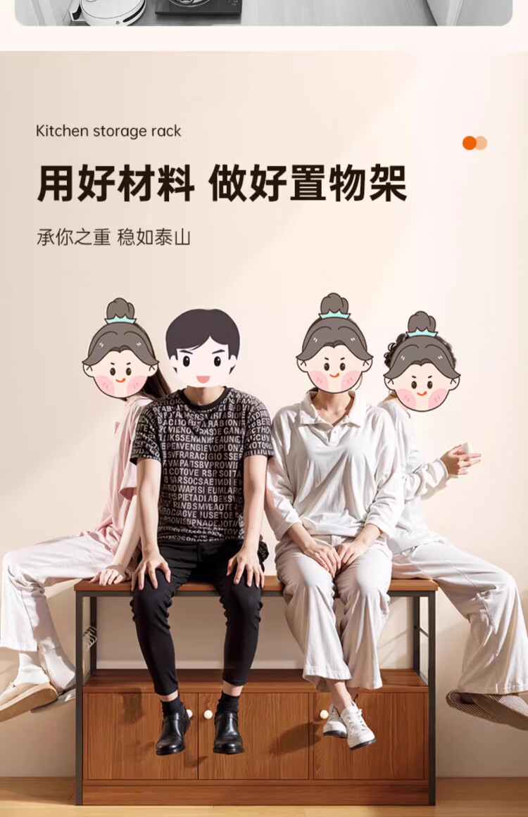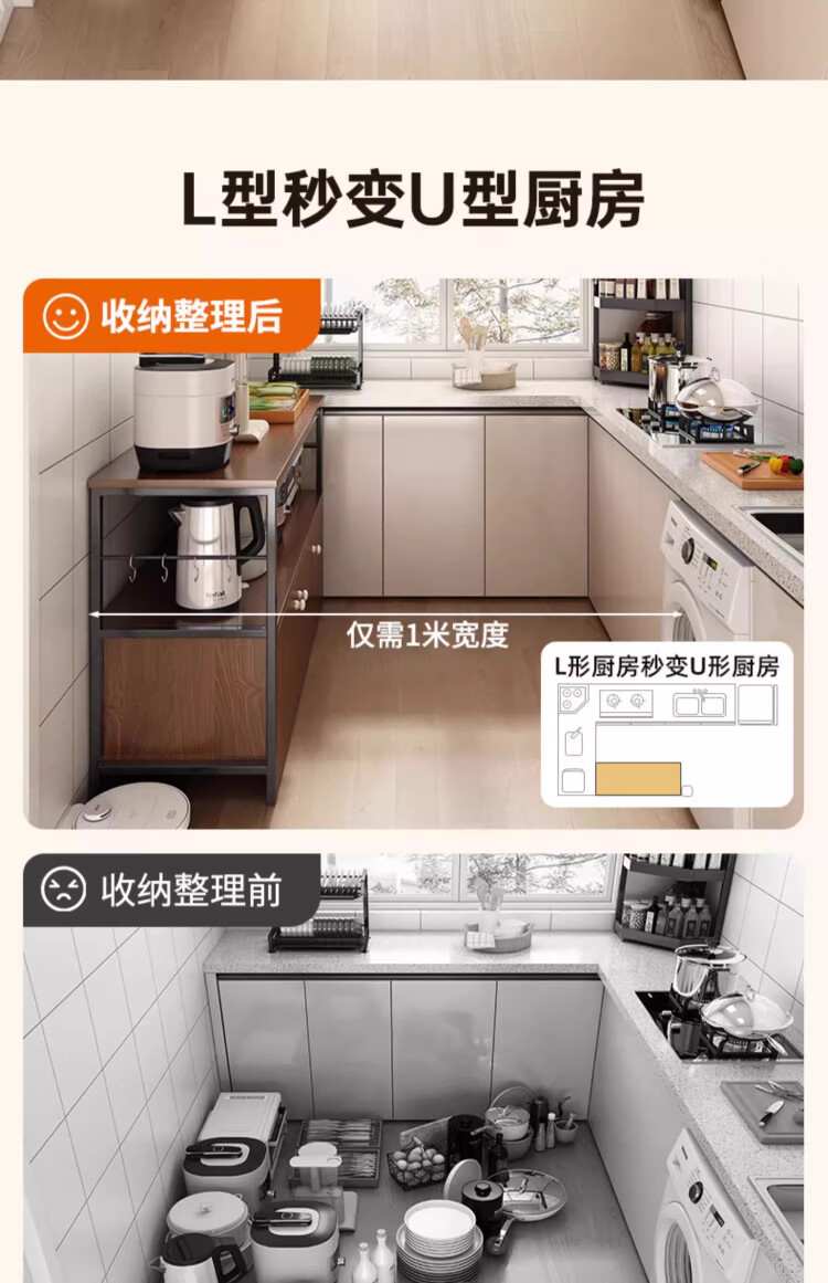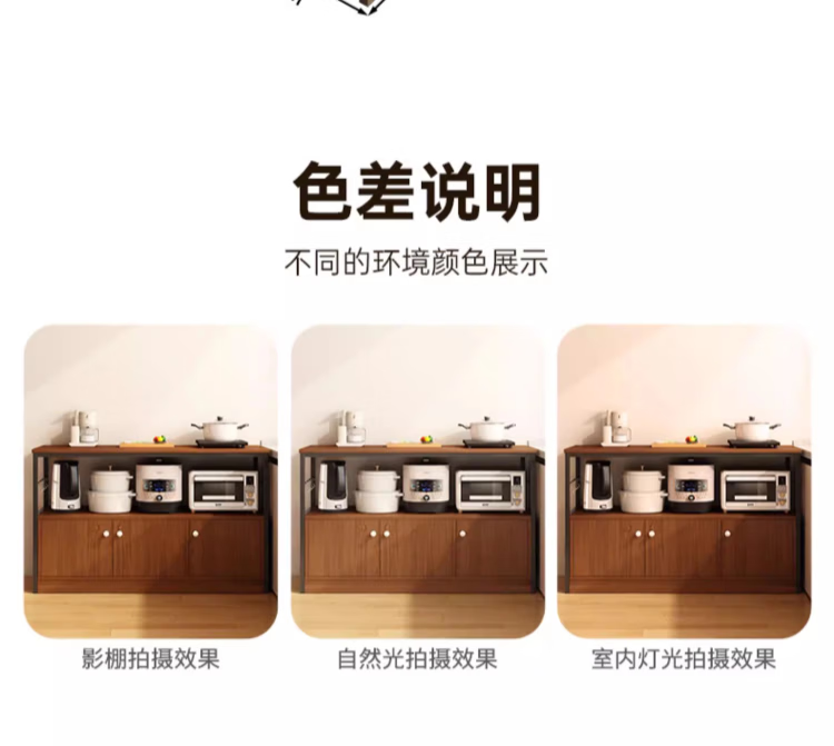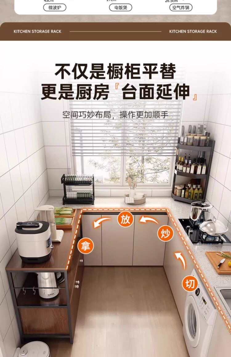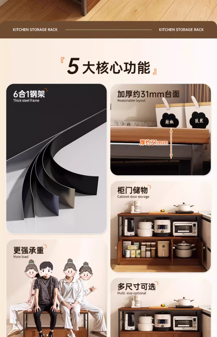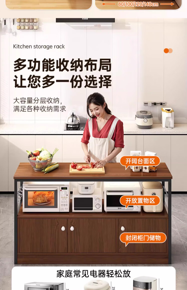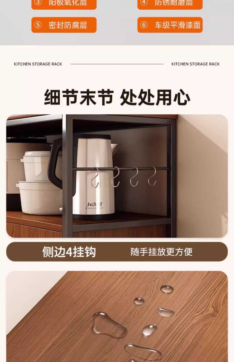 Kitchen rack floor-standing integrated wall storage cabinet new multi-functional pot storage rack multi-layer sideboard 120cm field oak color bold and thickened + free hook