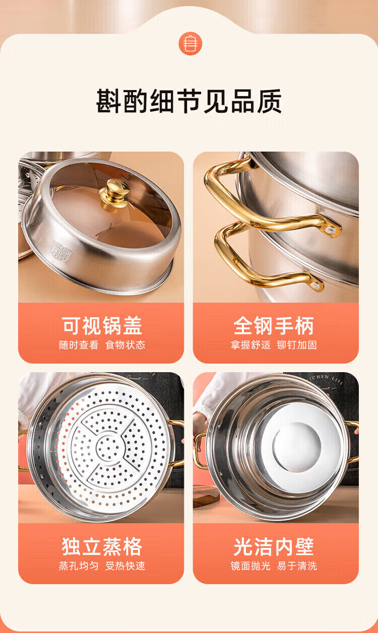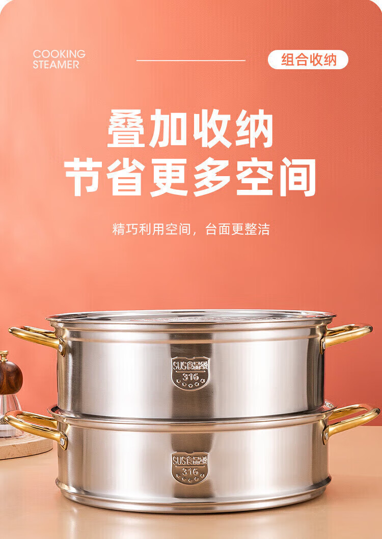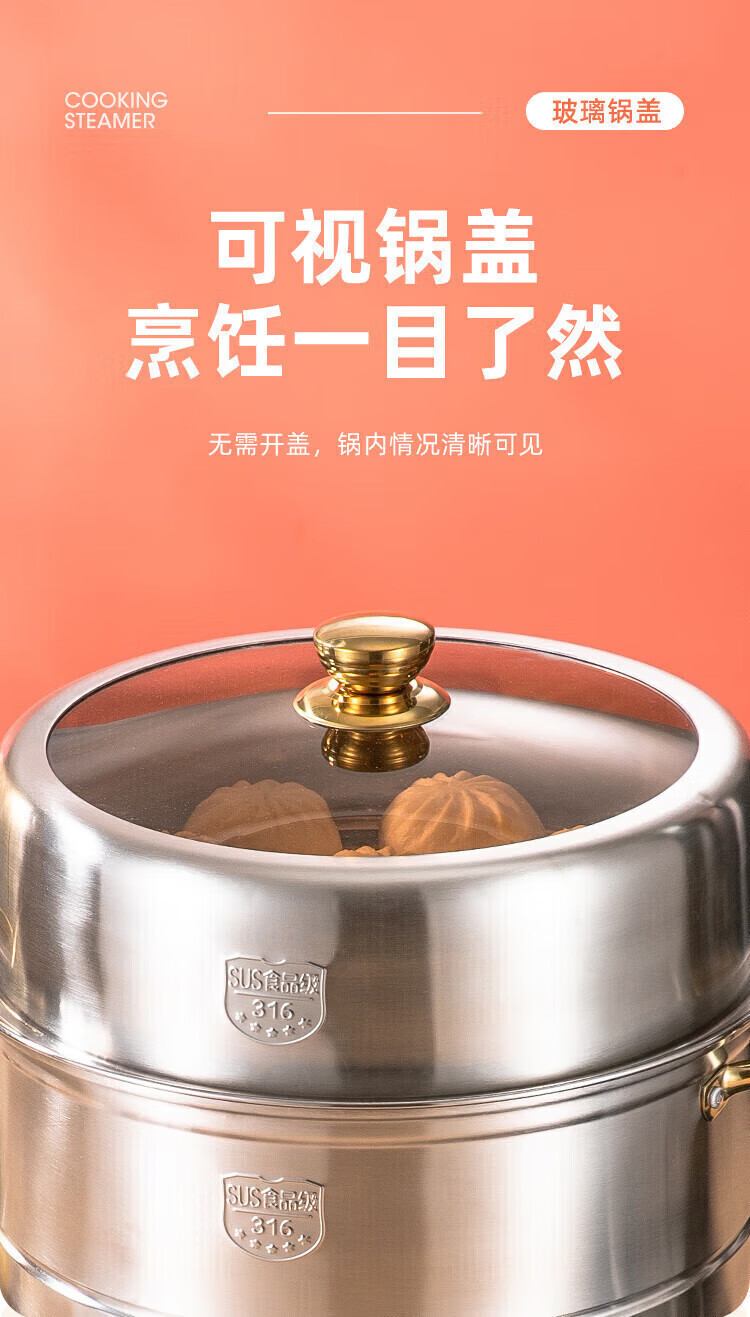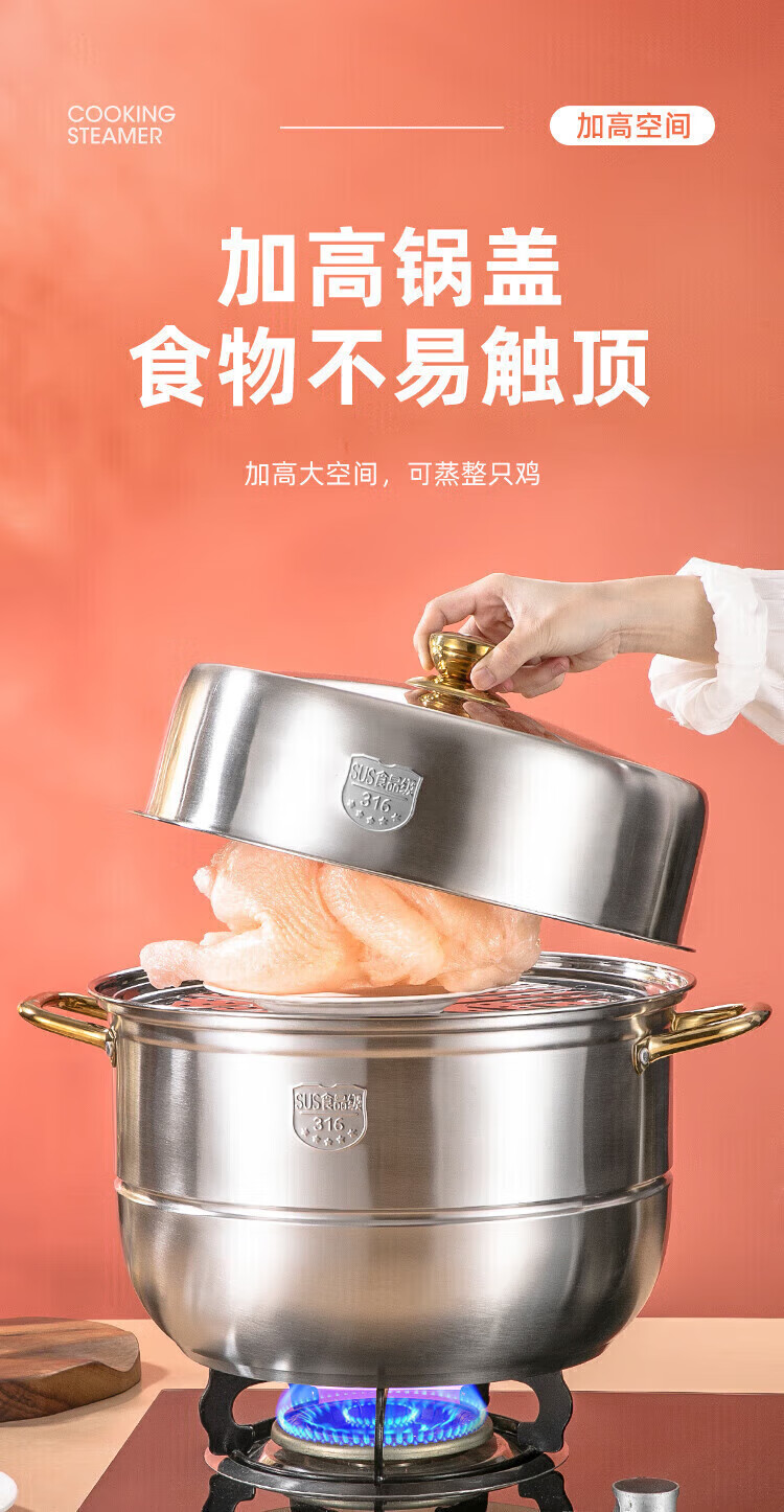Fat Dong Lai Steamer Home Steaming and Stewing 304 Stainless Steel Three-layer Thickened 316 Steamer Steamed Fish Buns Liu Yuning New Year Festival Same Style Midea 4 Classic Edition Double-layer Steamer (3-4 30cm