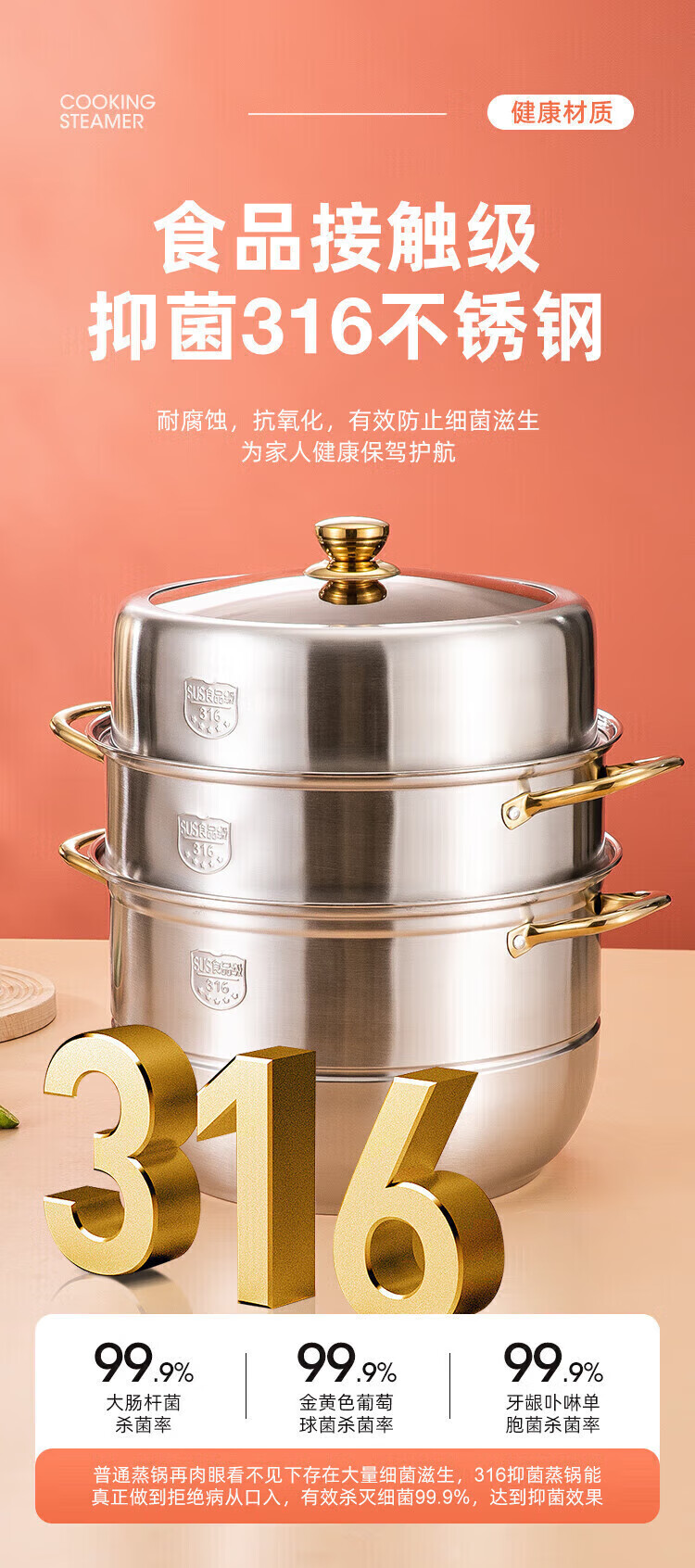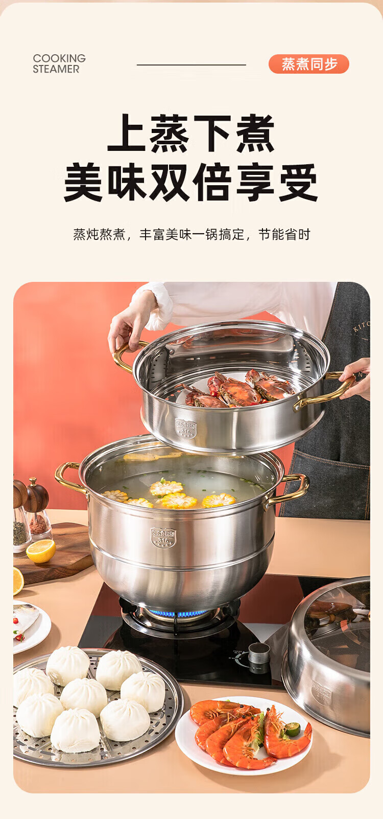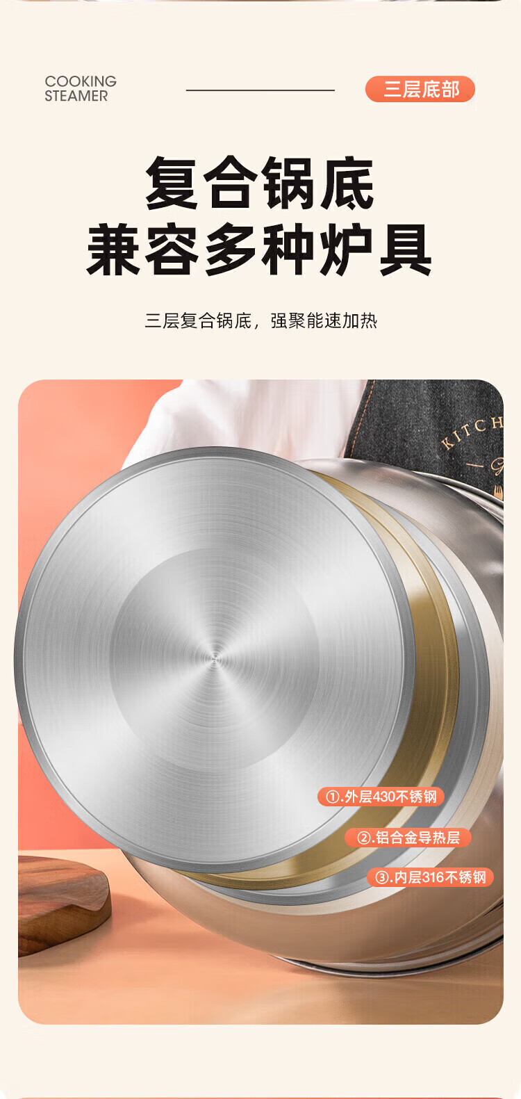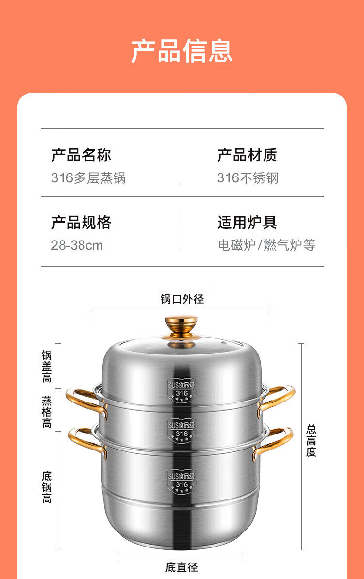 Fat Dong Lai Steamer Home Steaming and Stewing 304 Stainless Steel Three-layer Thickened 316 Steamer Steamed Fish Buns Liu Yuning New Year Festival Same Style Midea 4 Classic Edition Double-layer Steamer (3-4 30cm