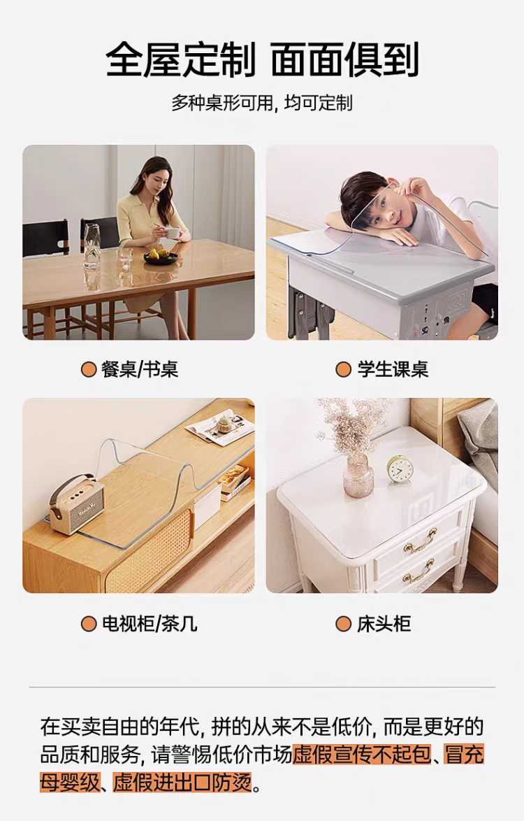 Desktop protective mat dining table mat pvc transparent soft glass coffee table sideboard table mat tablecloth dining table waterproof and oil-proof matte 2.0 food grade antibacterial - thick 1.0mm free custom size contact customer service before taking