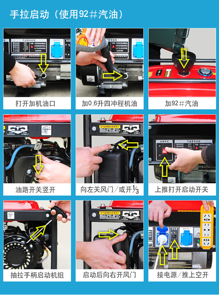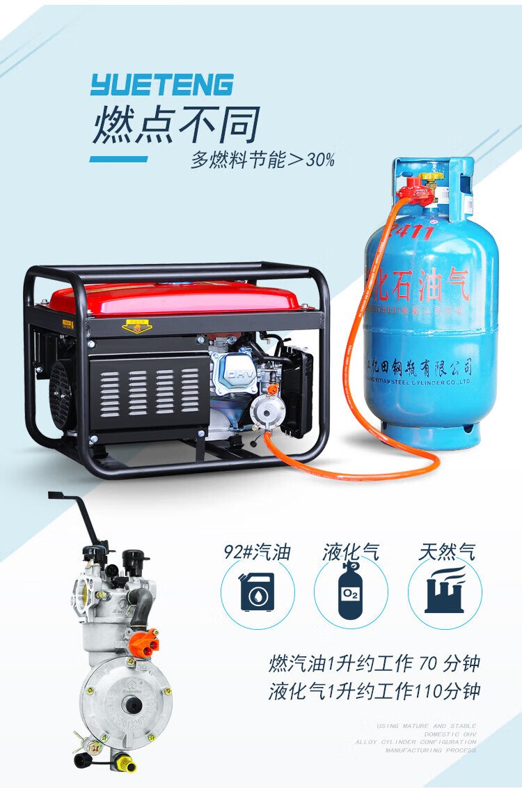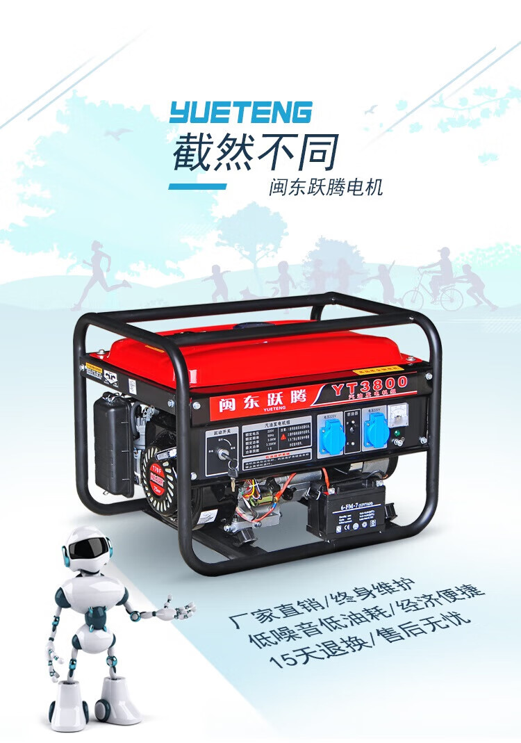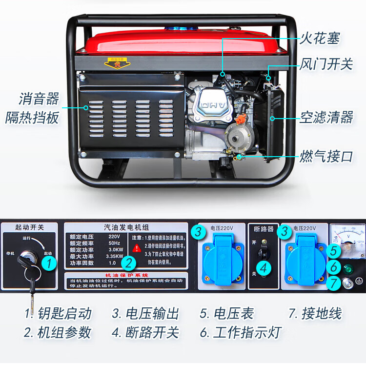 Miyi 3kw small gasoline generator household single-phase 220V three-phase 380V 5/6/8KW/10kW 4000W one-click start multi-fuel 220V with wheels