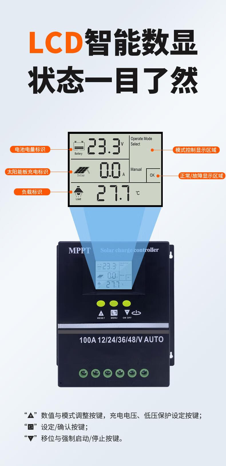 Ouman Ruoli MPPT solar controller fully automatic universal 12V24V36V48V lithium battery photovoltaic MPPT controller new 100A