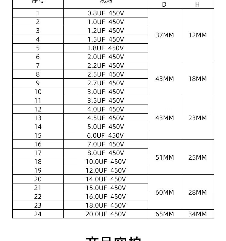 Miyi ceiling fan range hood electric fan blower heater air conditioner 4500.8/3.5/6/7VCBB61 starting capacitor 0.8UF
