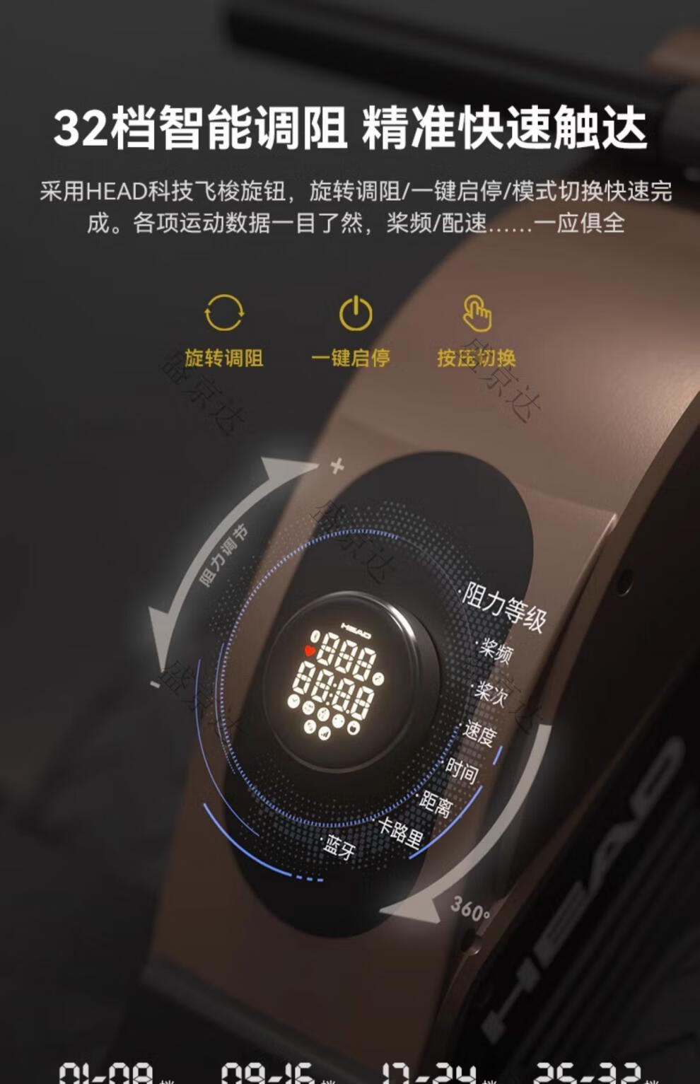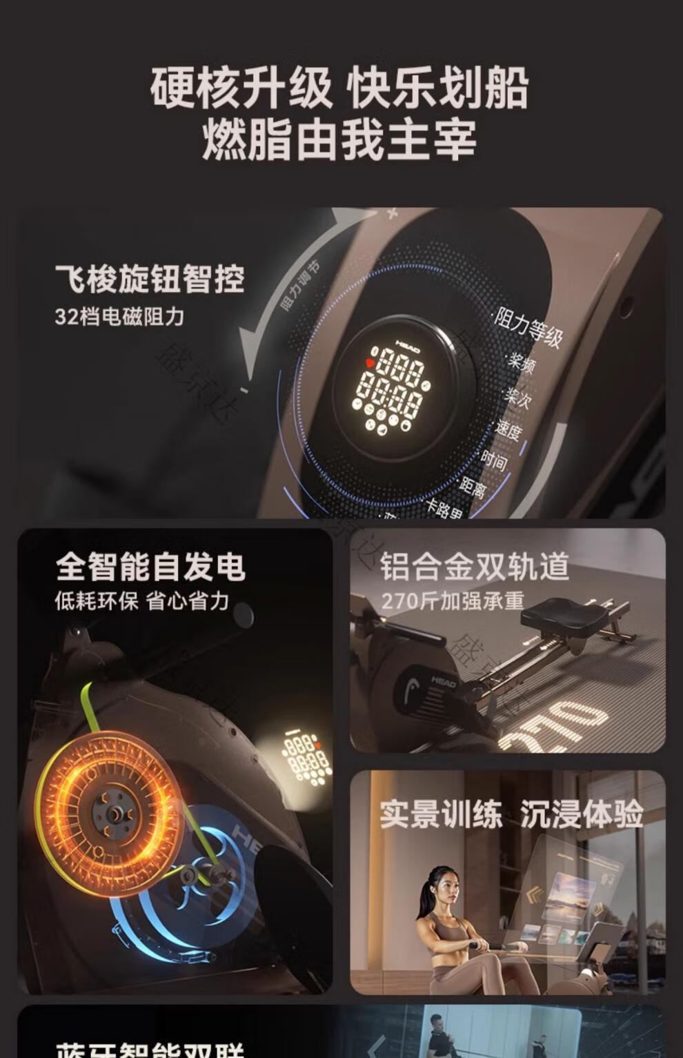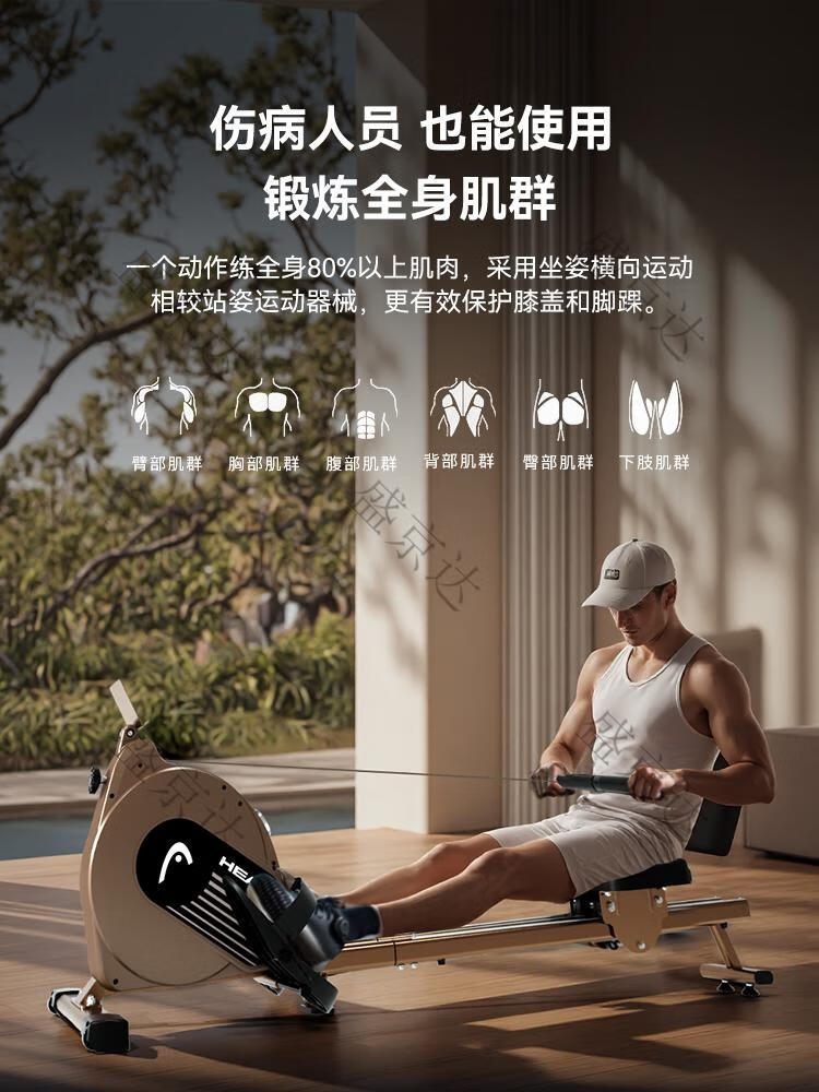 HEAD rowing machine household magnetic resistance silent super fat-burning fitness equipment comprehensive trainer small boat machine standard version 16-speed manual resistance adjustment course