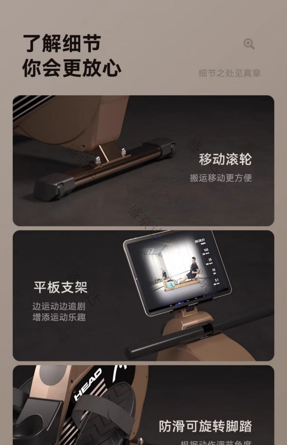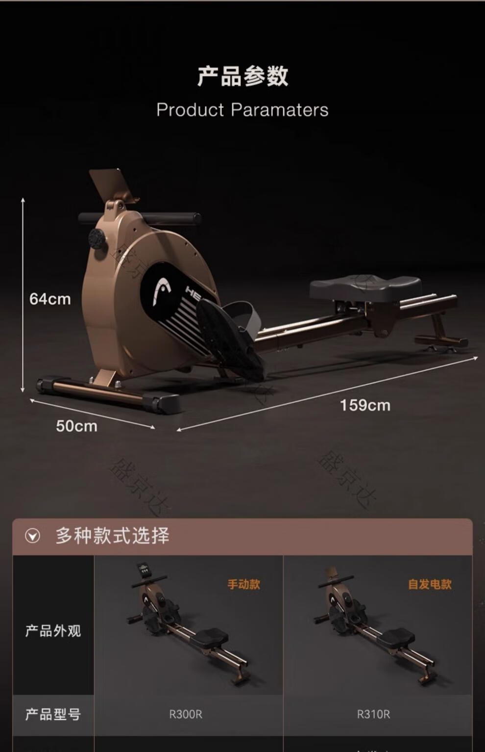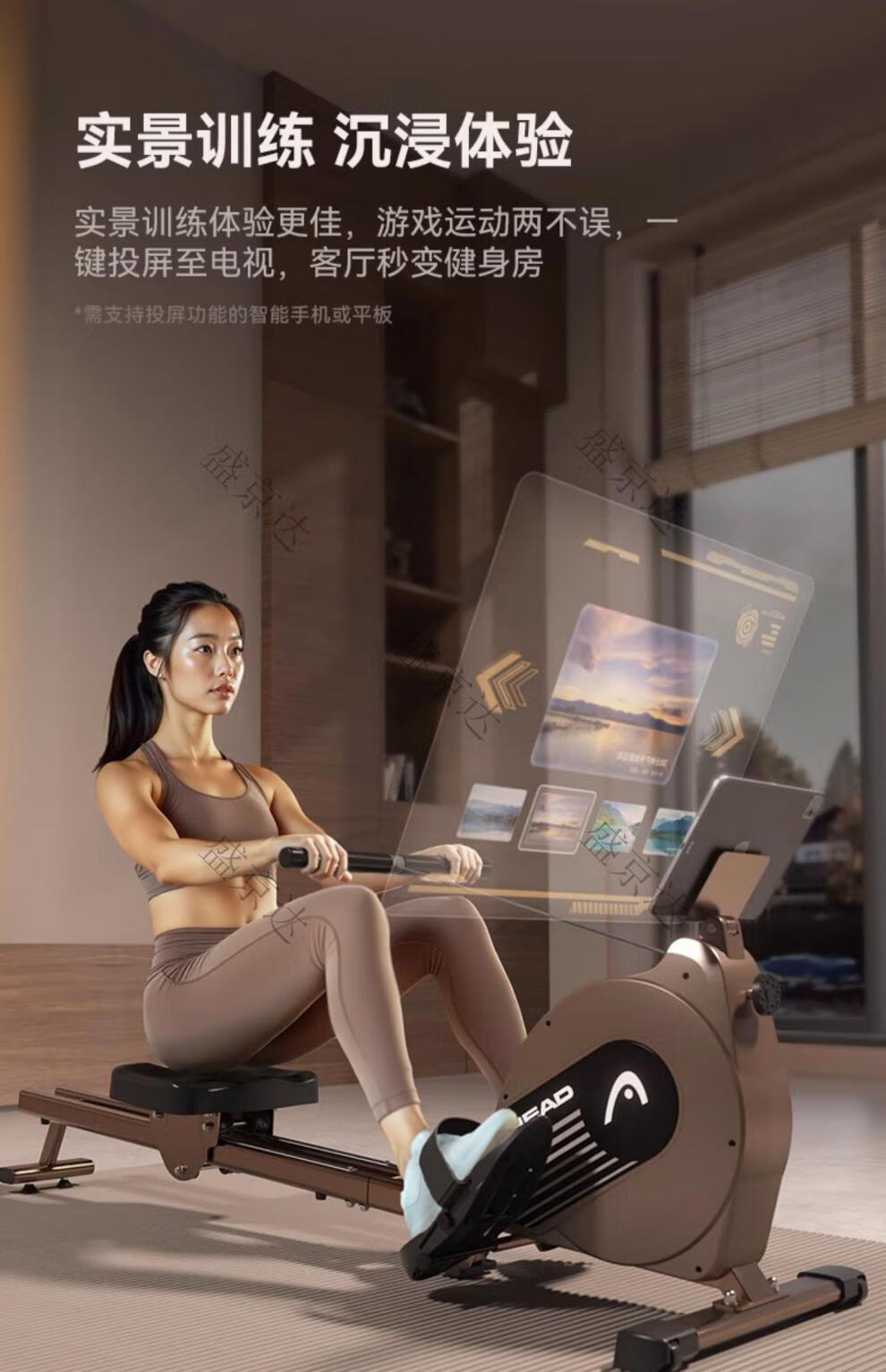 HEAD rowing machine household magnetic resistance silent super fat-burning fitness equipment comprehensive trainer small boat machine standard version 16-speed manual resistance adjustment course