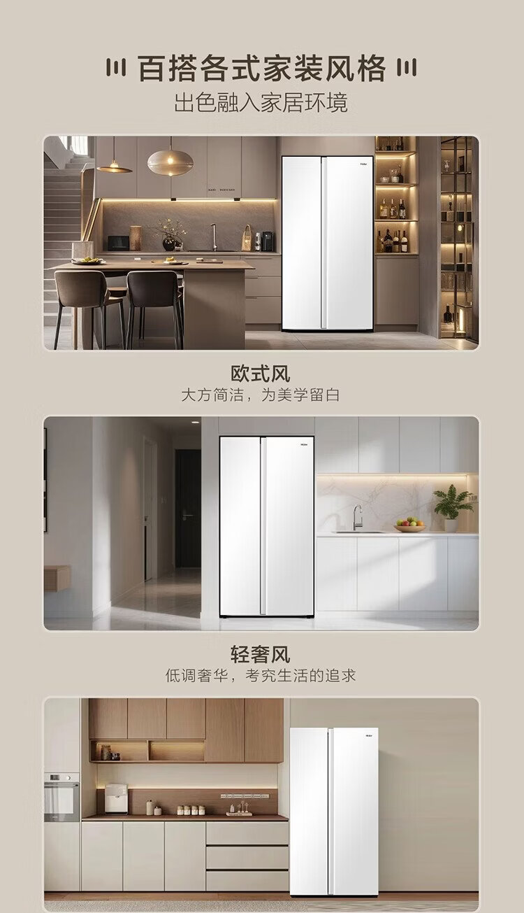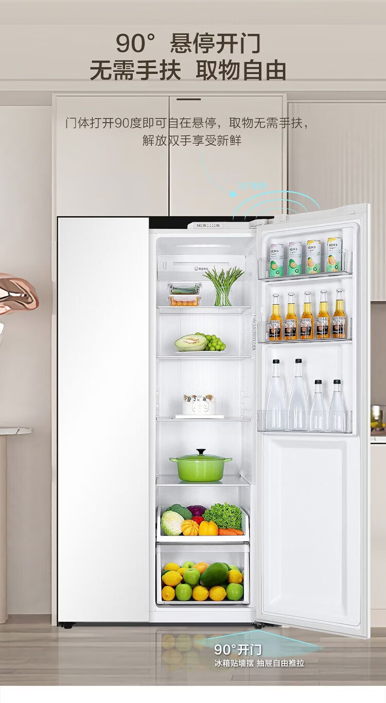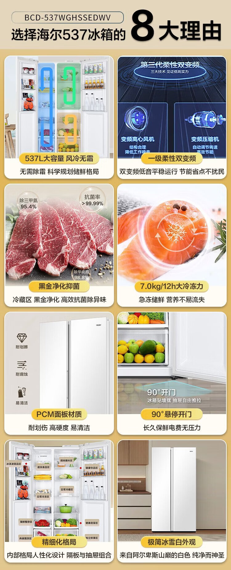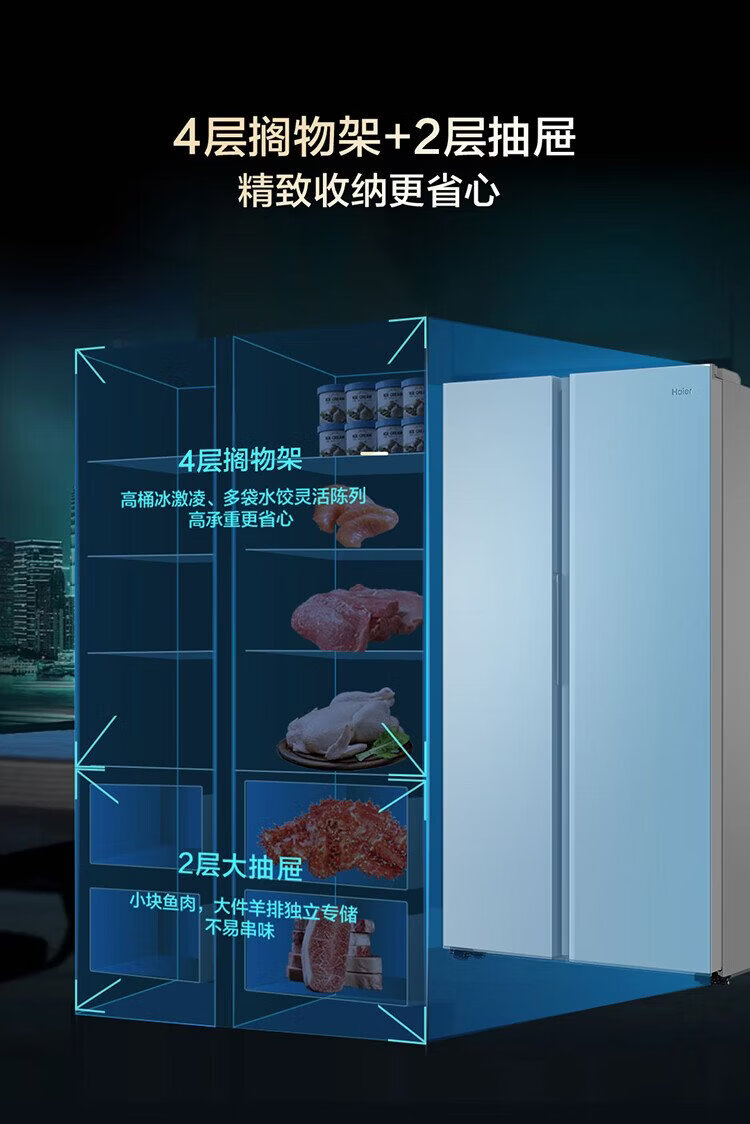 Haier refrigerator 537 liter side-by-side double door white first-class energy efficiency dual frequency conversion black gold purification and antibacterial air-cooled frost-free power-saving large-capacity household refrigerator 15% national subsidy 537L + first-class energy efficiency dual frequency + black gold purification and antibacterial