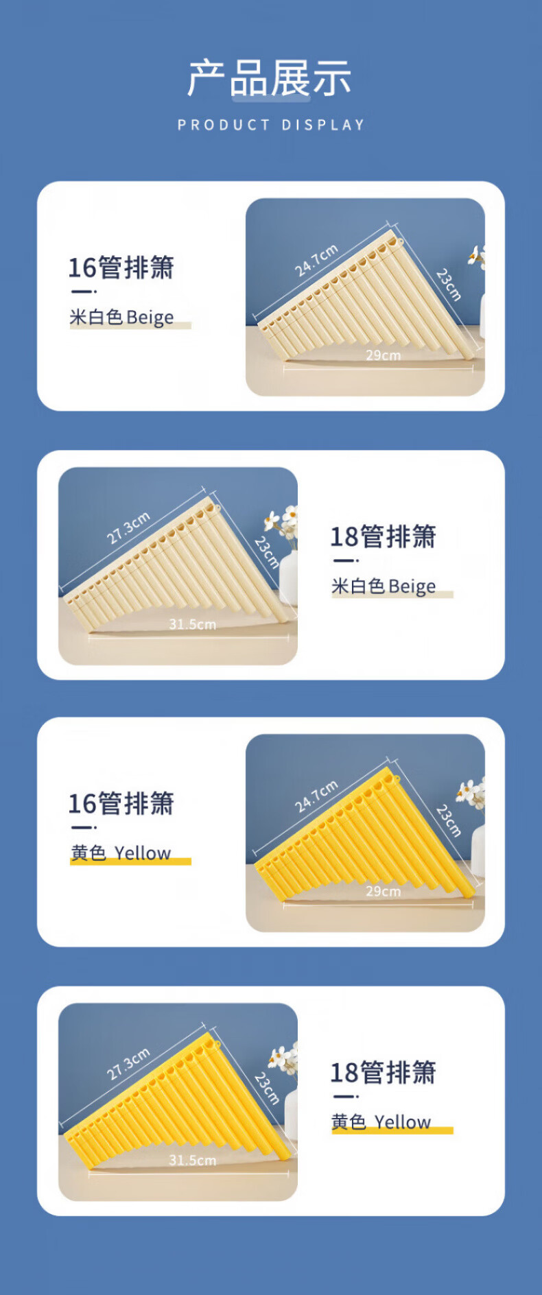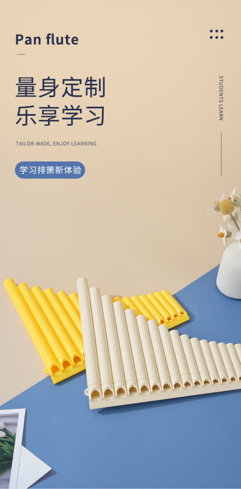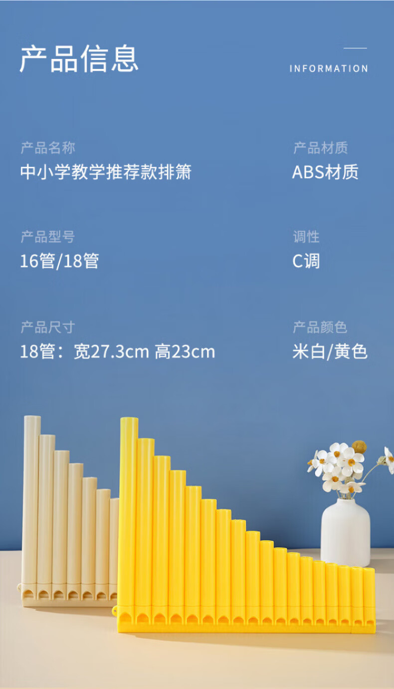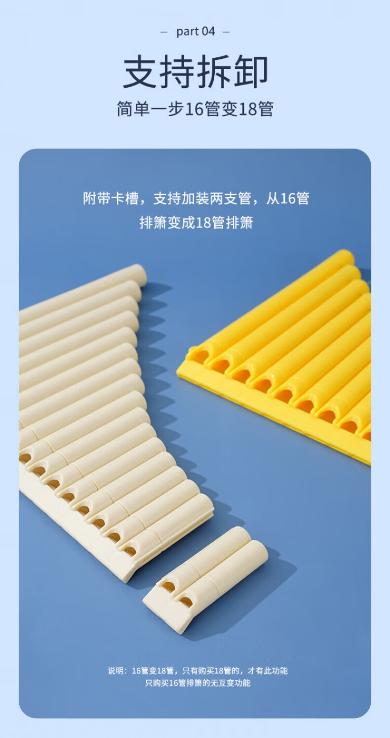 DEATKN German easy-to-learn pan flute 16-tube 18-tube pan flute for student teaching Beginner's introduction to C key pan flute instrument pass 16 tubes off-white + engraving + lifetime warranty