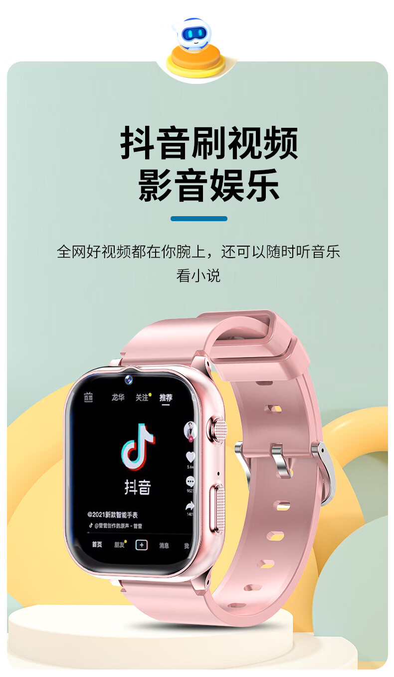 Little Genius Prodigy 2026 New Phone Children's Watch 5G Full Network Positioning Waterproof Long Battery Life Video Smart Student Watch Supreme Pink-WeChat-128G Memory-Free Download
