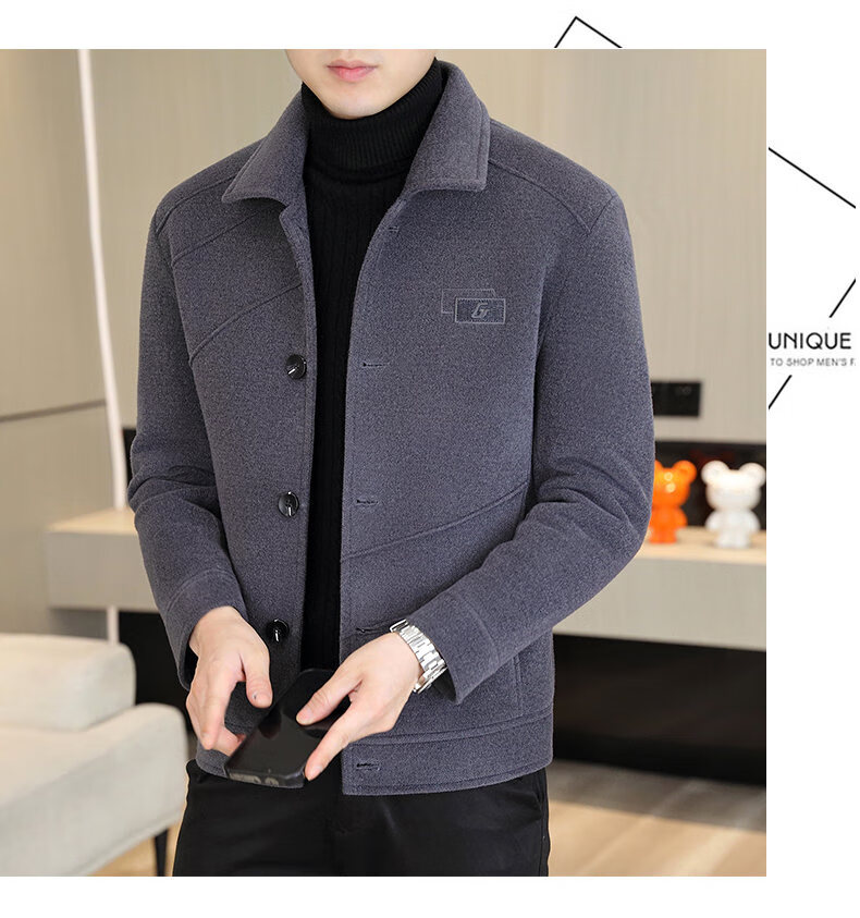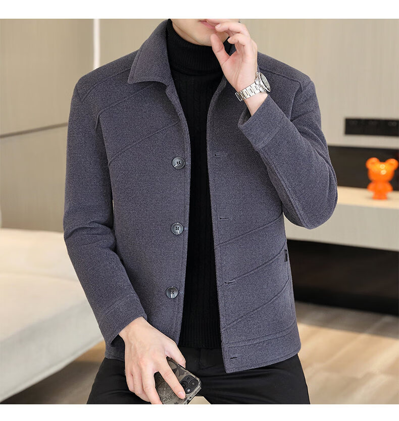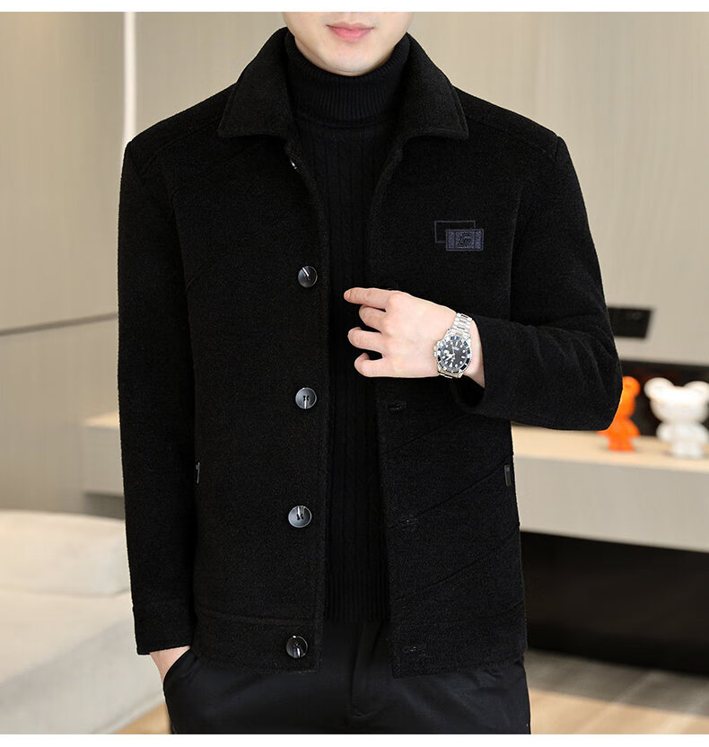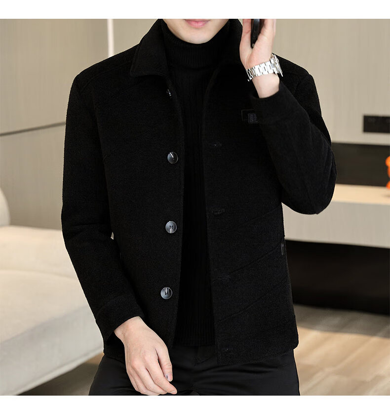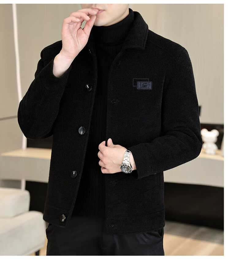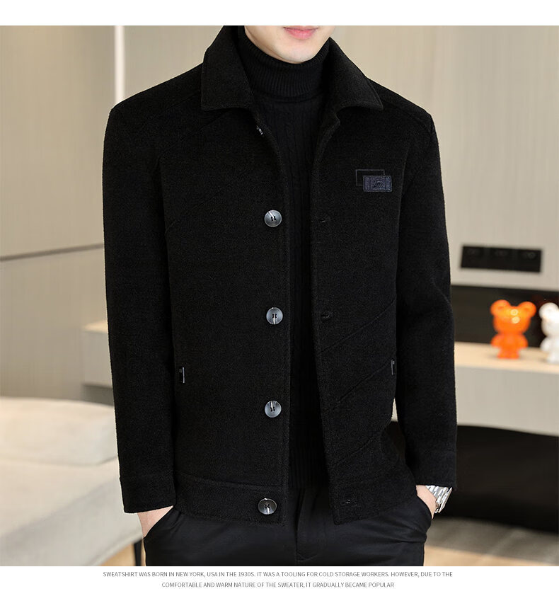 International Milan light luxury high-end men's woolen coat short 2025 autumn and winter new thickened jacket men's high-end woolen coat black (gift box) 3XL (150--165)