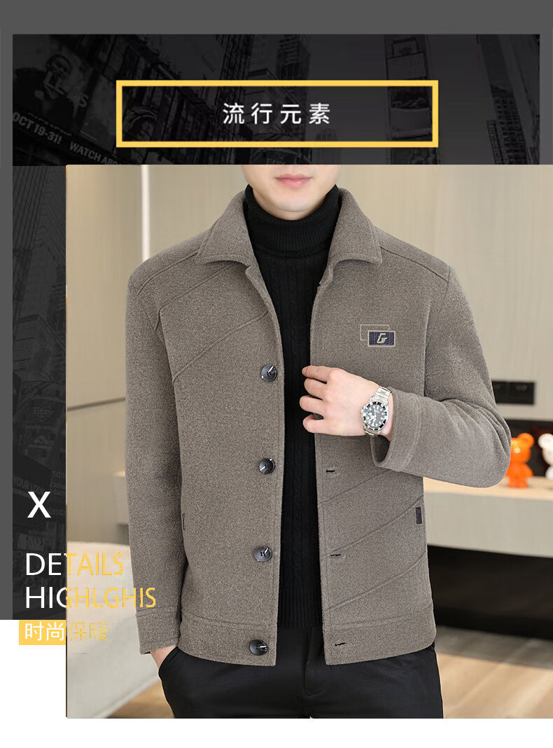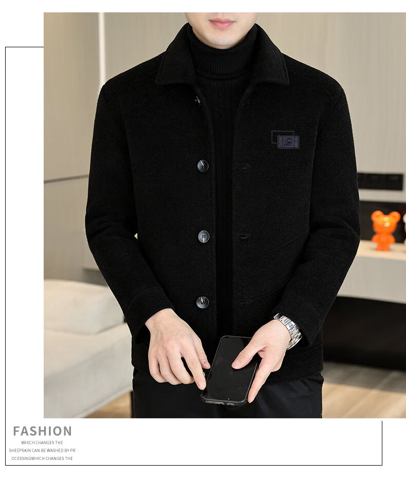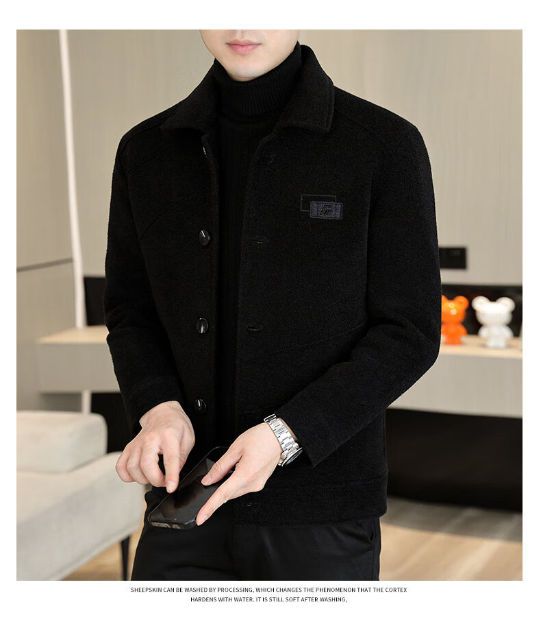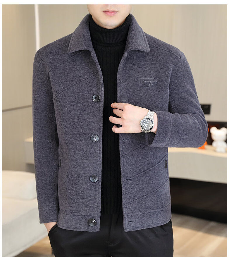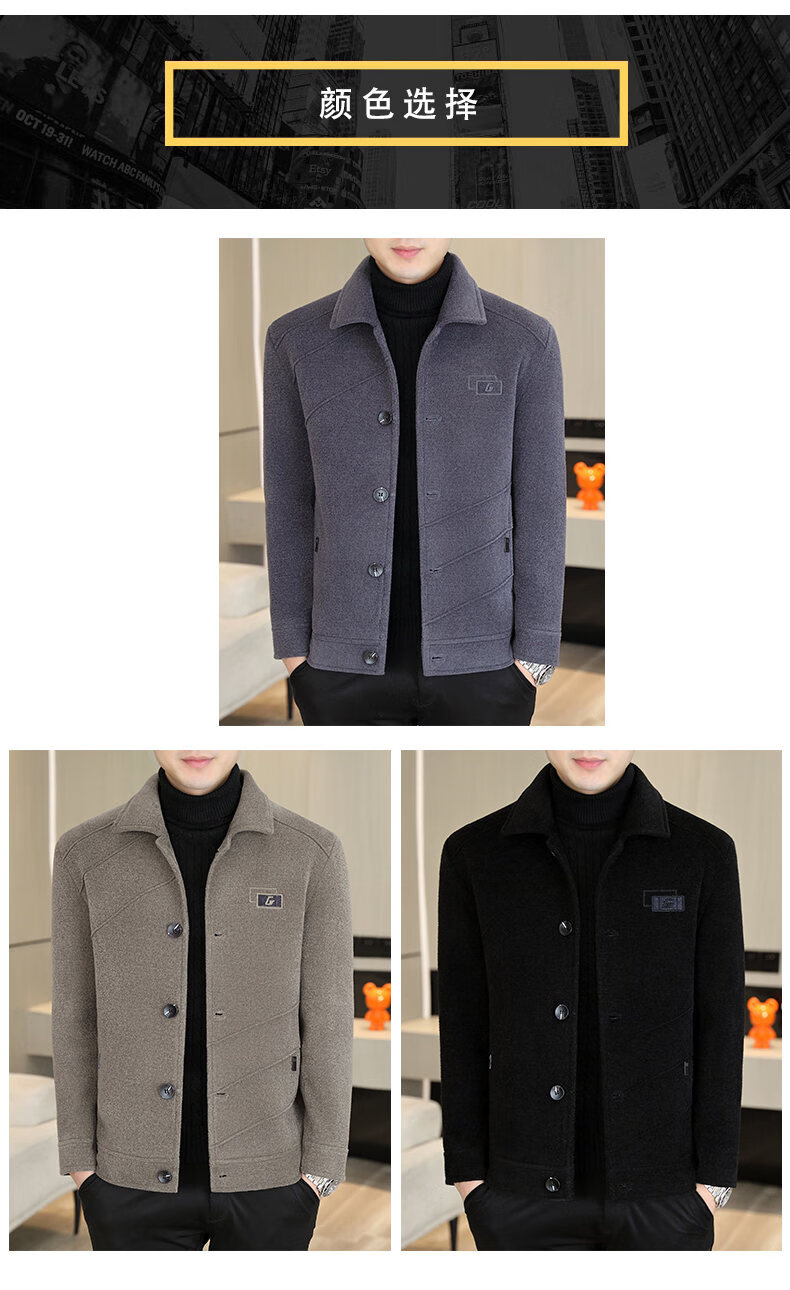 International Milan light luxury high-end men's woolen coat short 2025 autumn and winter new thickened jacket men's high-end woolen coat black (gift box) 3XL (150--165)
