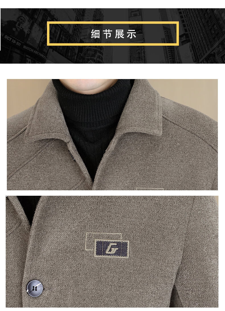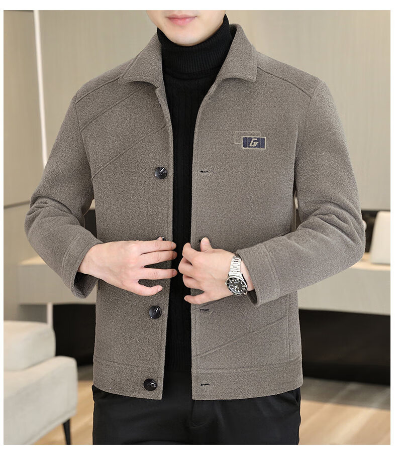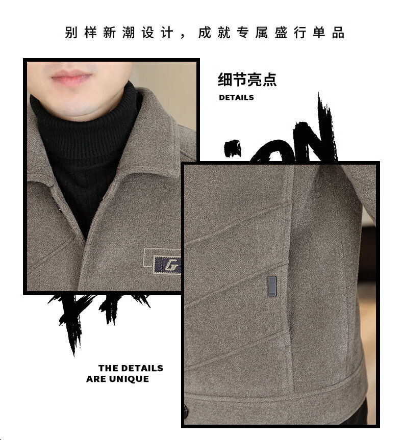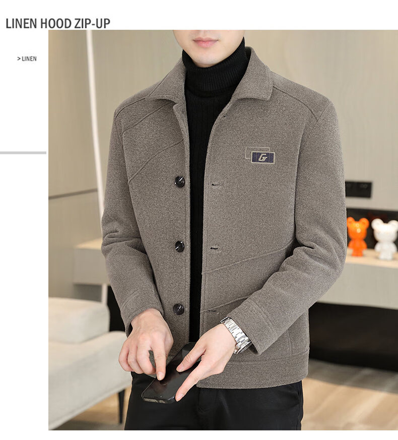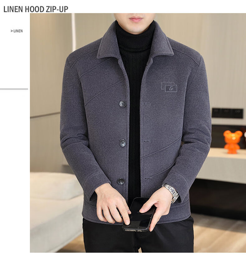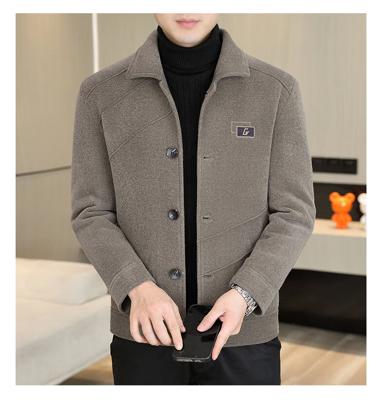 International Milan light luxury high-end men's woolen coat short 2025 autumn and winter new thickened jacket men's high-end woolen coat black (gift box) 3XL (150--165)
