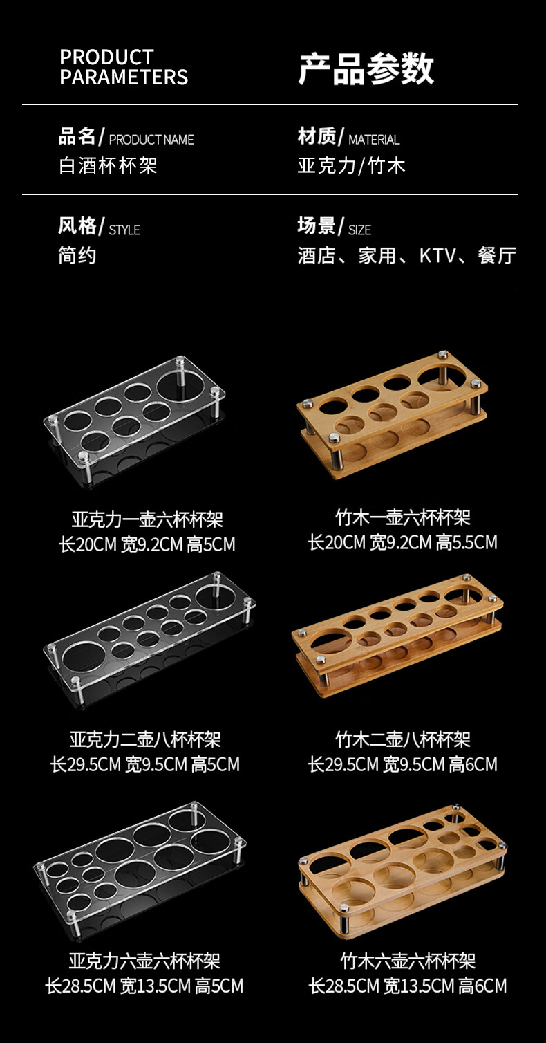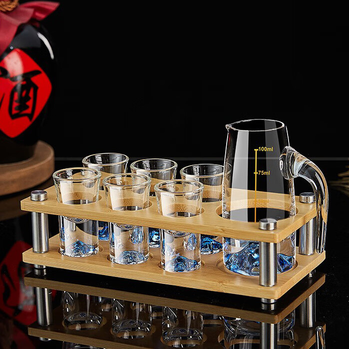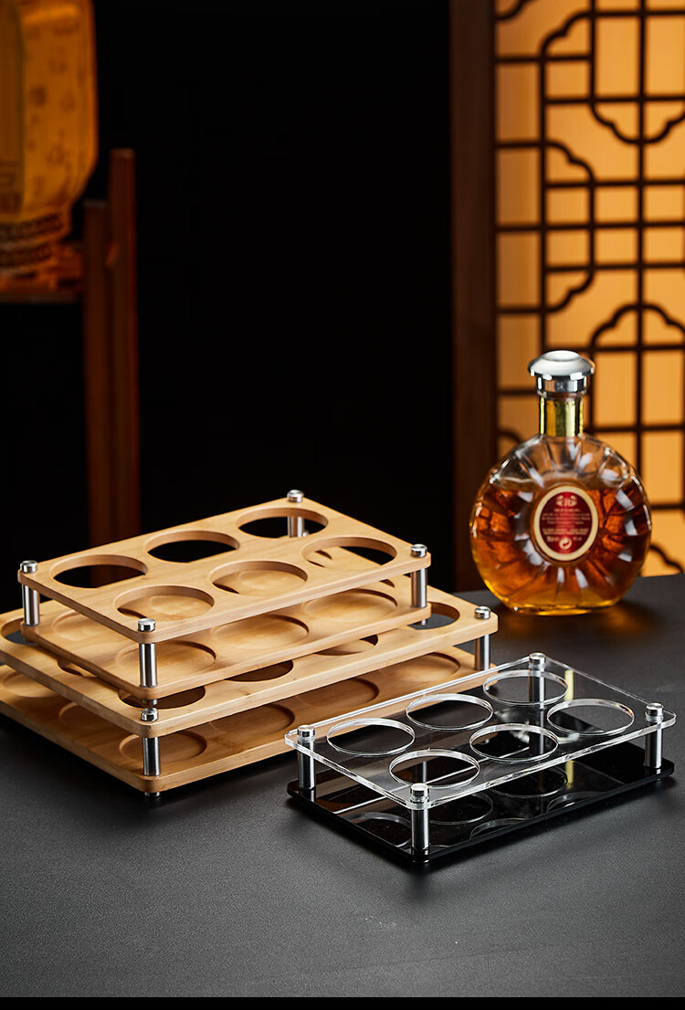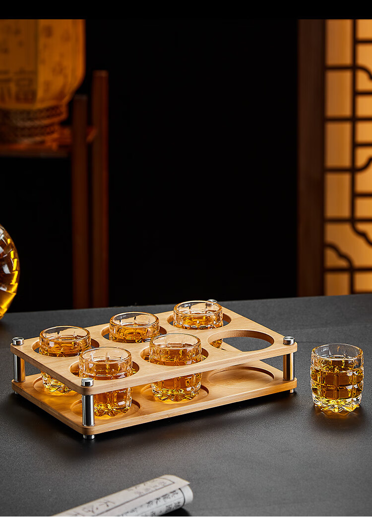 He Jian Gong Bamboo Wood Wine Rack Liquor Two Liang 2024 New Wine Glass Rack 15ml Cup and 150ml Wine Divider Storage Box 2 Pots 8 Cups Acrylic