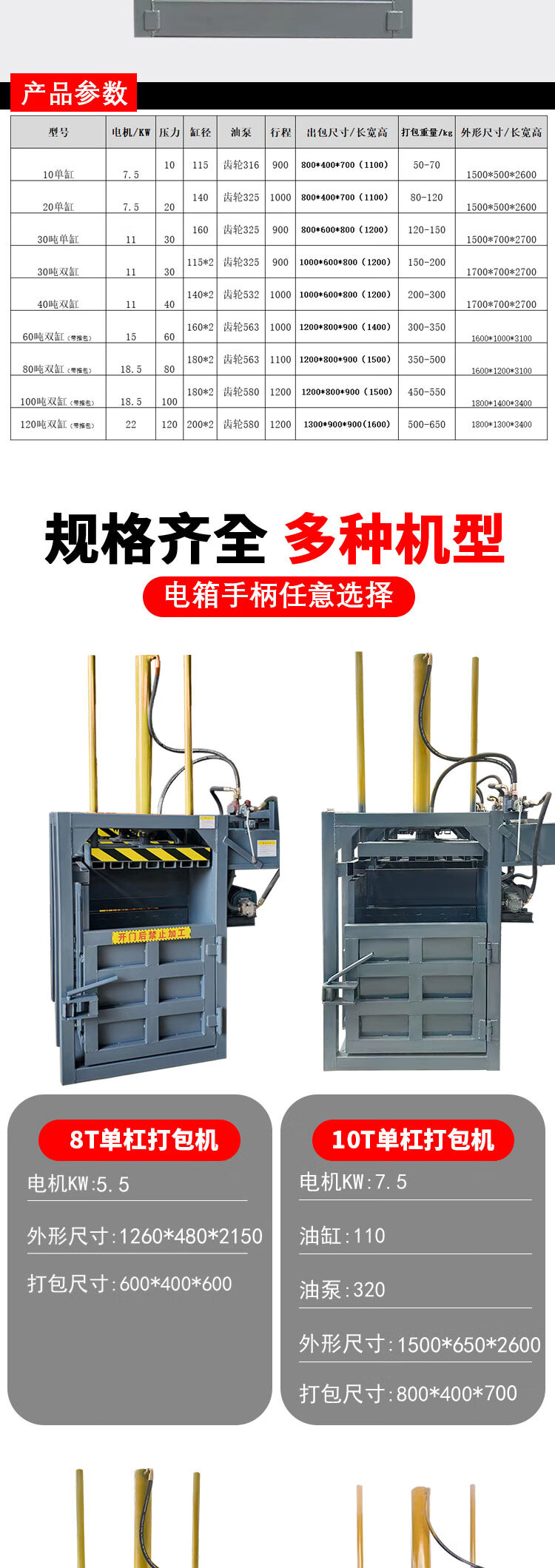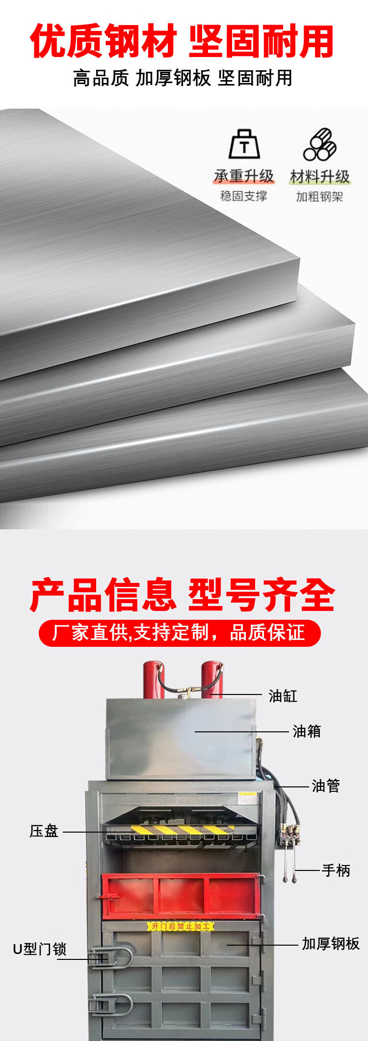 Vertical hydraulic baler Semi-automatic small plastic bottle waste carton compressor Paint bucket can briquetting machine 8-ton single-cylinder vertical hydraulic baler Upgraded clothing woven bag film sponge compression baler