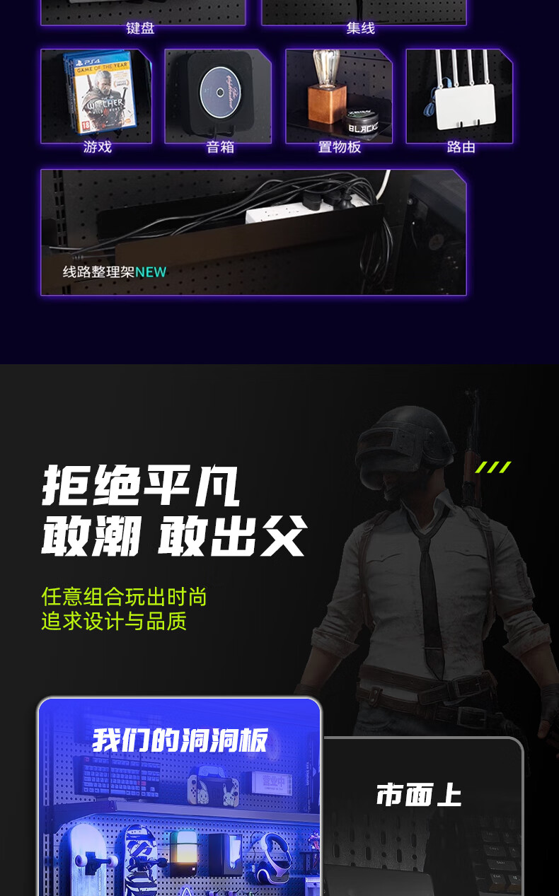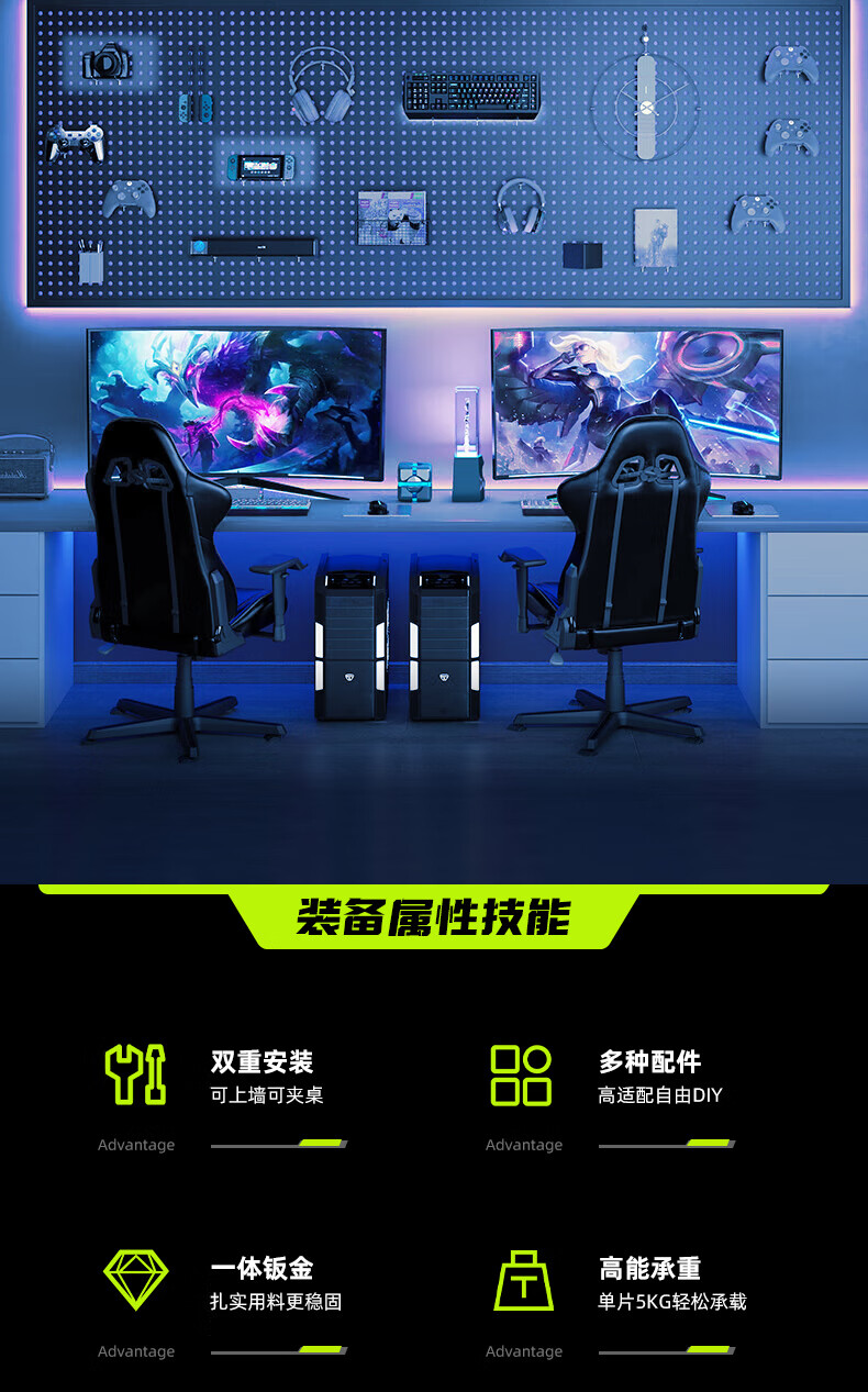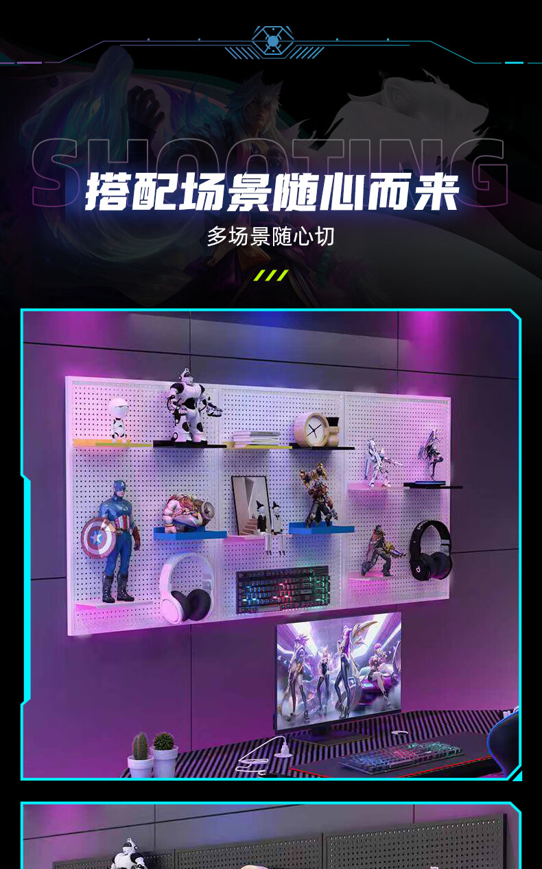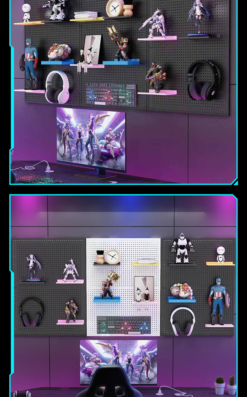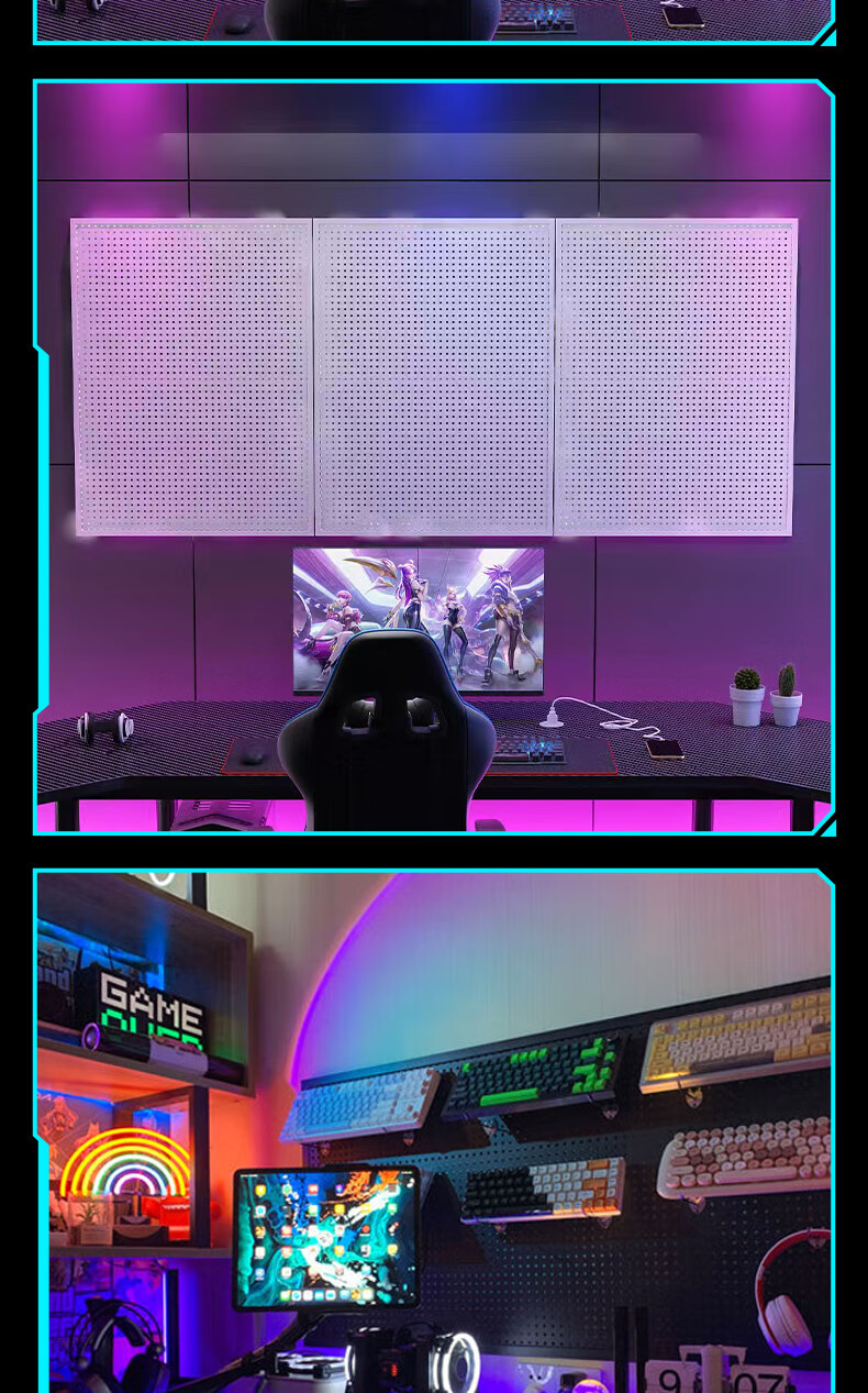 Musong hole board gaming room partition shelf study room computer desk gaming wall punch-free hanging board wall custom metal light strip Bluetooth colorful-5 meters long default