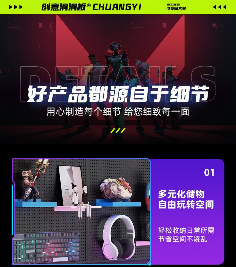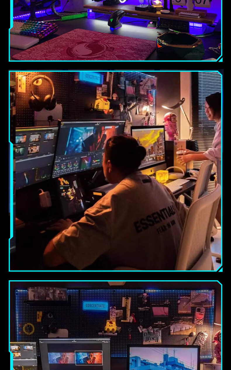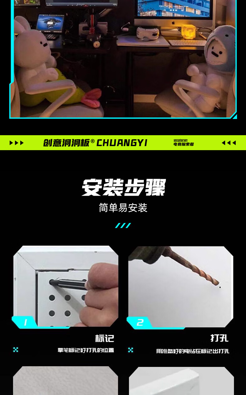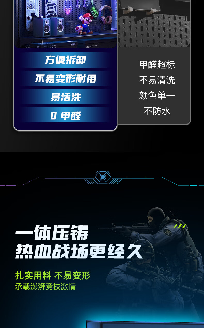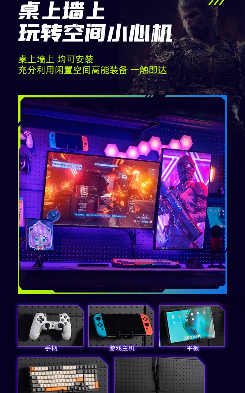 Musong hole board gaming room partition shelf study room computer desk gaming wall punch-free hanging board wall custom metal light strip Bluetooth colorful-5 meters long default