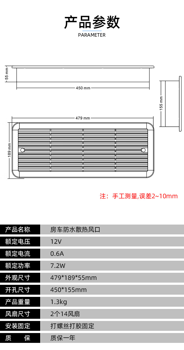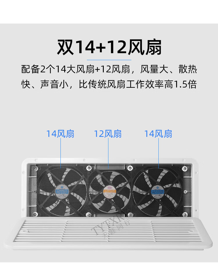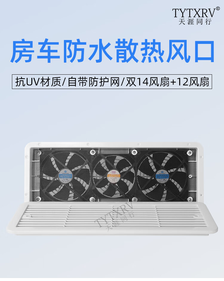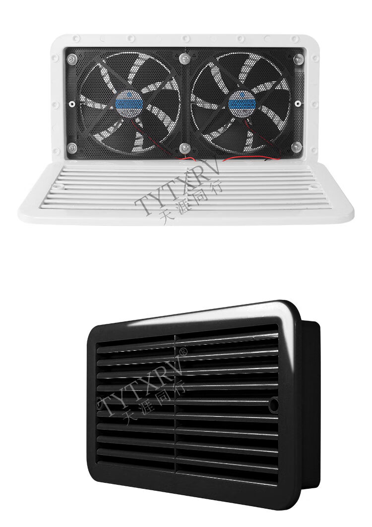 Ruchi RV trailer trailer modification accessories side-mounted air outlet refrigerator cooling waterproof vent side exhaust fan ventilation fan 12V double fan black 0101124