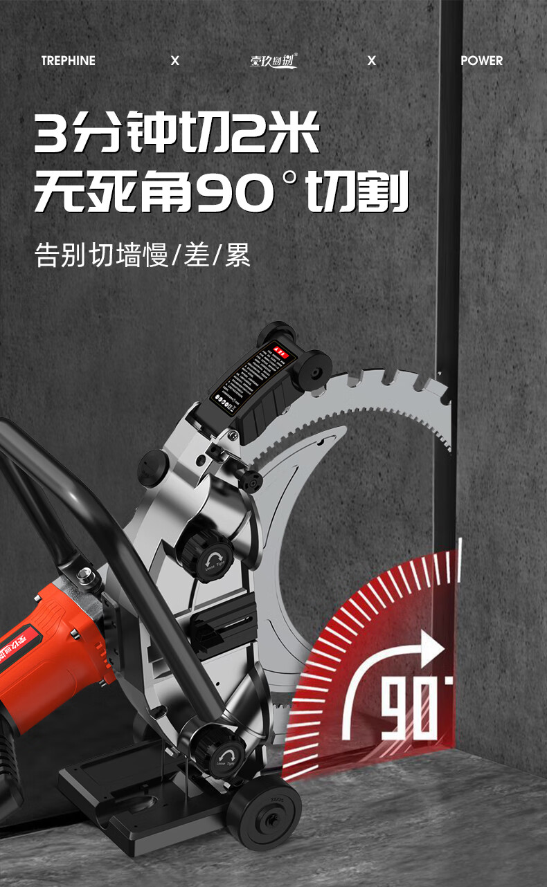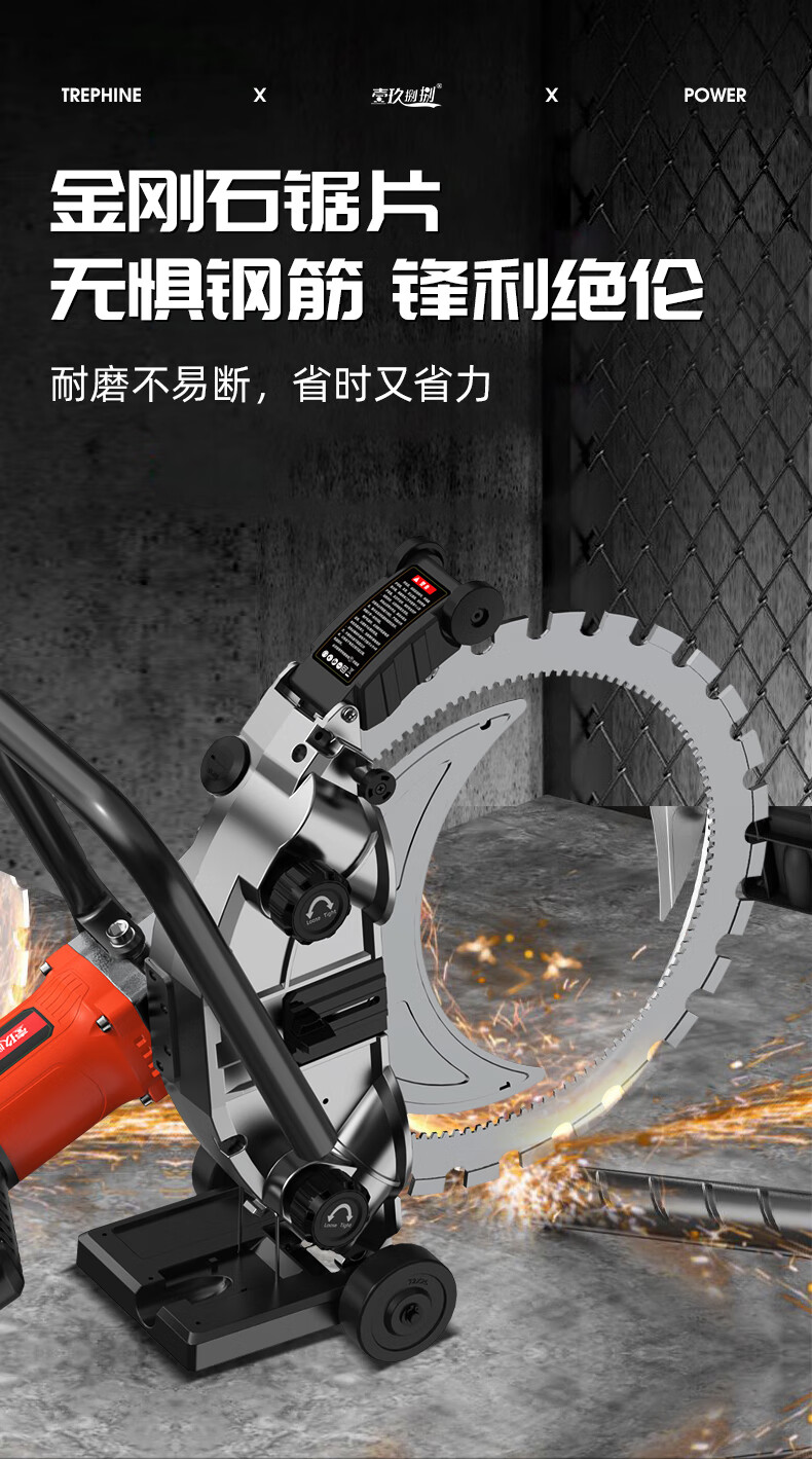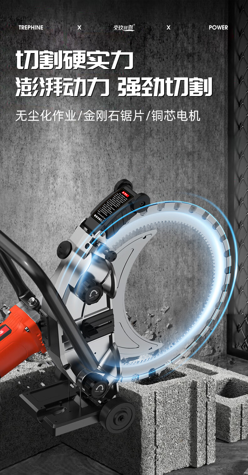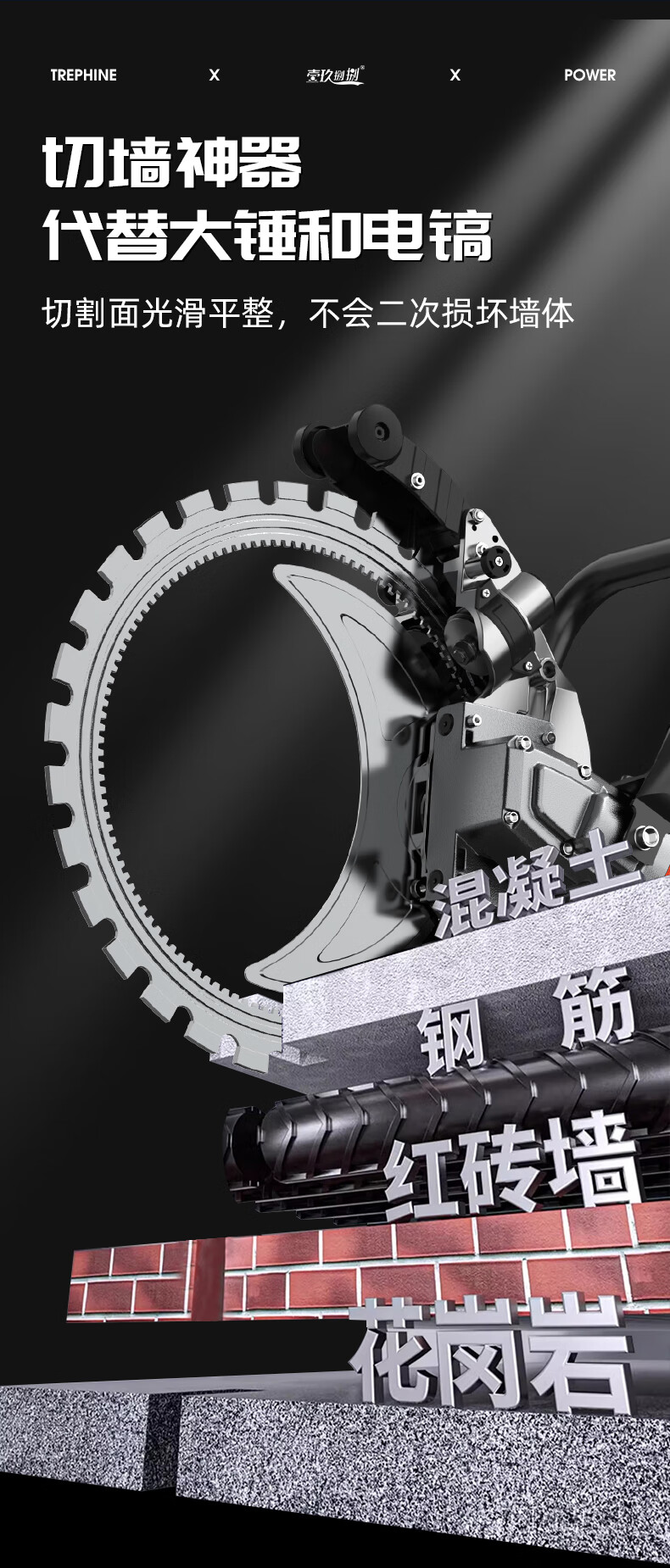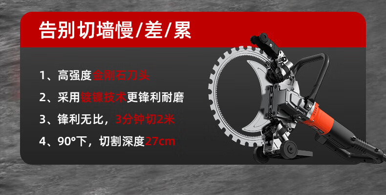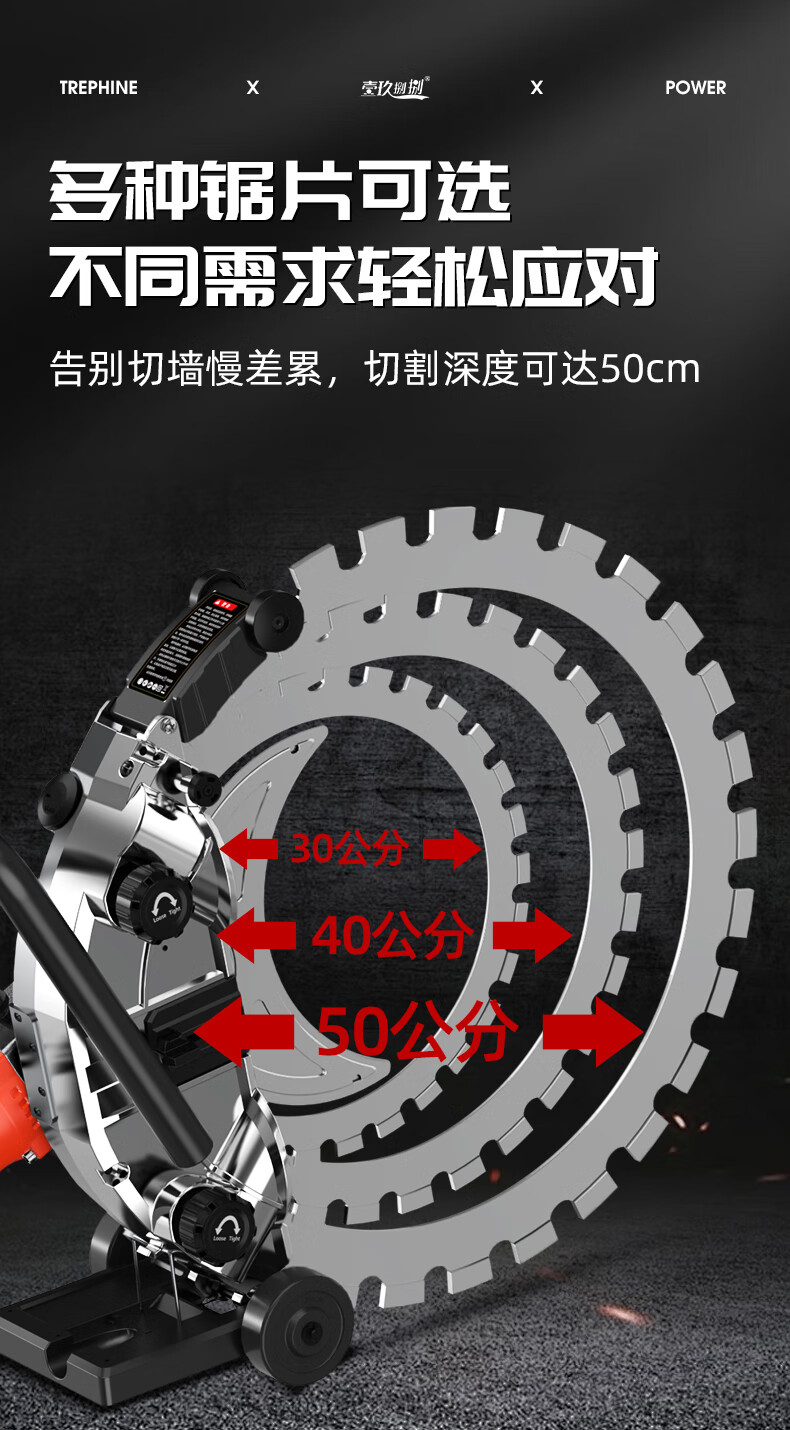 1988 Brushless High-frequency Ring Saw Handheld High-Power Concrete Wall Cutting Machine Multi-functional Red Brick Wall Opening Door Cutting Machine 9580W Adjustment-free Type 300 High-frequency Ring Saw*2 (Cutting Depth 30cm)