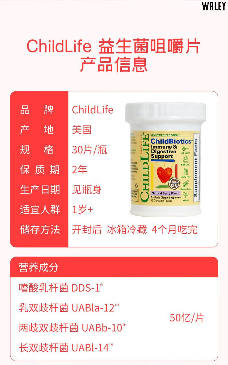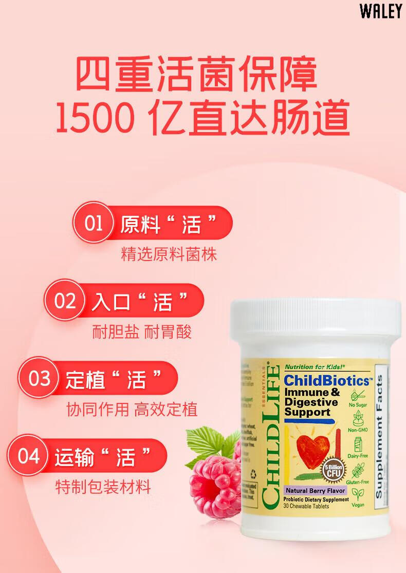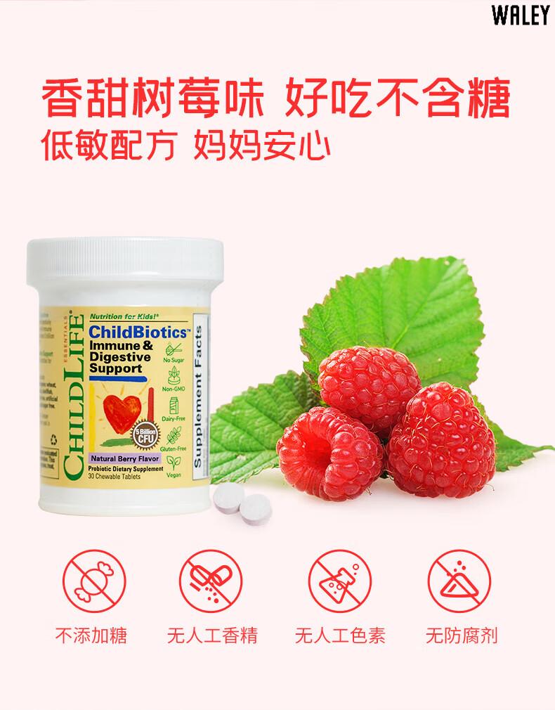 Childhood Time Limited Time Flash Sale Childhood Time Probiotic Chewable Tablets 0 Antiseptic Children's Probiotics Infant Raspberry Flavor Regulates the stomach and aids digestion 30 tablets/bottle valid for 26 years and March