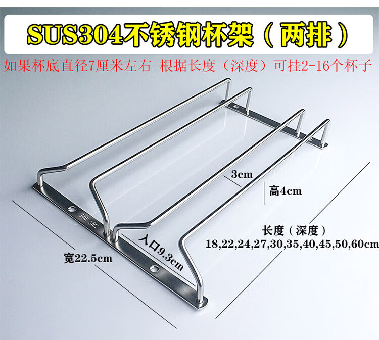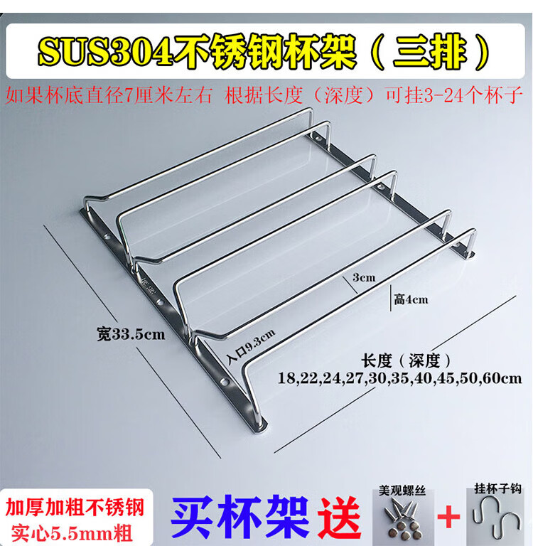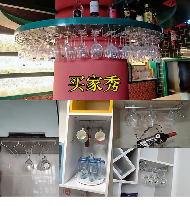 He Jiagong bold 304 stainless steel red wine glass rack upside down household goblets hanging rack red wine glass storage rack 18cm row 304 stainless steel