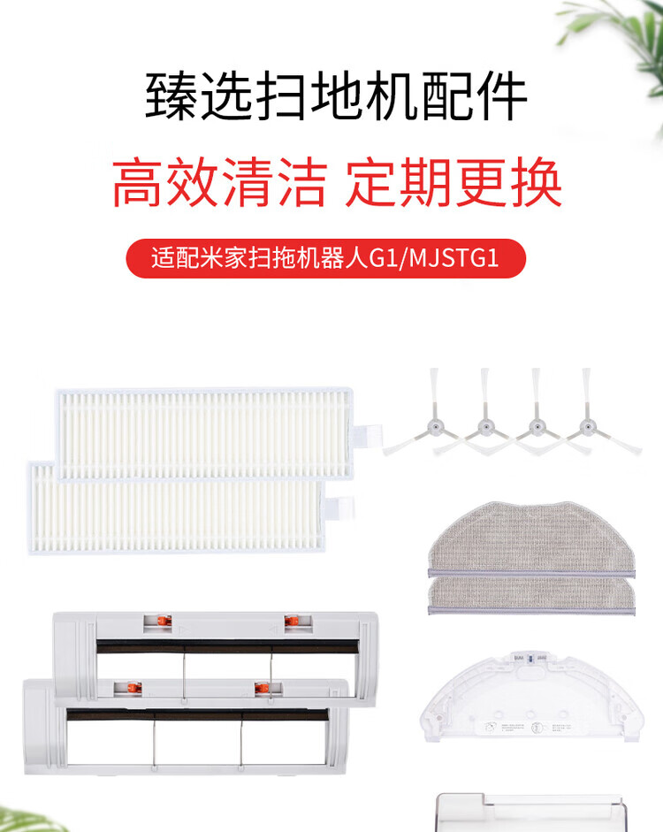 Suitable for Xiaomi Mijia sweeping robot G1 accessories MJSTG1 main brush cover side brush filter mop holder water tank white side brush 1 pair