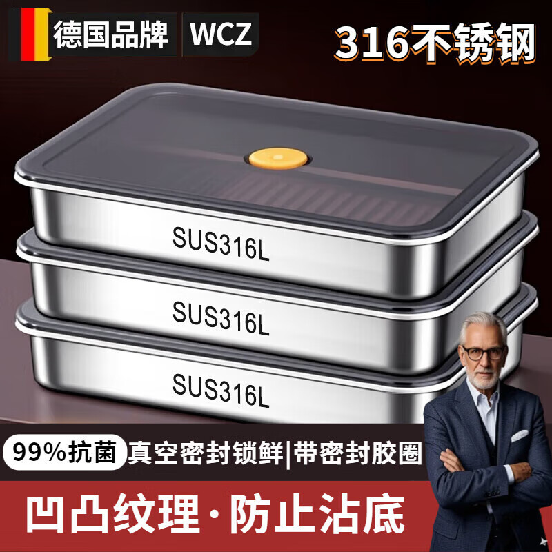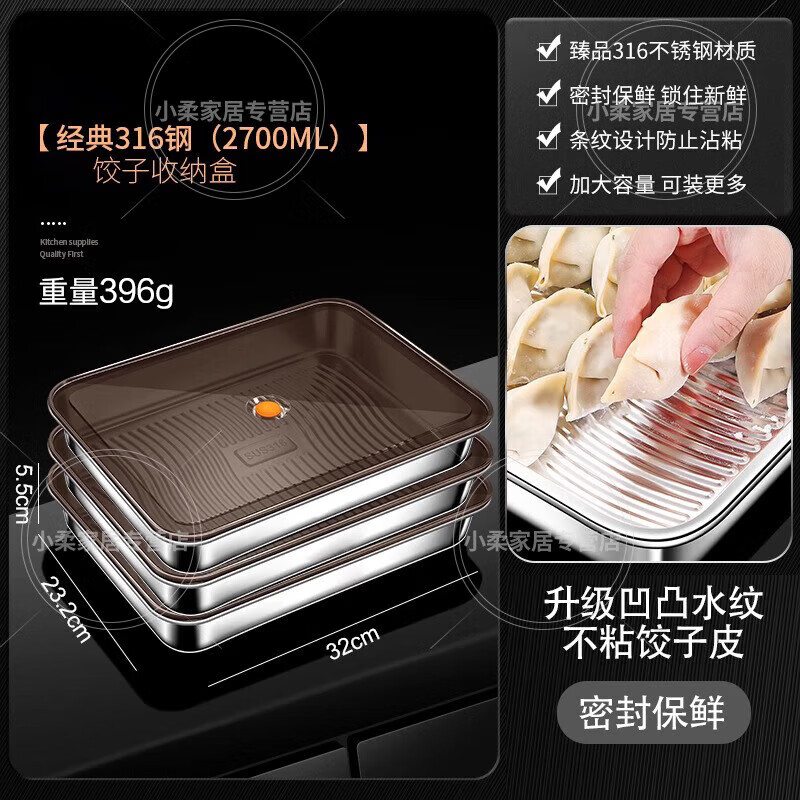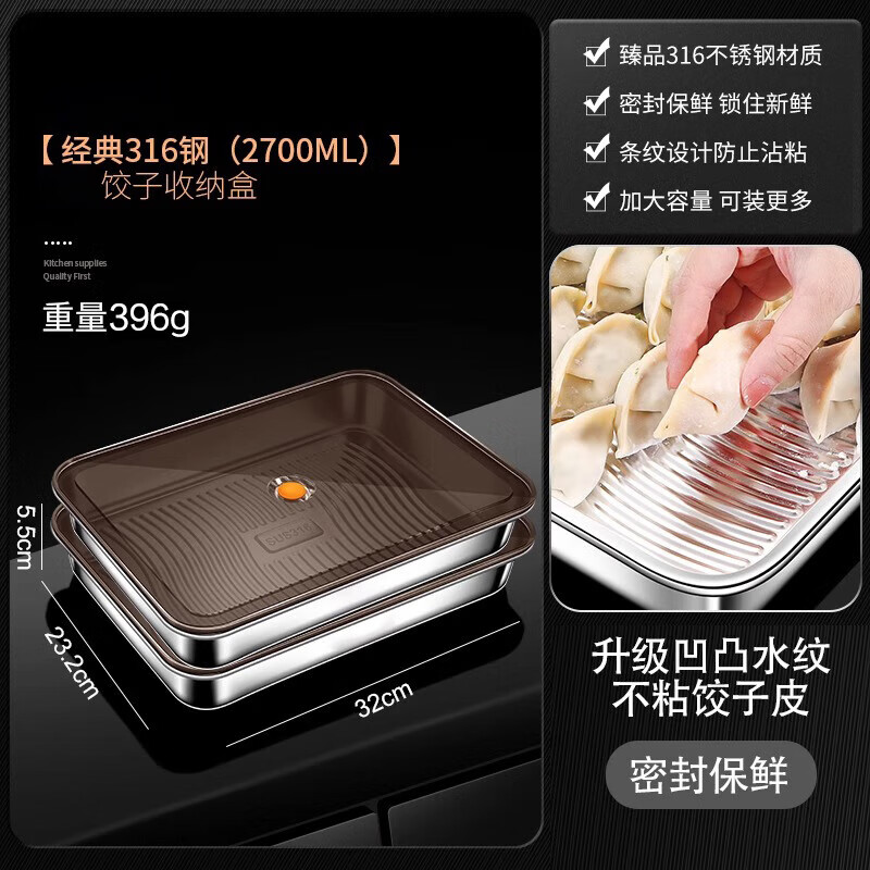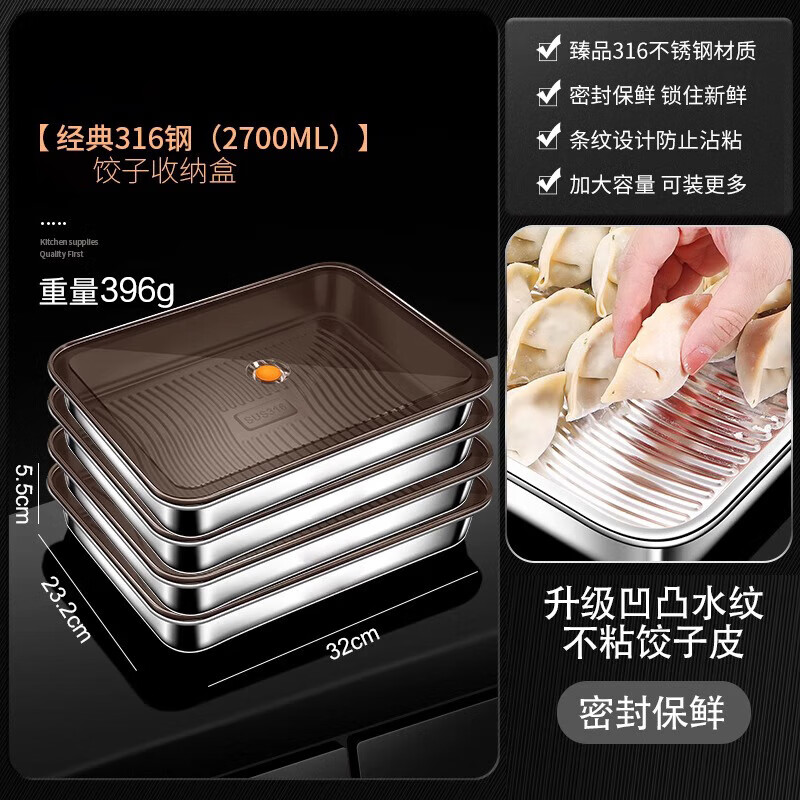 He Jiangong German brand food 316 stainless steel crisper box with lid dumpling wonton square box storage refrigerator quick-frozen seal (light style) + sealing lid 3 layers