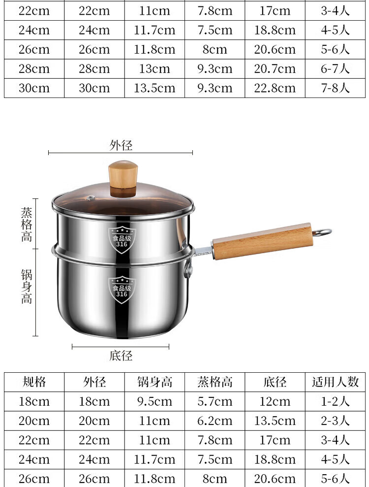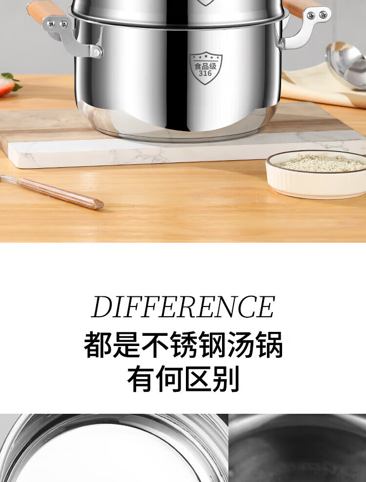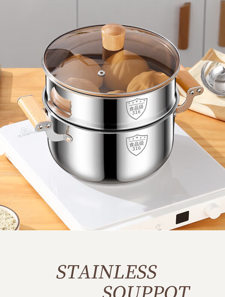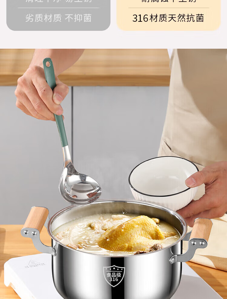 Solista Joyoung 316 stainless steel soup pot thickened household steamer porridge pot stew pot double-ear gas stove electric 316 steel compound bottom soup pot + beech wood handle 18cm