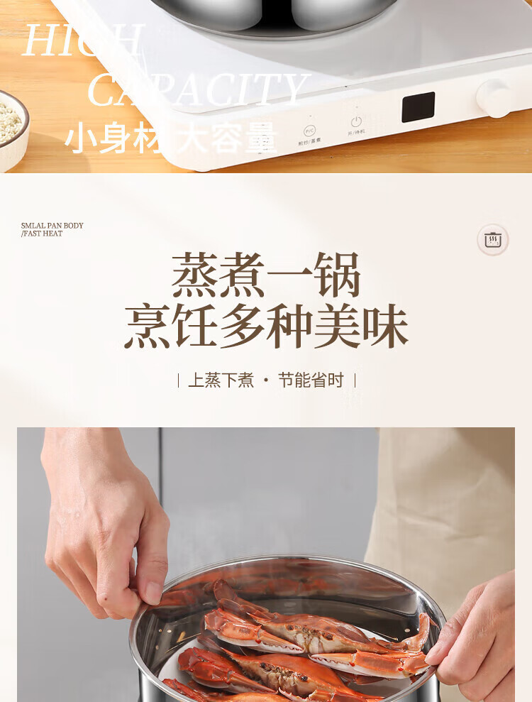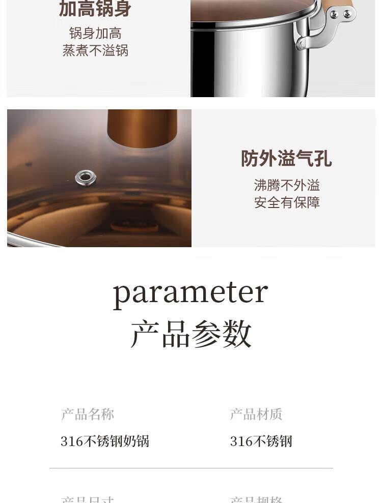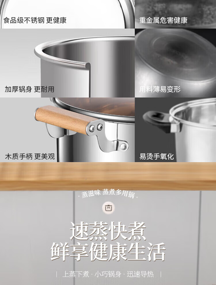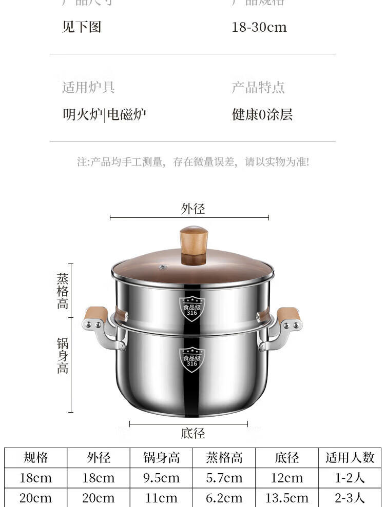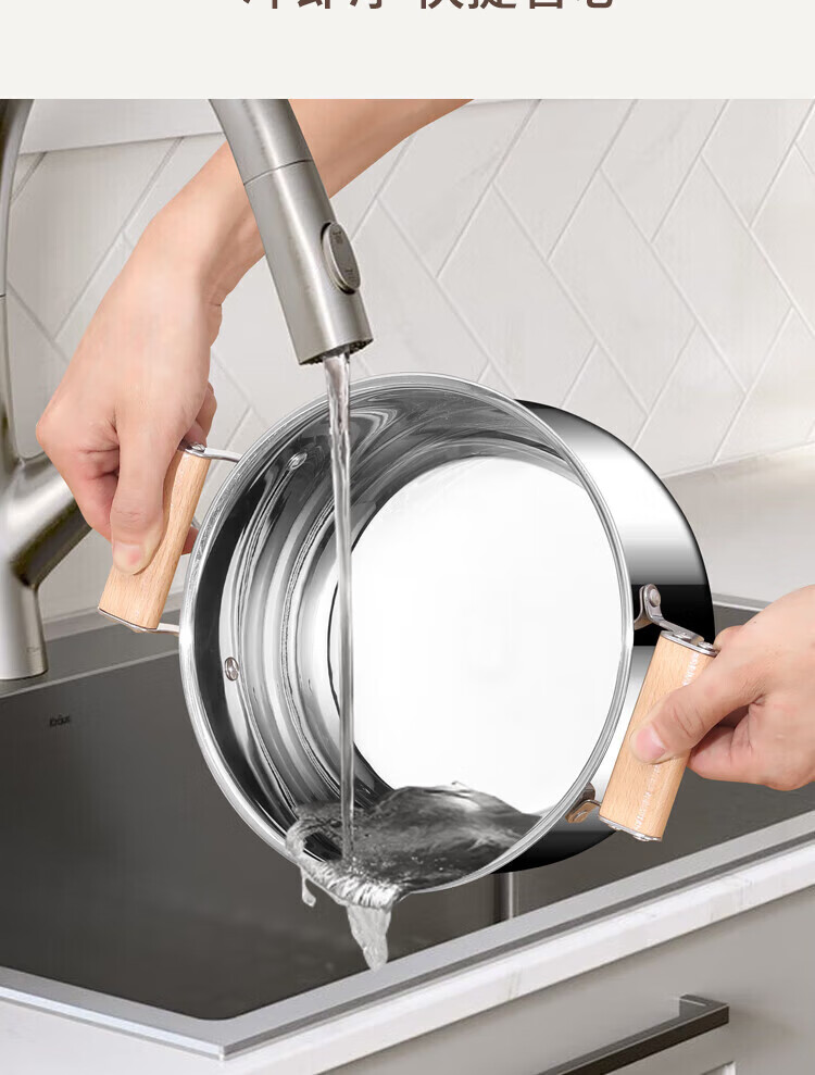 Solista Joyoung 316 stainless steel soup pot thickened household steamer porridge pot stew pot double-ear gas stove electric 316 steel compound bottom soup pot + beech wood handle 18cm