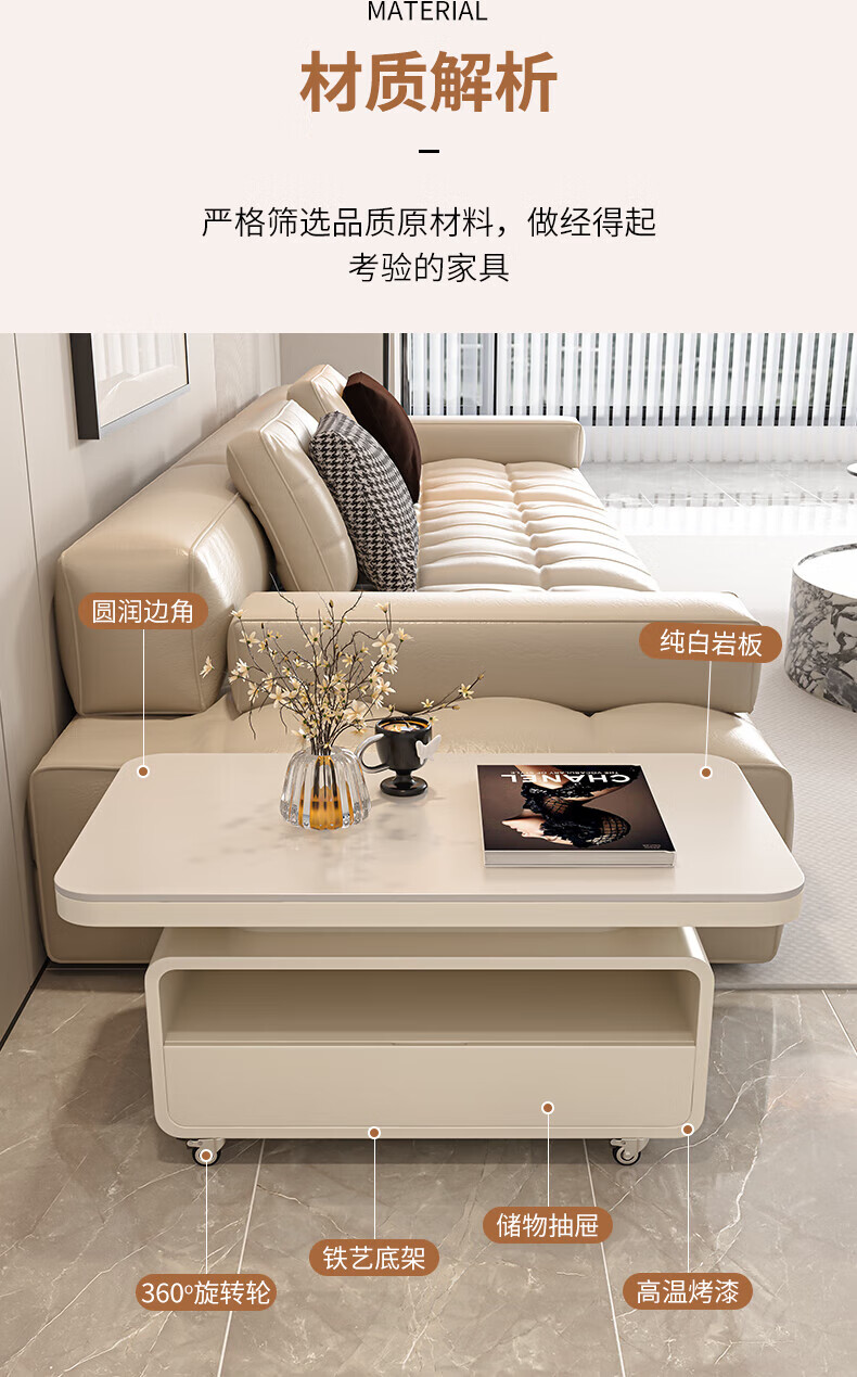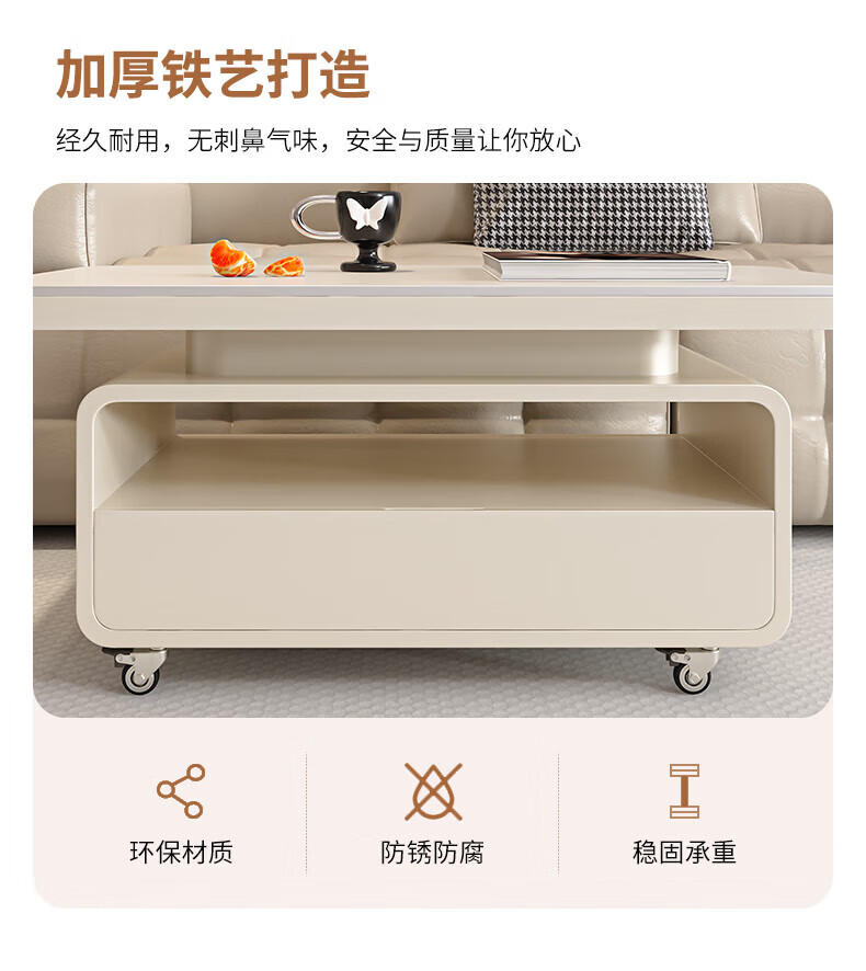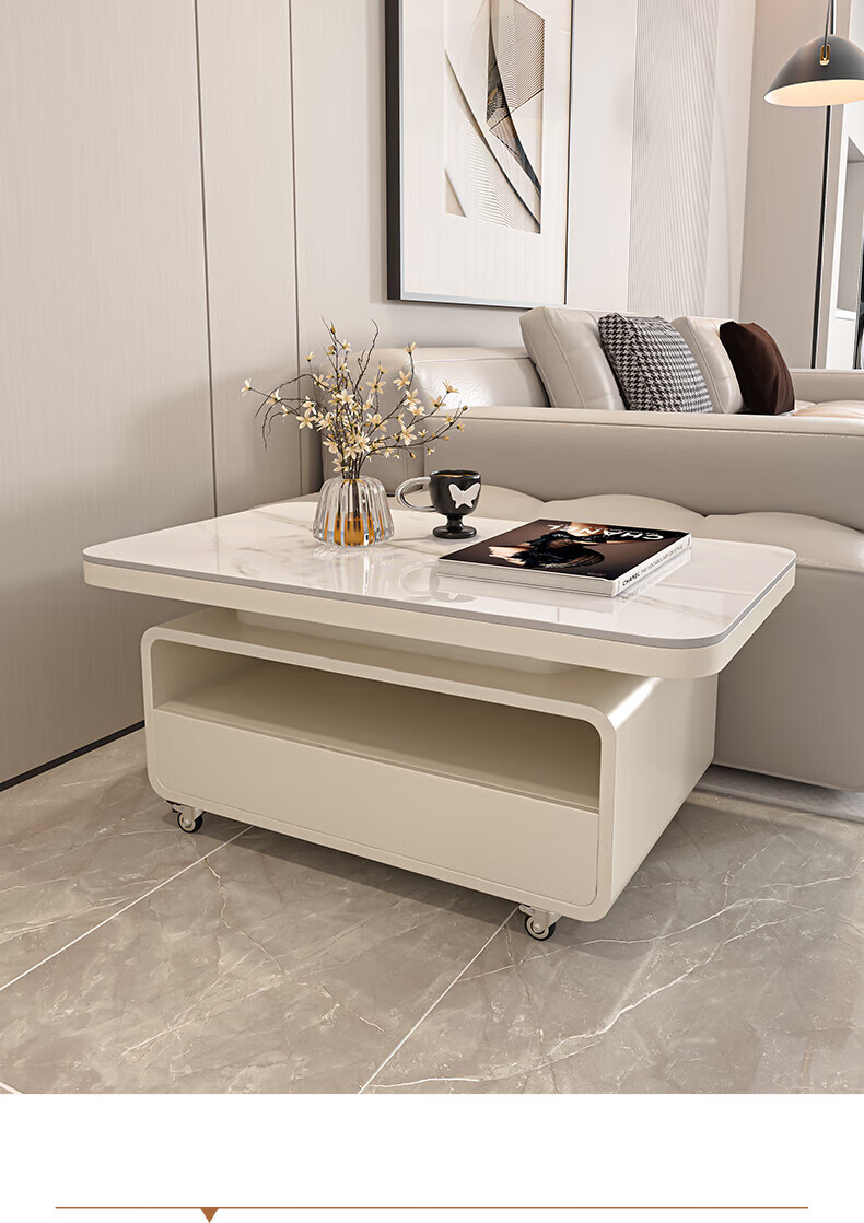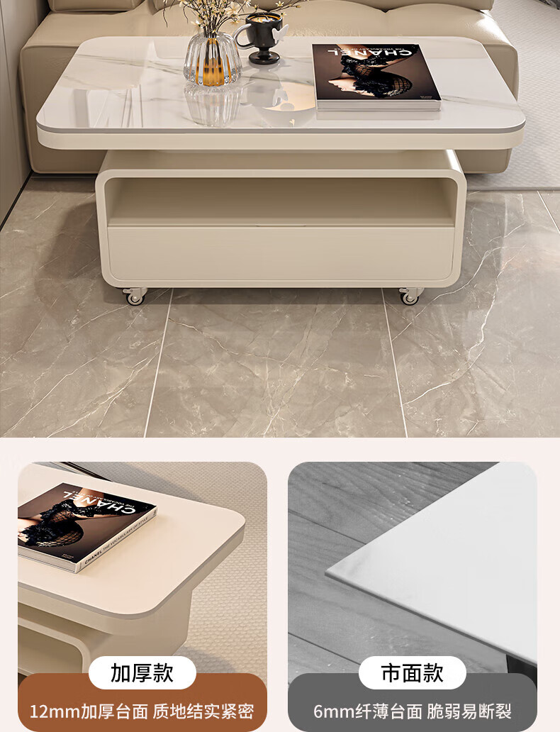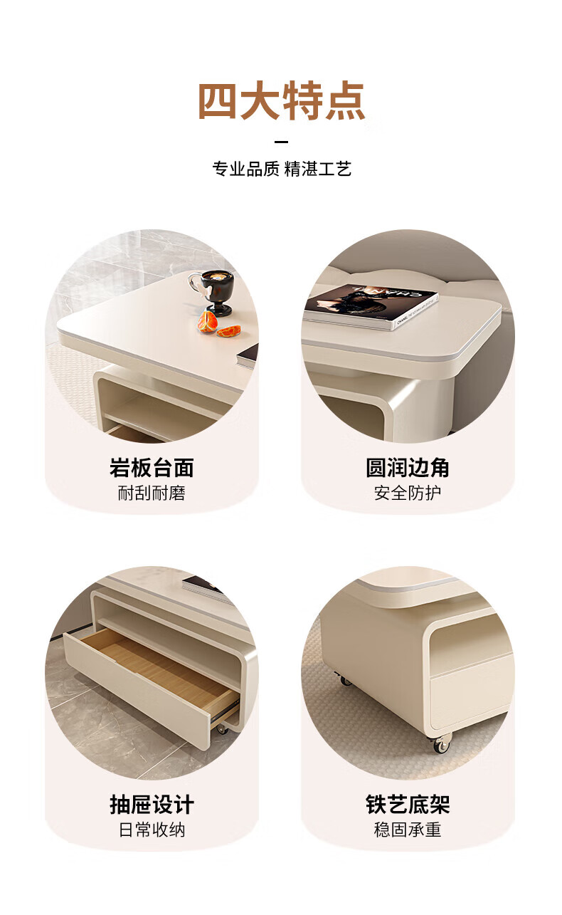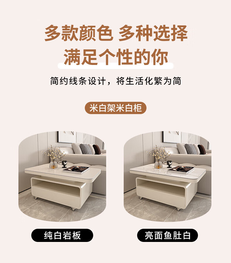 Puhuan mobile side table with wheels, new model for living room and coffee shop, small-sized tea table with stone slab, simple, light, luxurious and high-end side table, black frame, black cabinet + snow mountain white, 80 long, 45 wide, 47 high