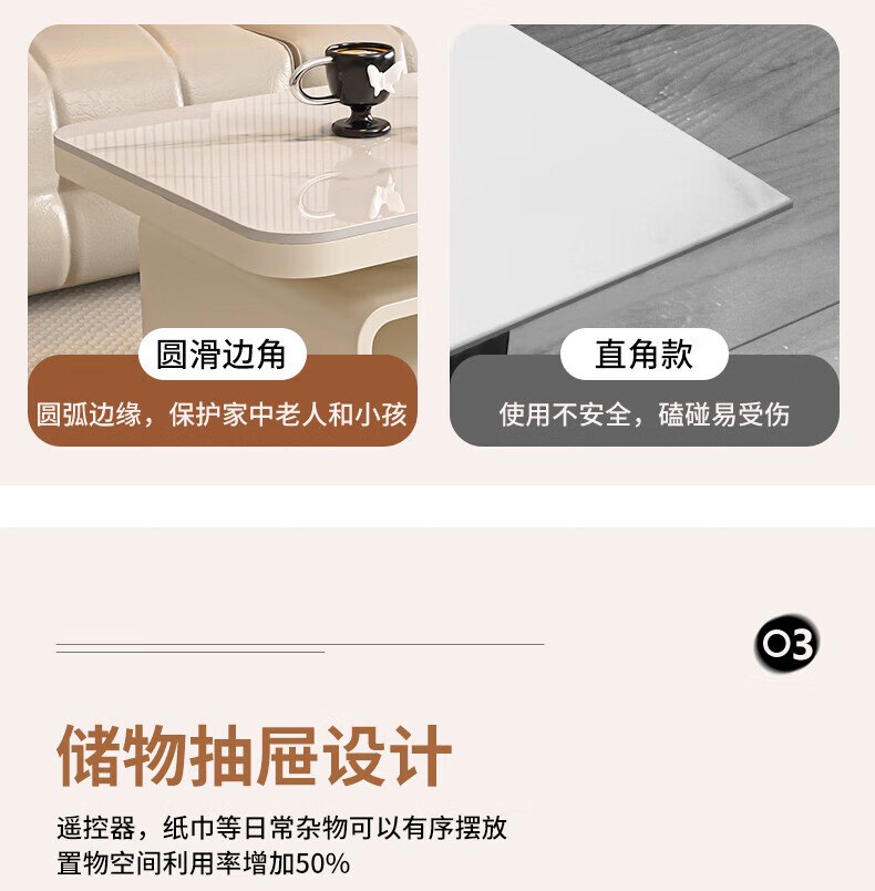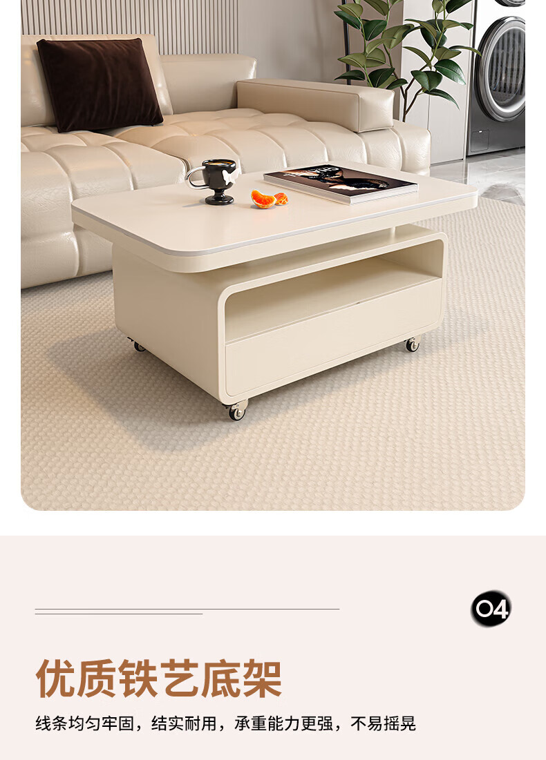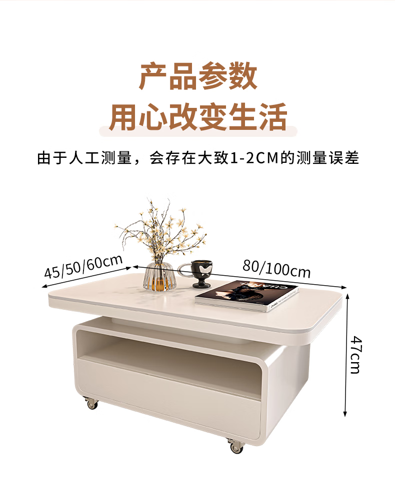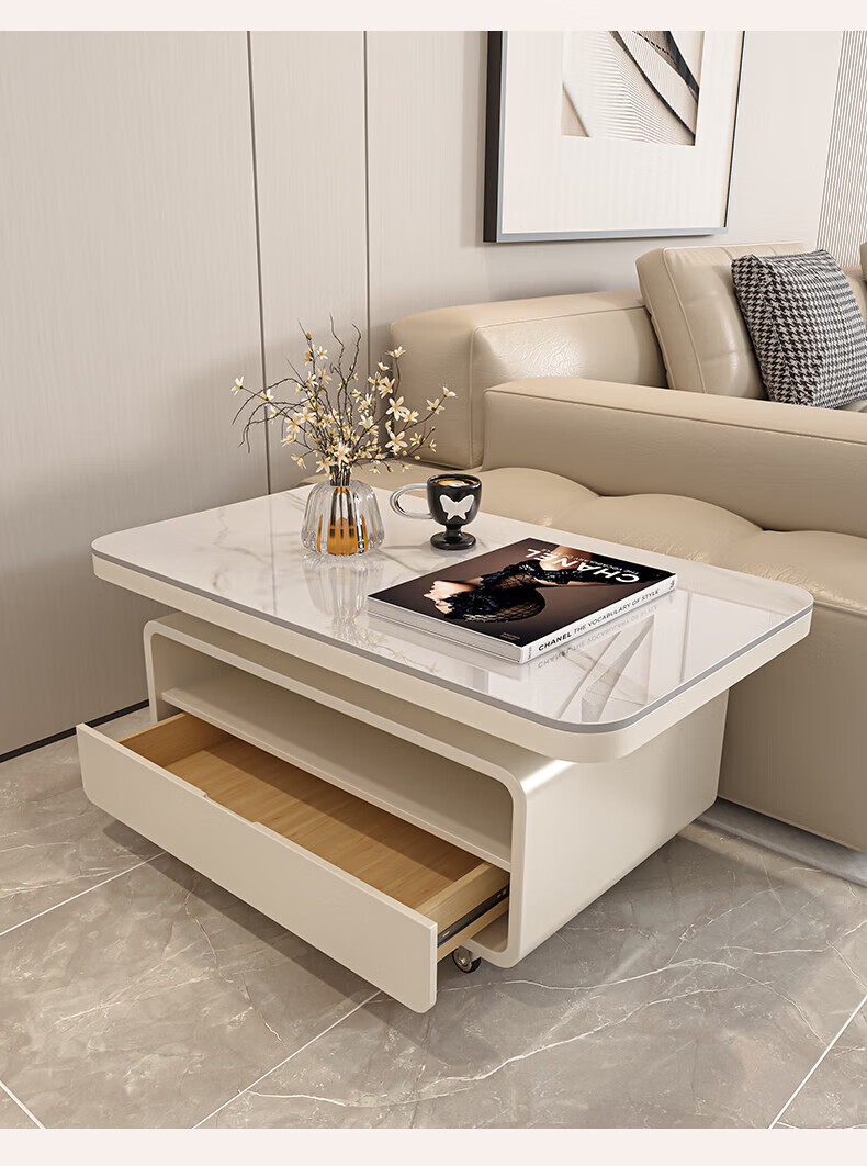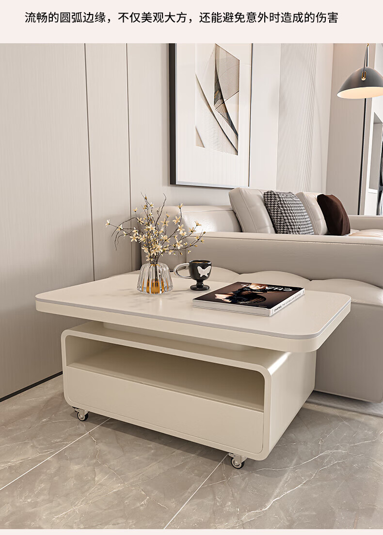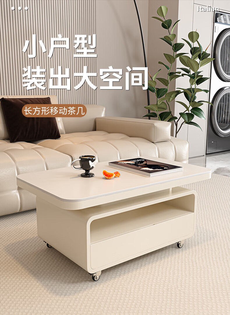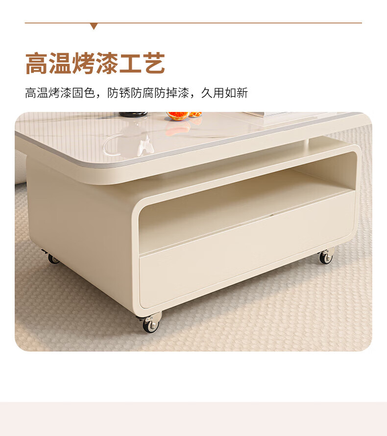 Puhuan mobile side table with wheels, new model for living room and coffee shop, small-sized tea table with stone slab, simple, light, luxurious and high-end side table, black frame, black cabinet + snow mountain white, 80 long, 45 wide, 47 high