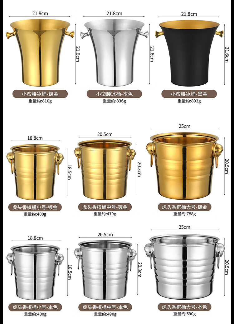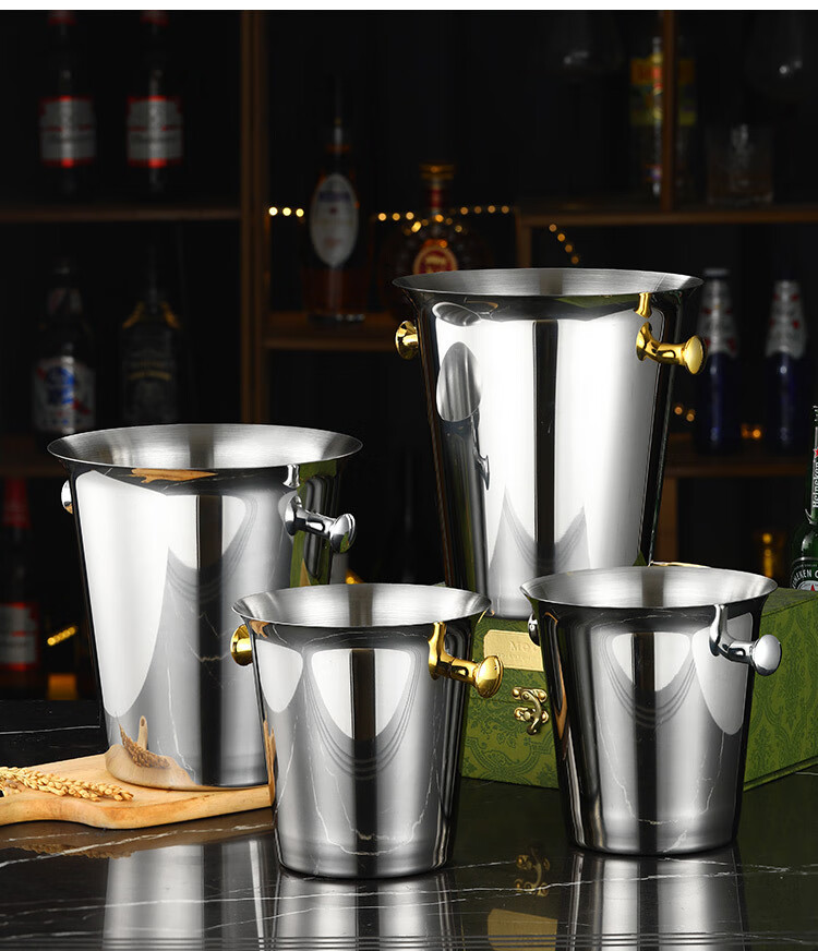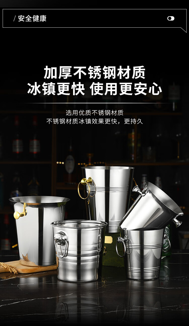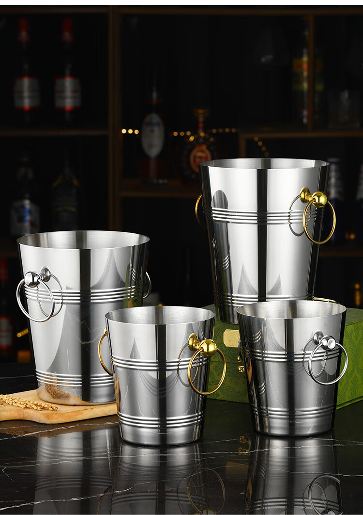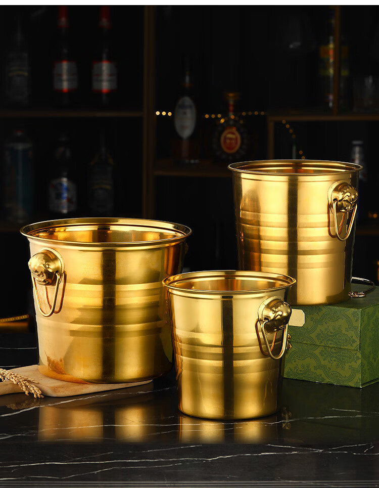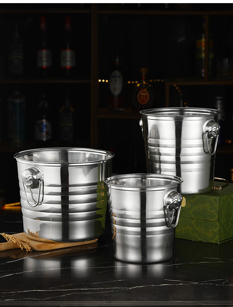 Shantou Lincun stainless steel ice bucket bar KTV special cocktail champagne bucket home living room red wine bucket ice bucket decorative bucket small tiger head champagne bucket (steel color)
