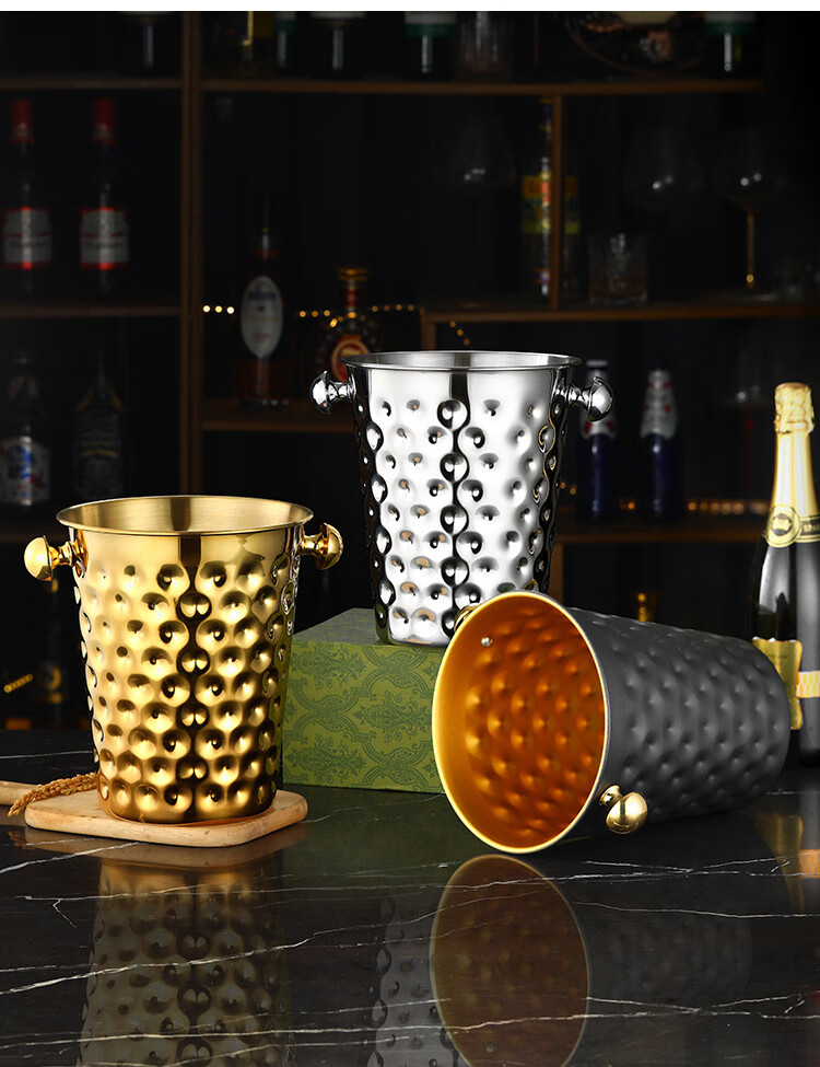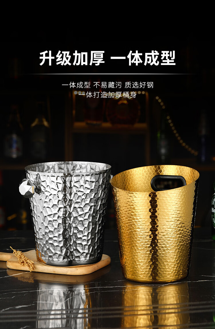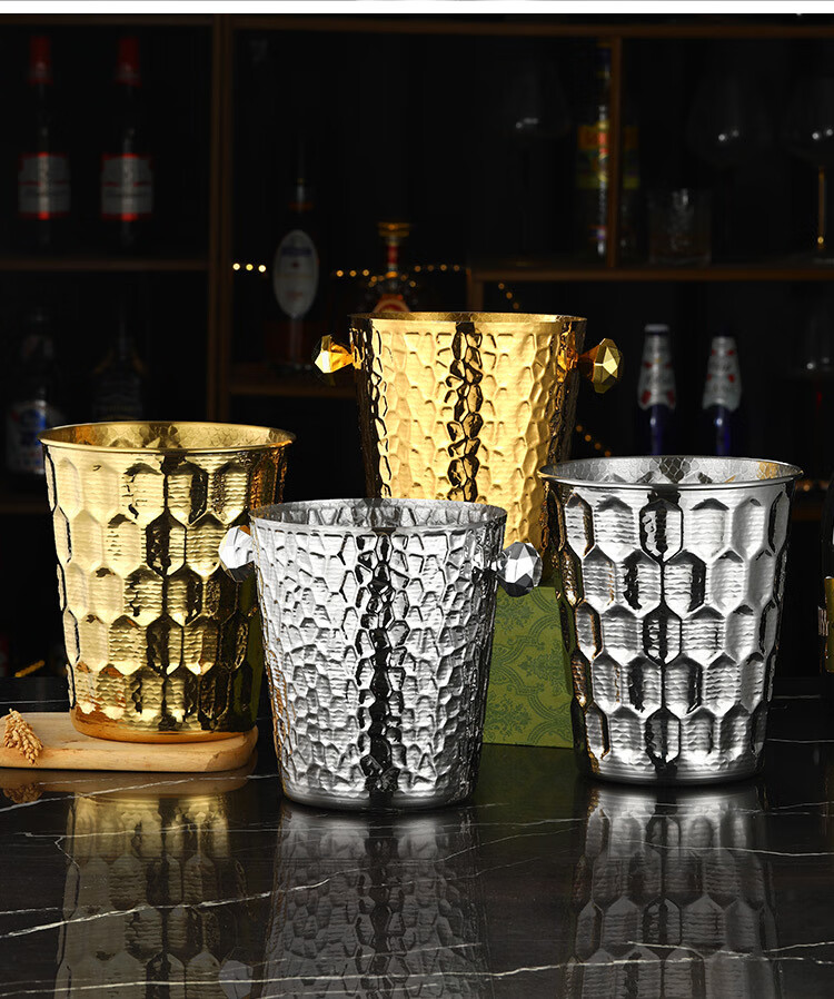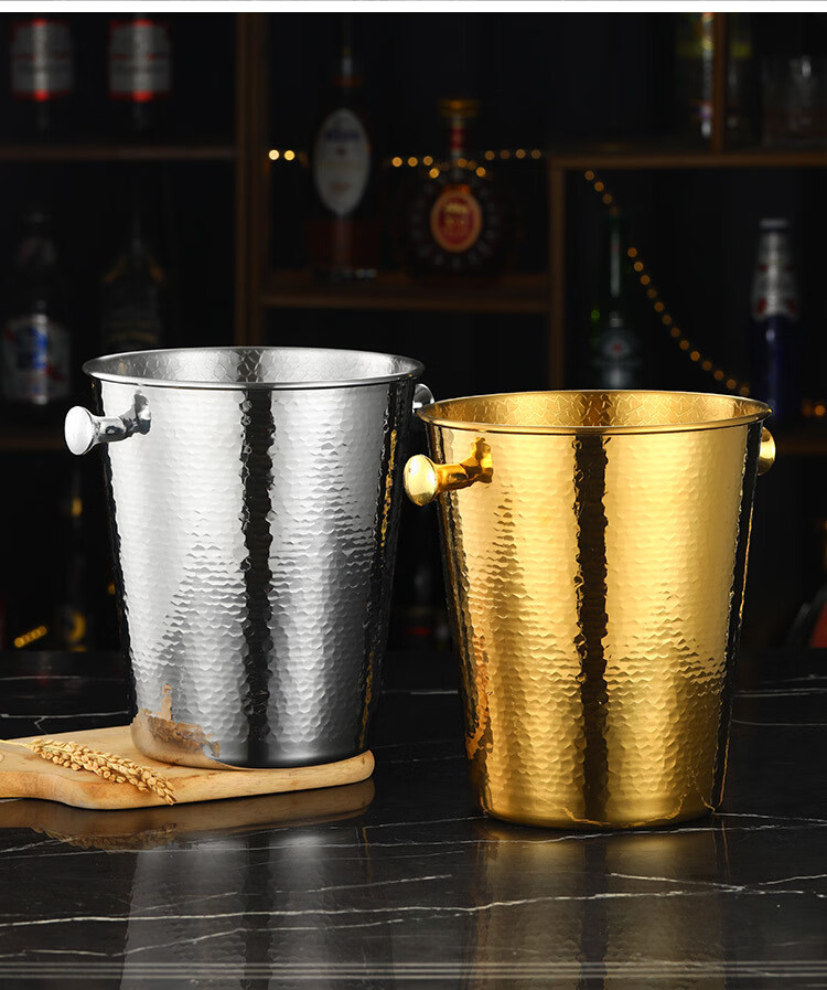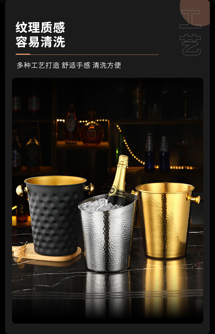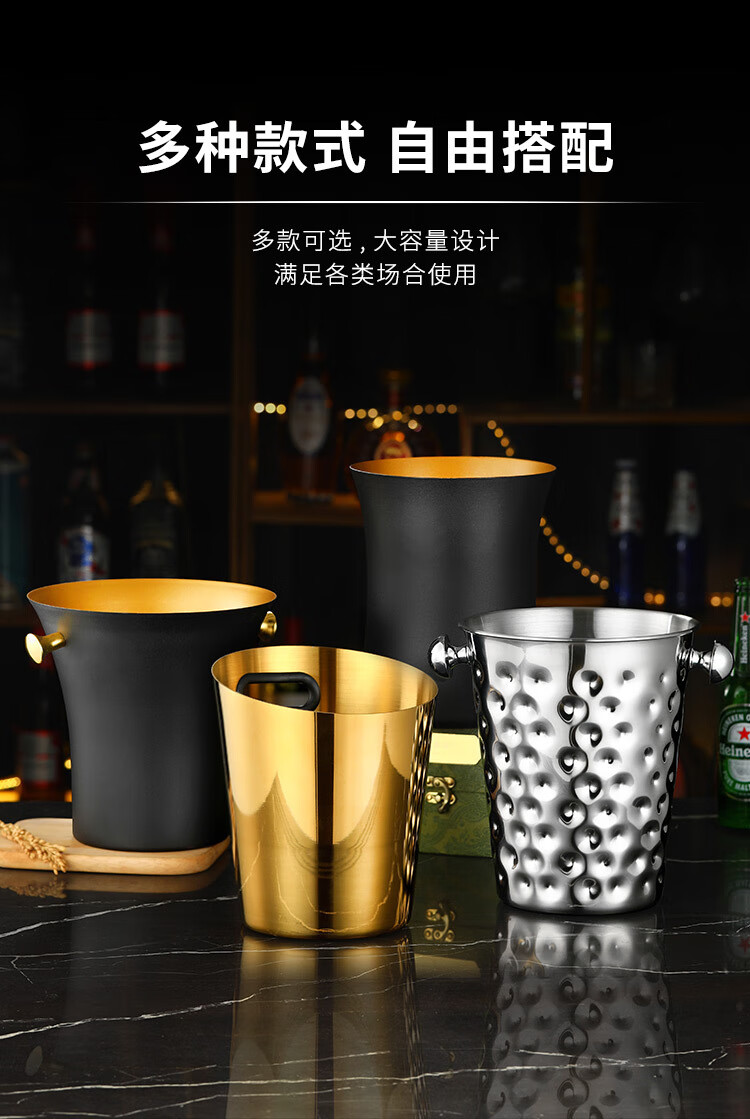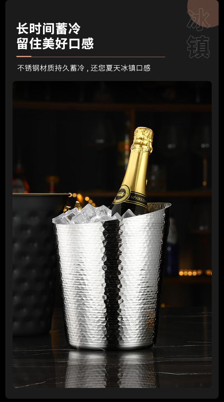 Shantou Lincun stainless steel ice bucket bar KTV special cocktail champagne bucket home living room red wine bucket ice bucket decorative bucket small tiger head champagne bucket (steel color)