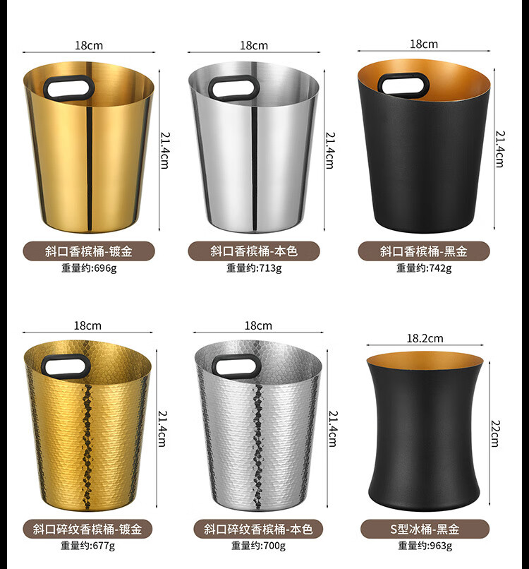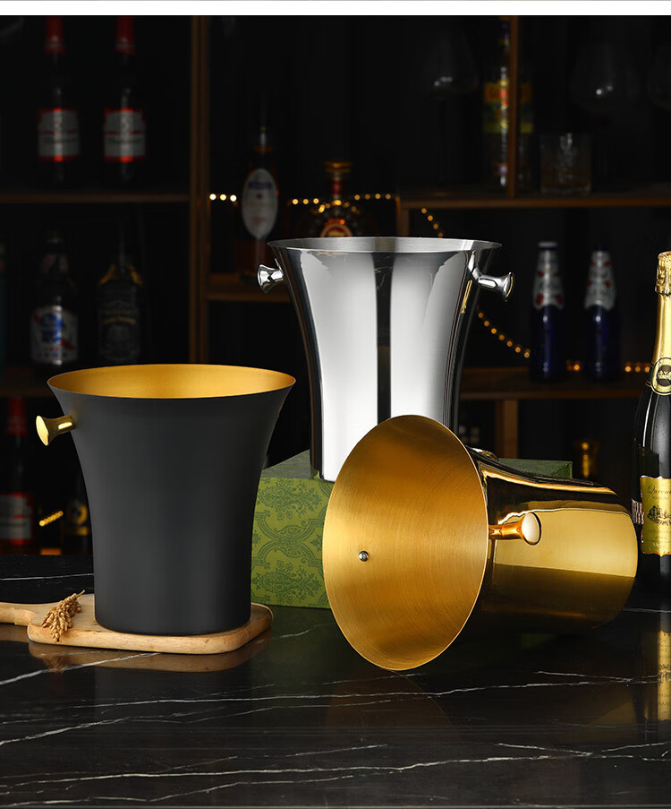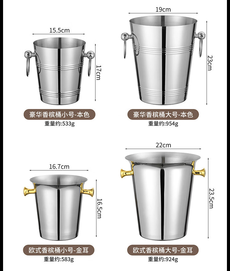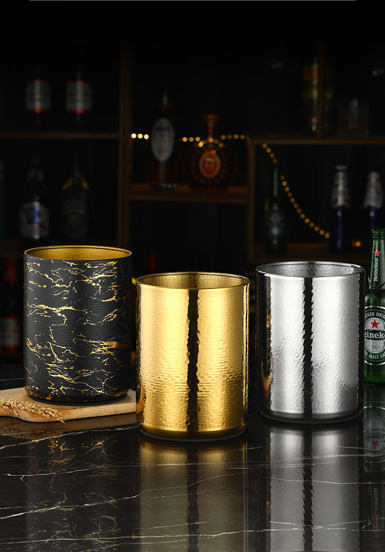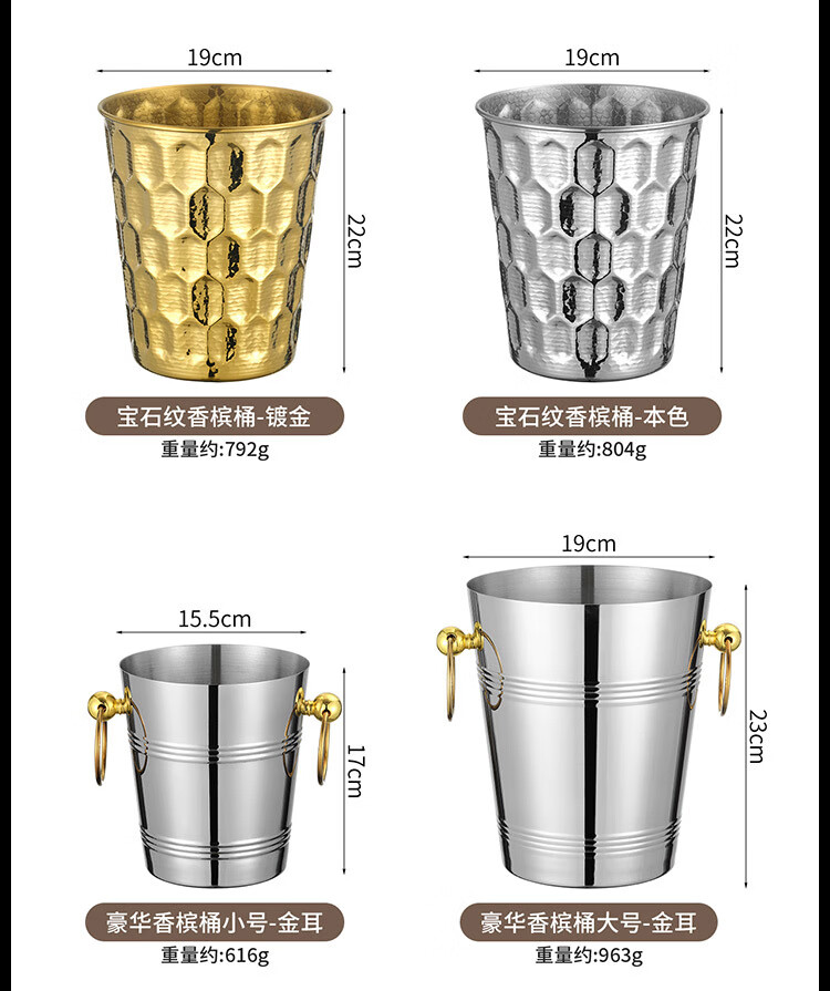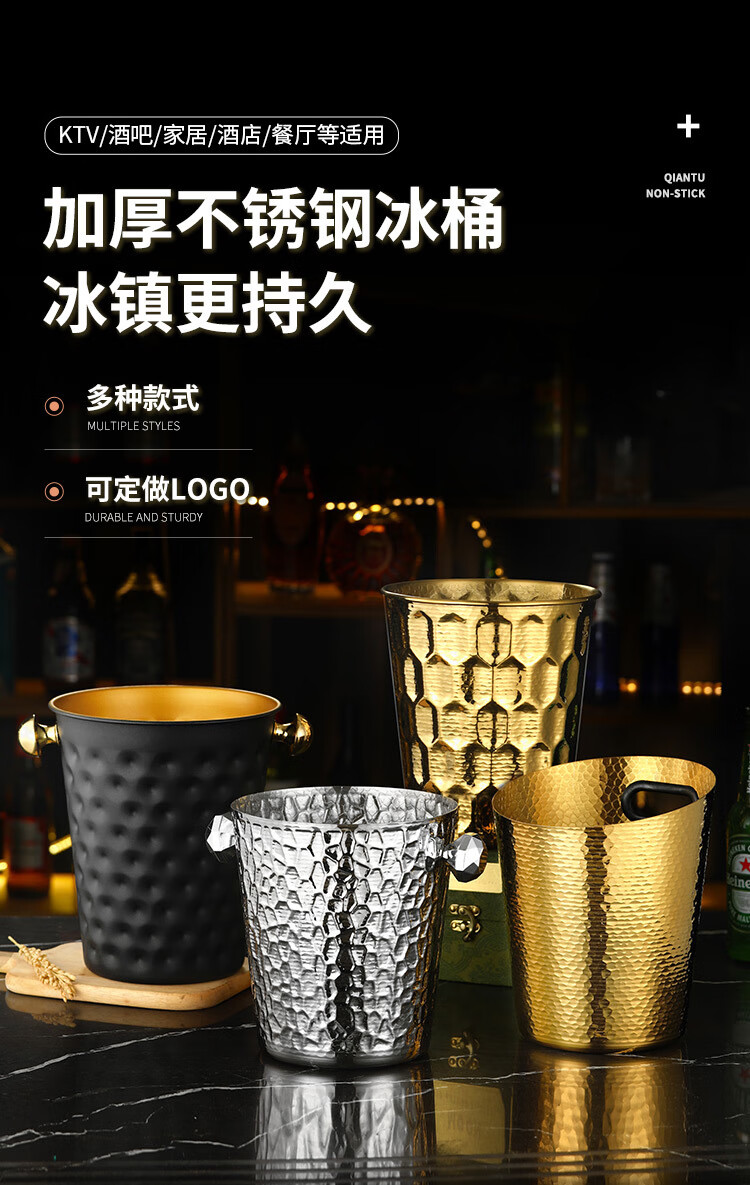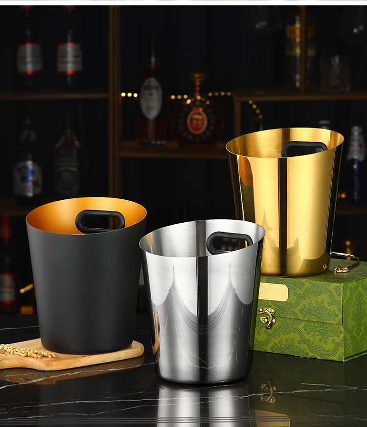 Shantou Lincun stainless steel ice bucket bar KTV special cocktail champagne bucket home living room red wine bucket ice bucket decorative bucket small tiger head champagne bucket (steel color)