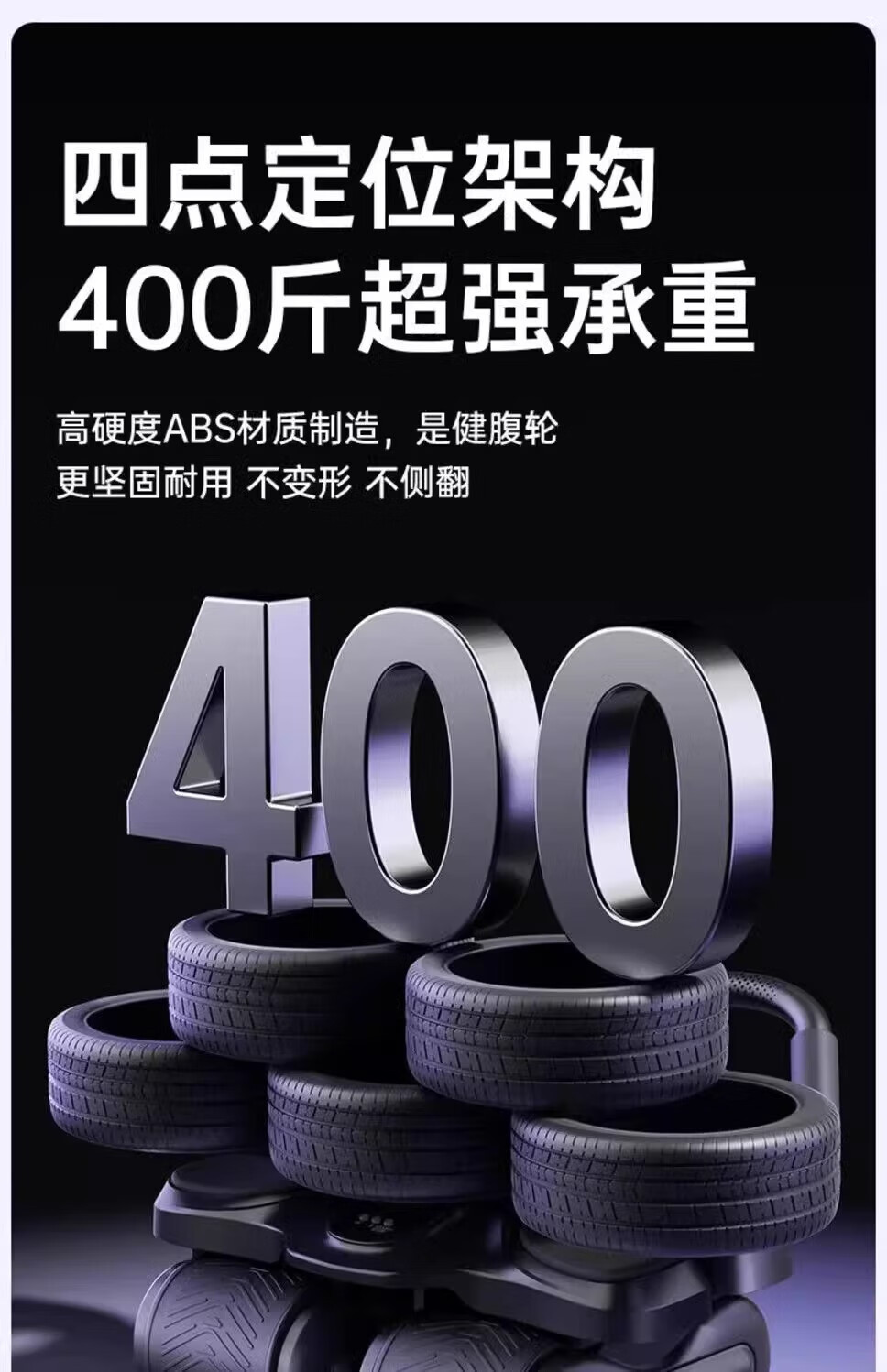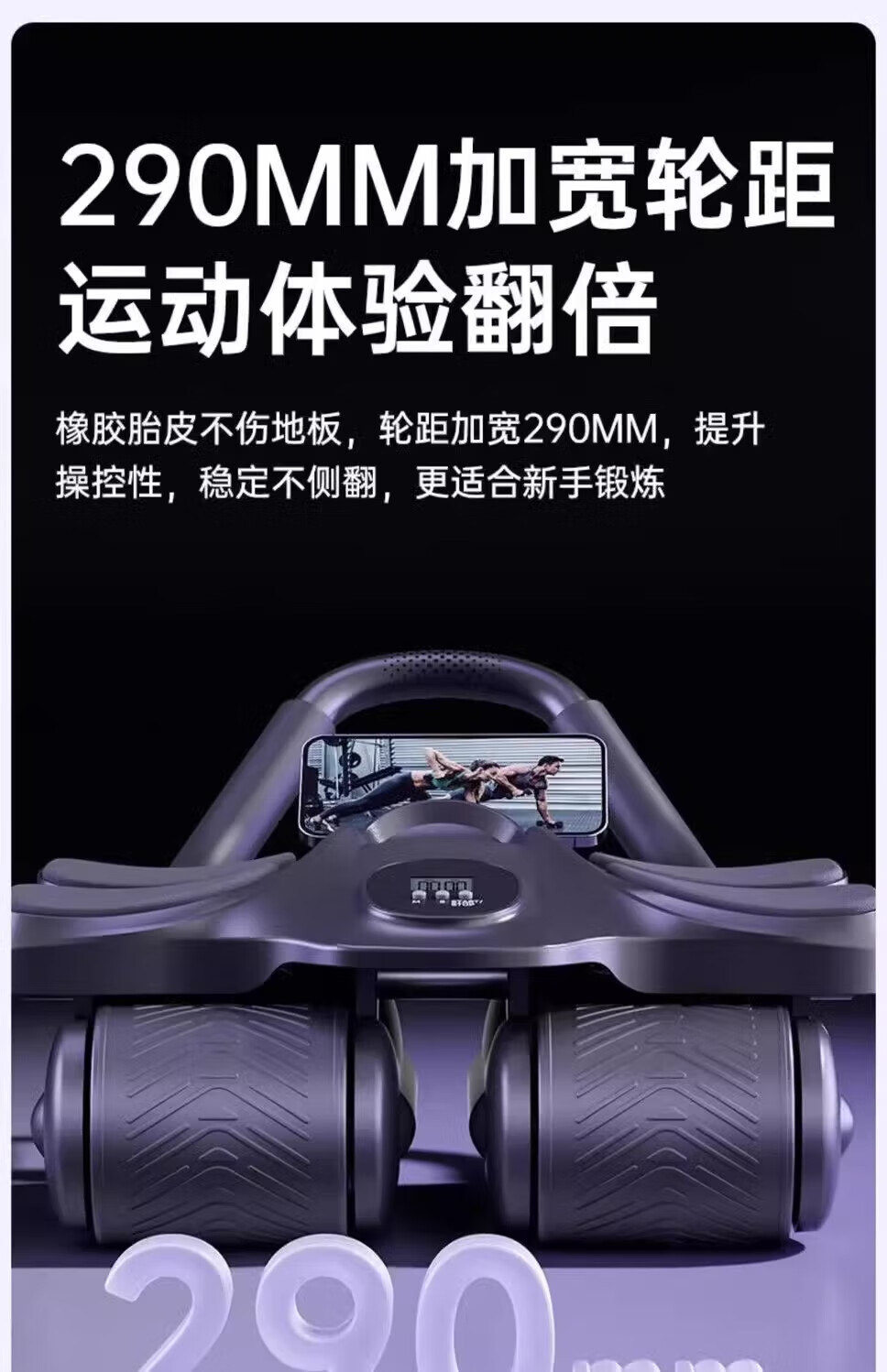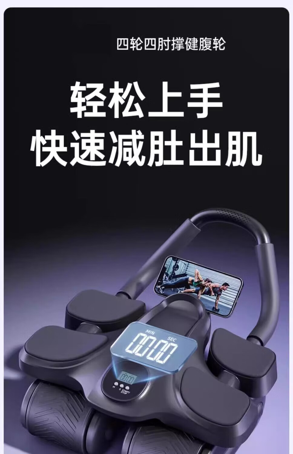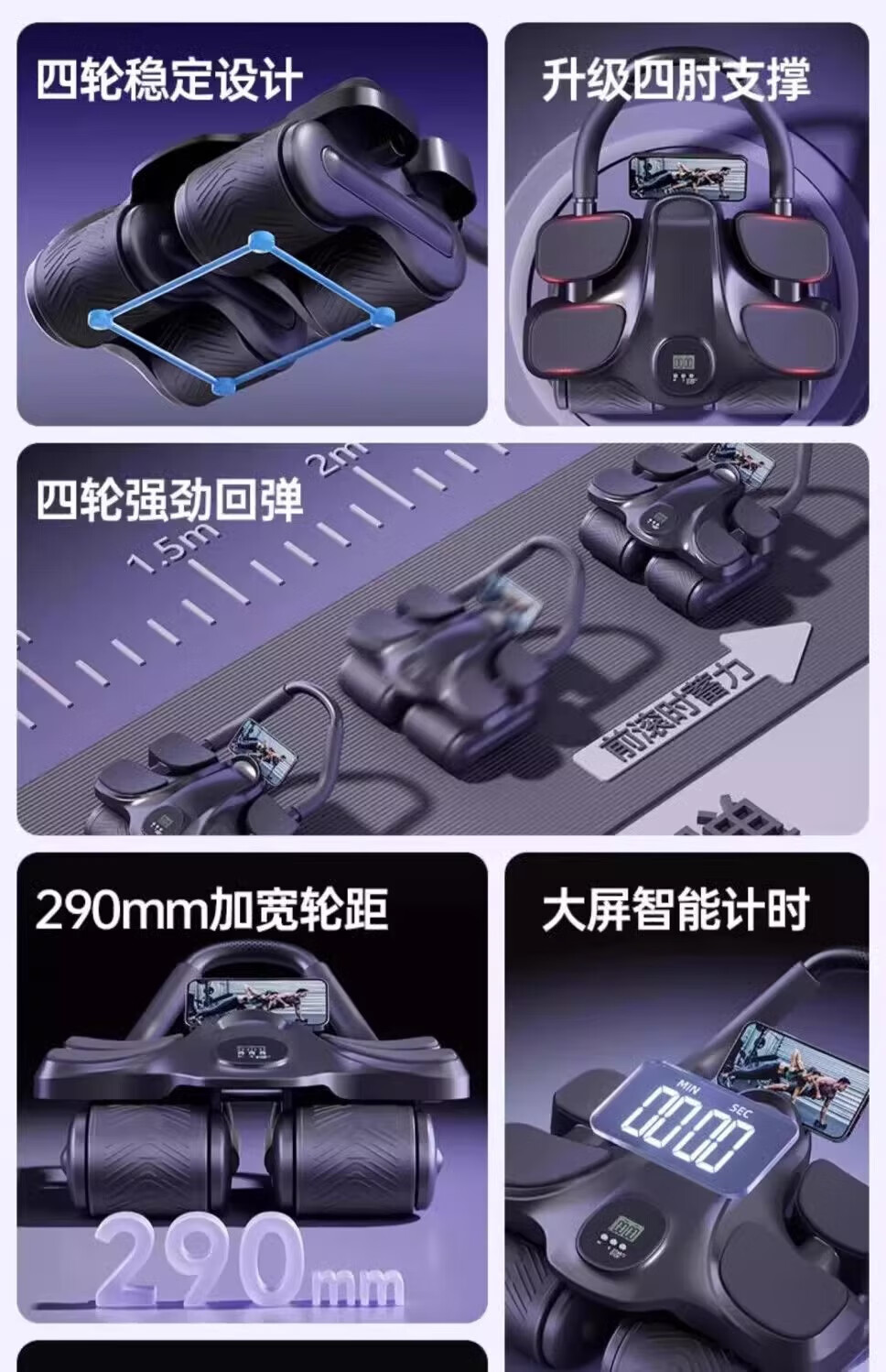 He Jiagong's new four-wheel abdominal fitness wheel, automatic rebound, abdominal muscle training tool for men and women, household abdominal curling and slimming exercise equipment, new upgraded model - 4 wheels with timing and kneeling pad