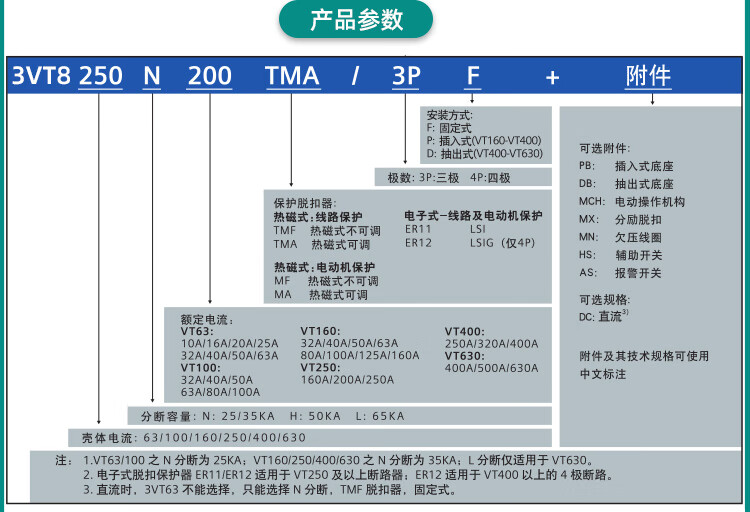 Molded case circuit breaker 3VT8110 8216 air switch 100A160A250A400A630A main switch 3VT863N TMF/3P 32A