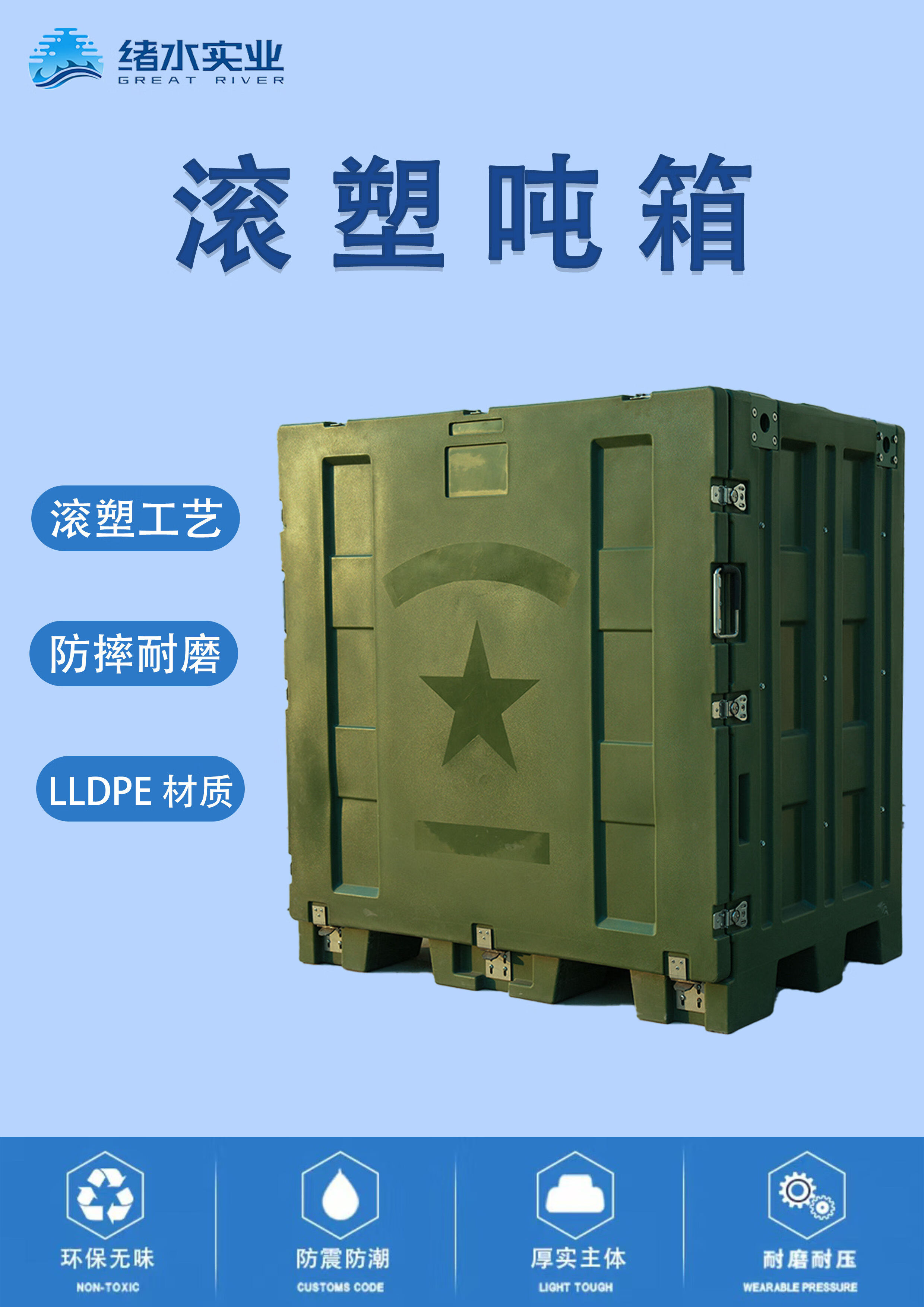 Xushui rotational molding ton container rotational molding material box standard equipment container 1200*800*1120 rotational molding ton container military green