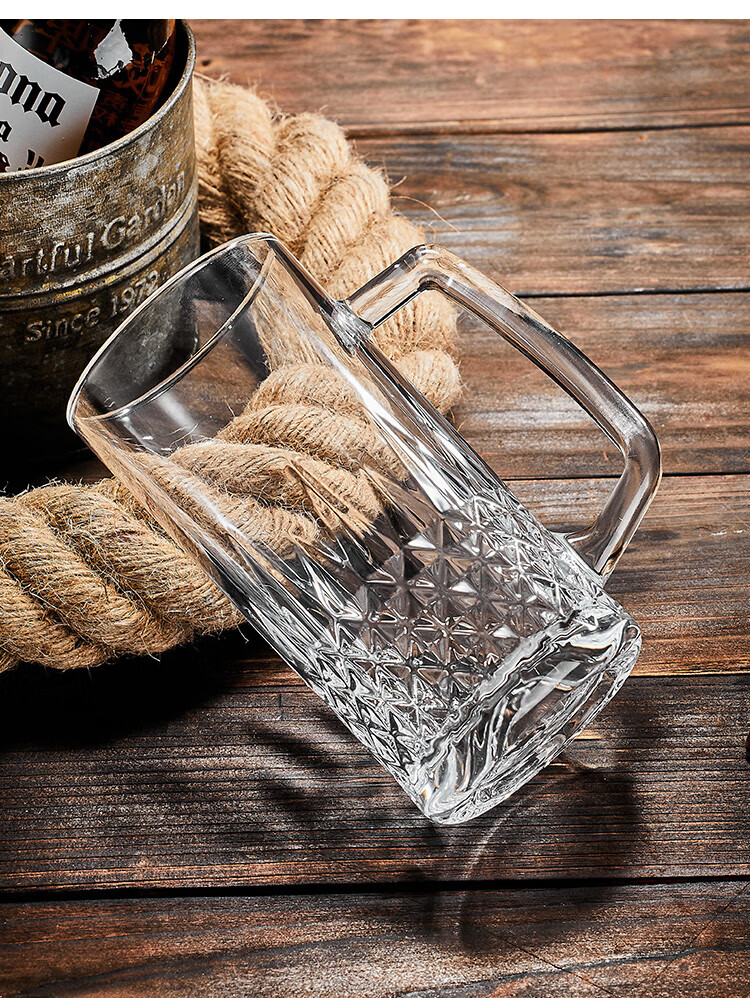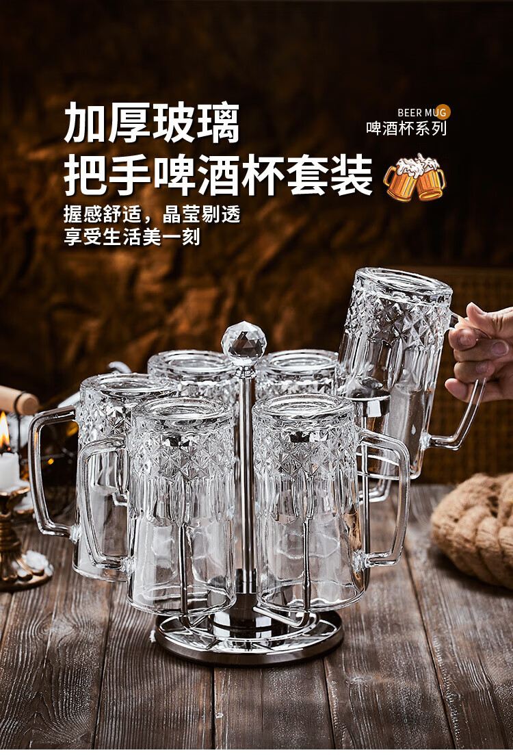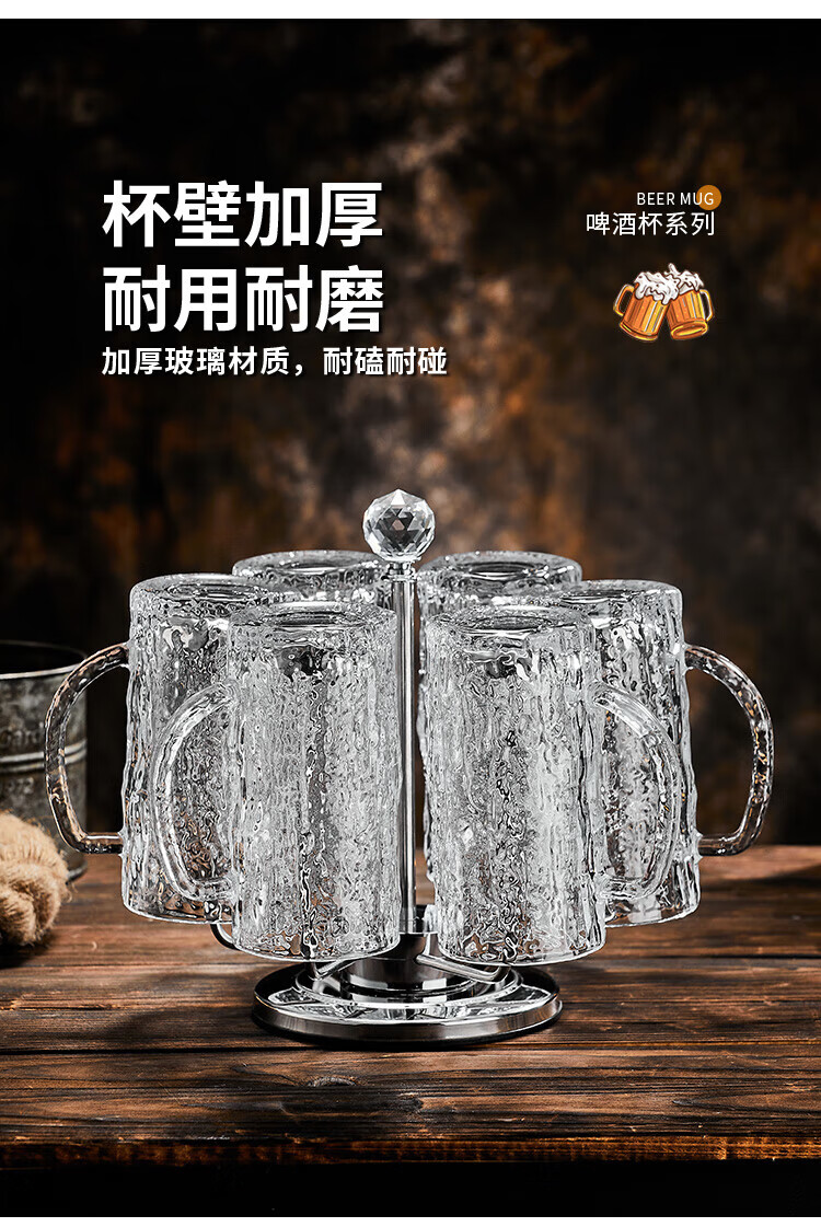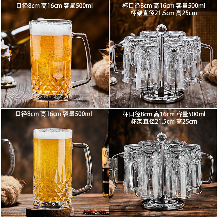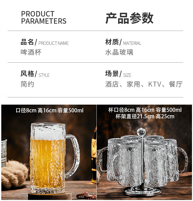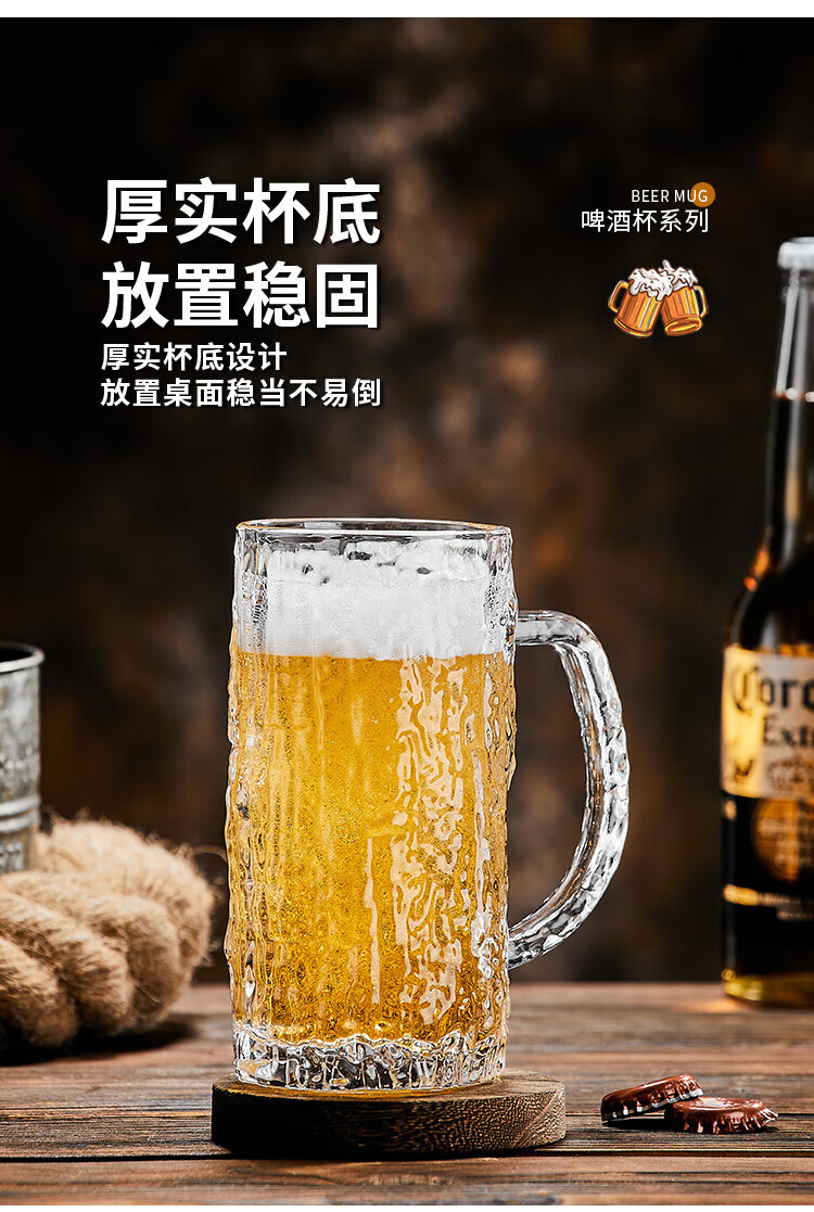 He Jiagong Beer Cup Set Light Luxury High-End 500ml Crystal Glass Creative Craft Beer Cup Household Large Capacity Thickened Tempered Grade Hammered Craft Beer Cup 500MLa