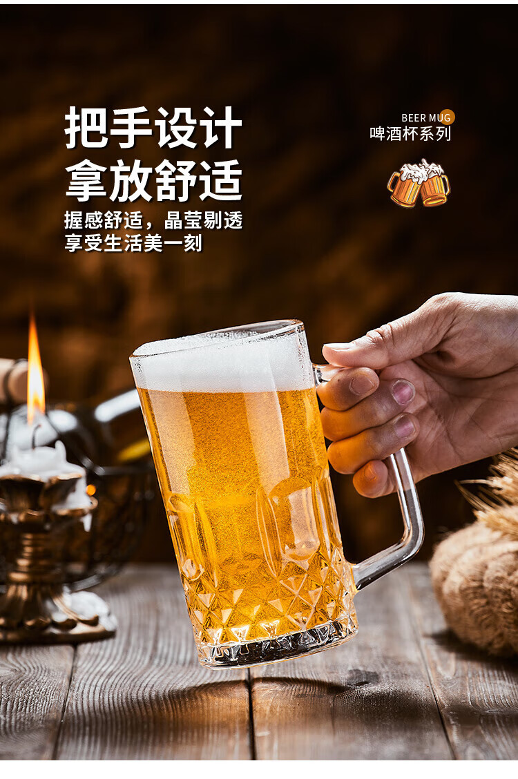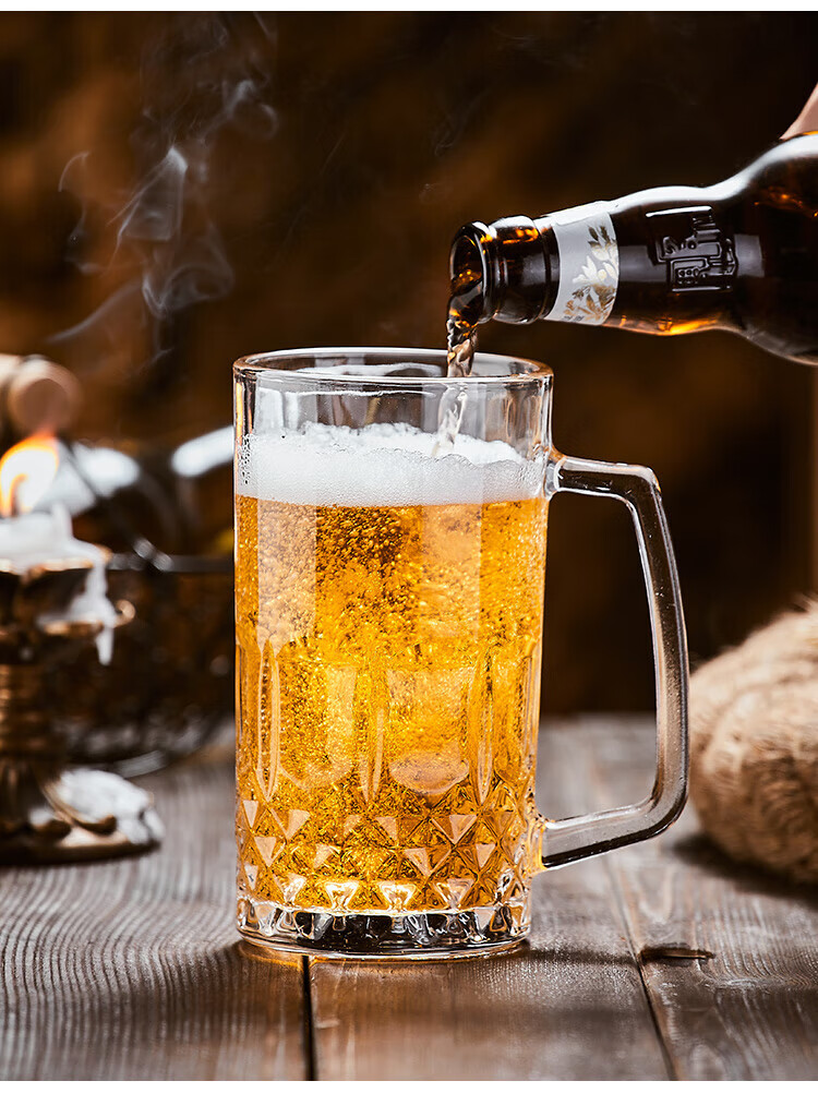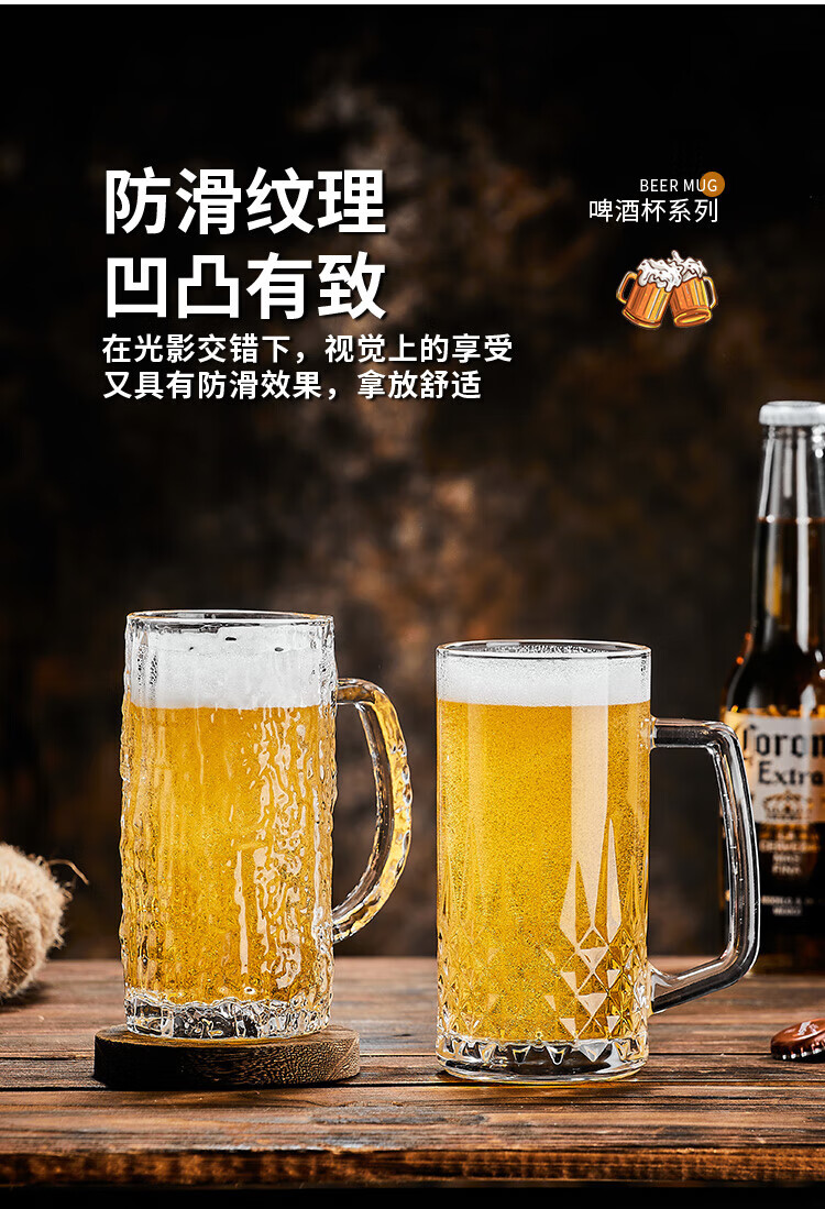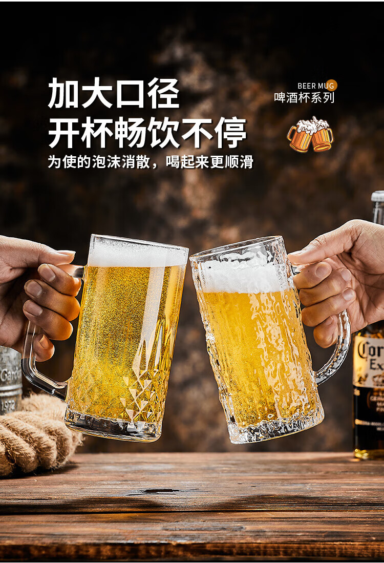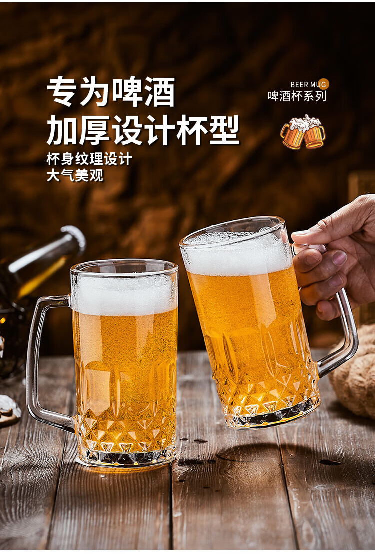 He Jiagong Beer Cup Set Light Luxury High-End 500ml Crystal Glass Creative Craft Beer Cup Household Large Capacity Thickened Tempered Grade Hammered Craft Beer Cup 500MLa