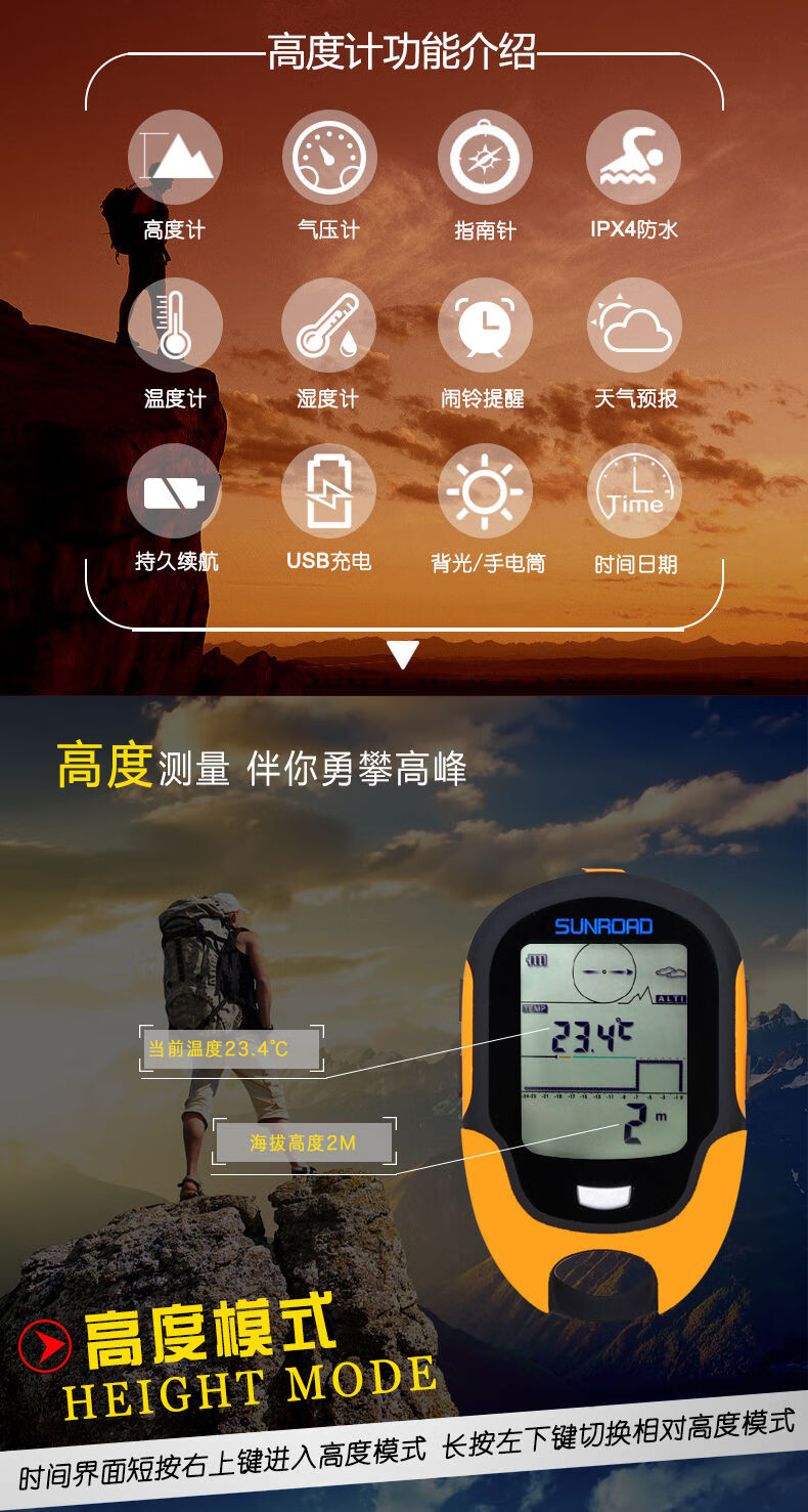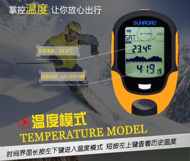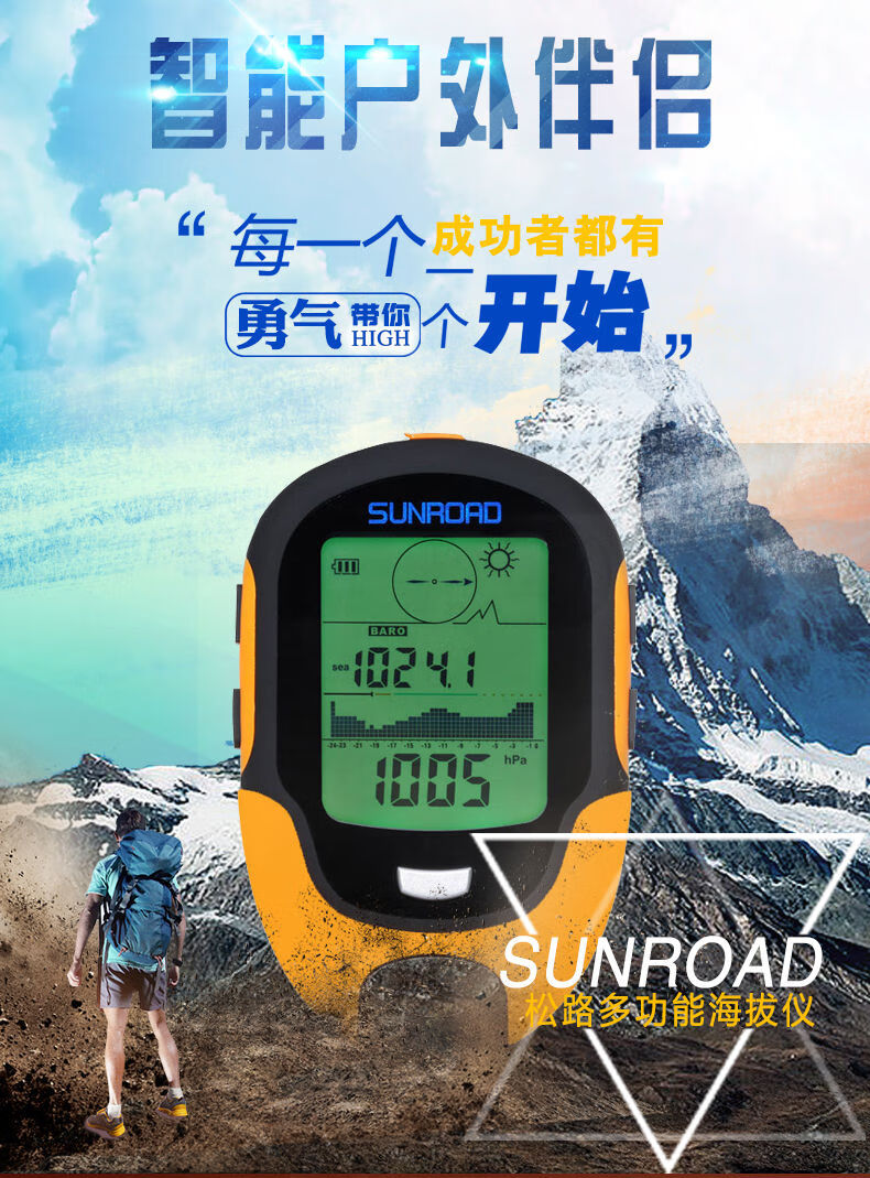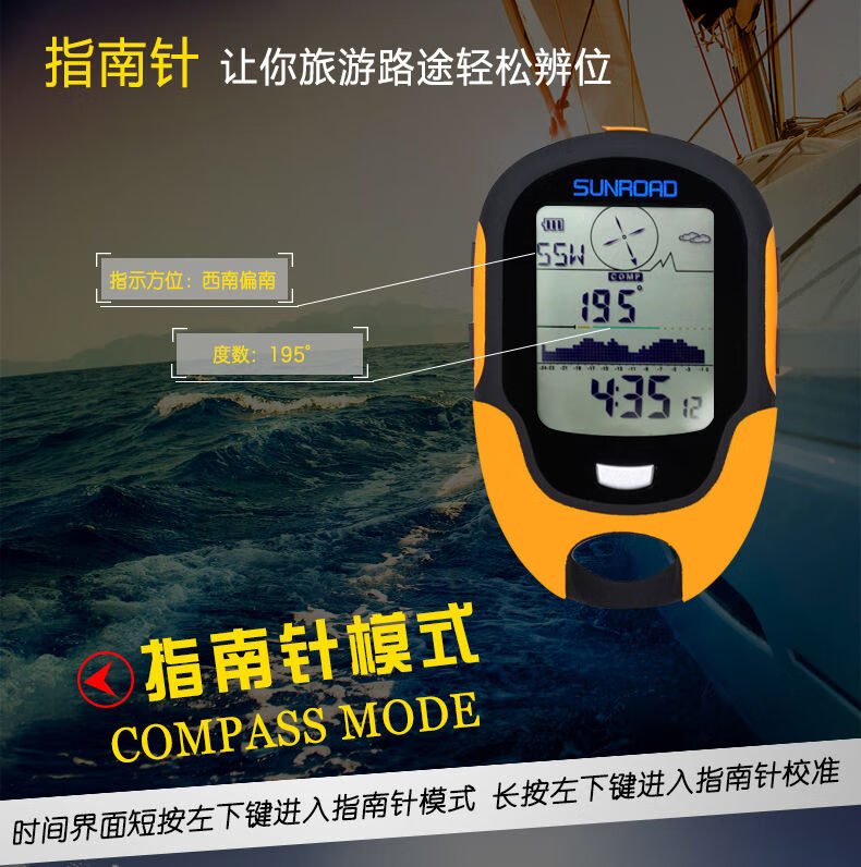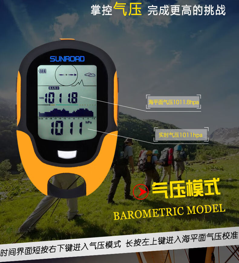 Outdoor GPS positioning weather handheld longitude and latitude altimeter altitude meter temperature and humidity barometer compass fishing light yellow