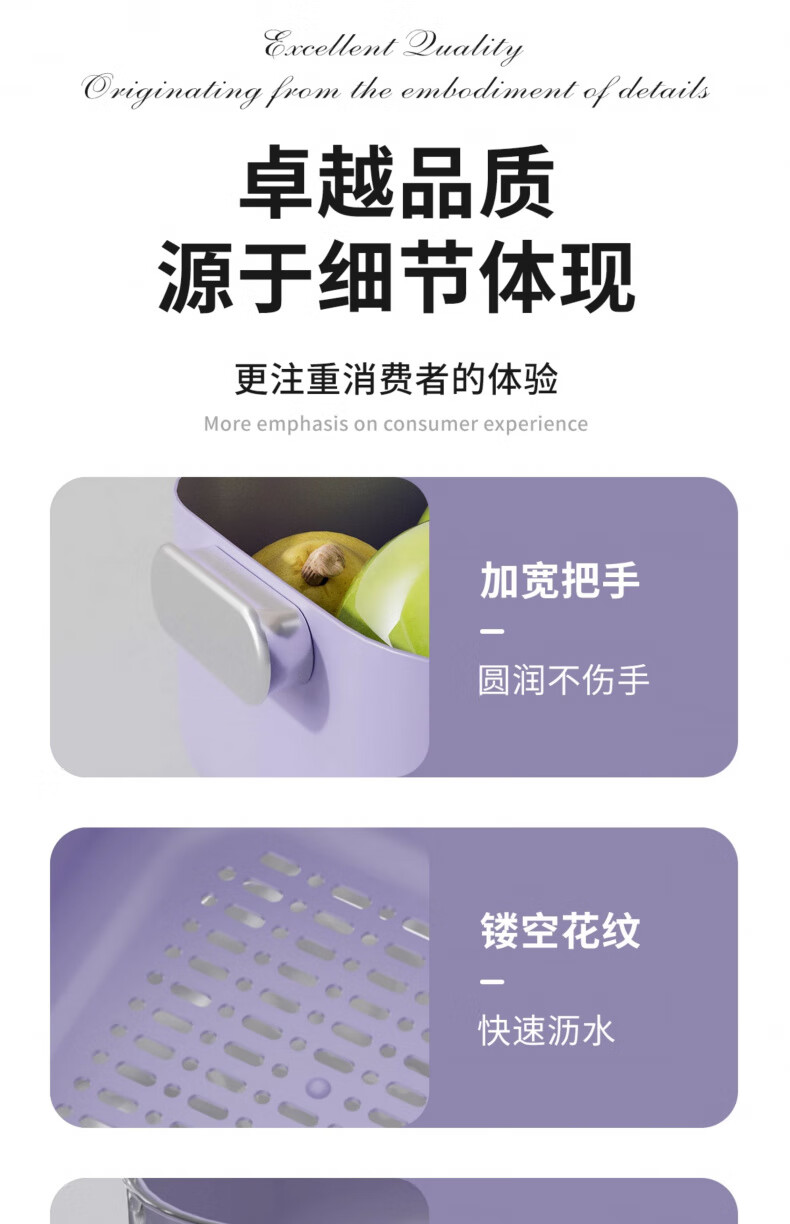 Sawang Germany drain basket vegetable basket kitchen drain artifact household multi-functional fruit basket storage basket mint green - small, medium and large - double layer drain basket 6-piece set high-end quality