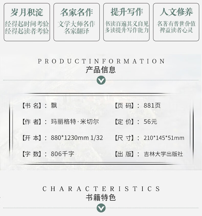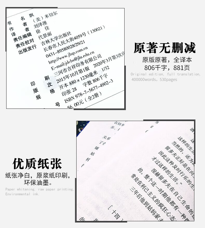 Xinhua genuine full translation without deletions Piaoshu original book original Gone with the Wind Volumes 1 and 2 Chinese version of classic world famous works foreign literary works novels middle school