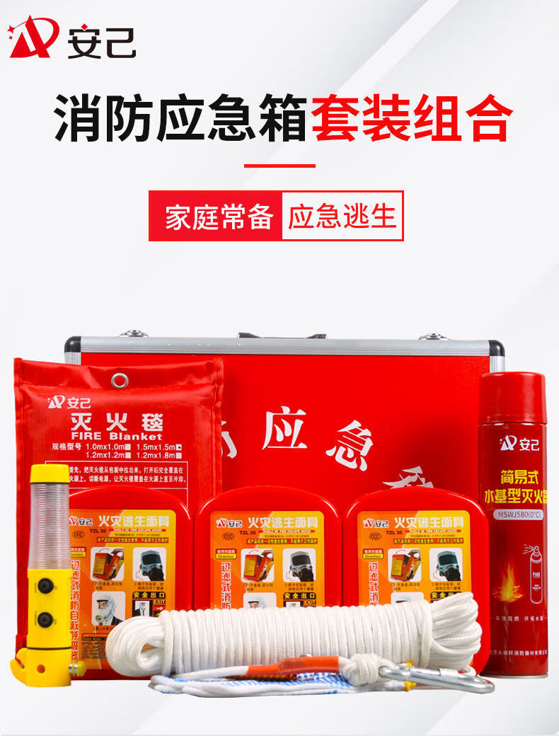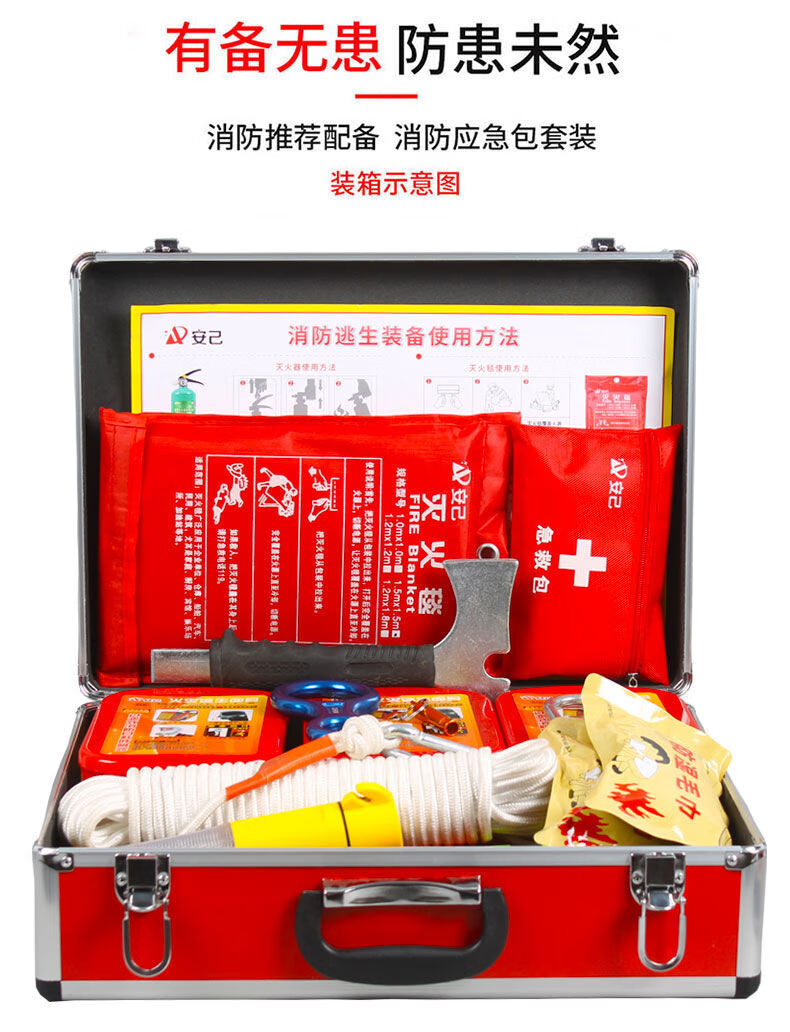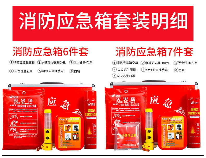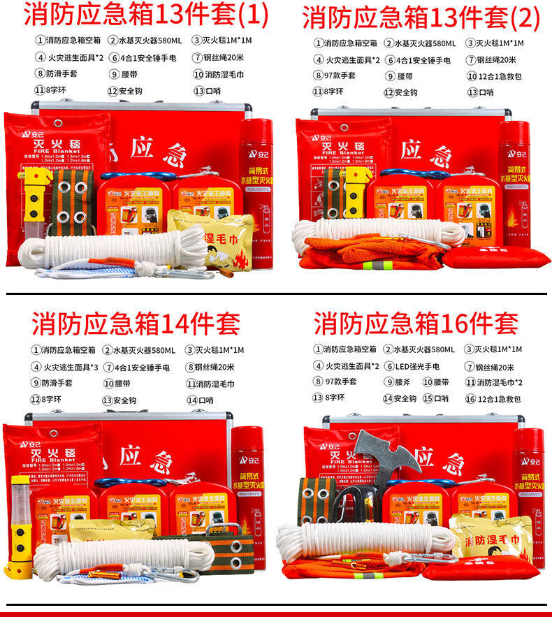 Fire emergency box, water-based fire extinguisher, fire equipment emergency kit set, fire escape mask, fire blanket, fire emergency box combination seven-piece set