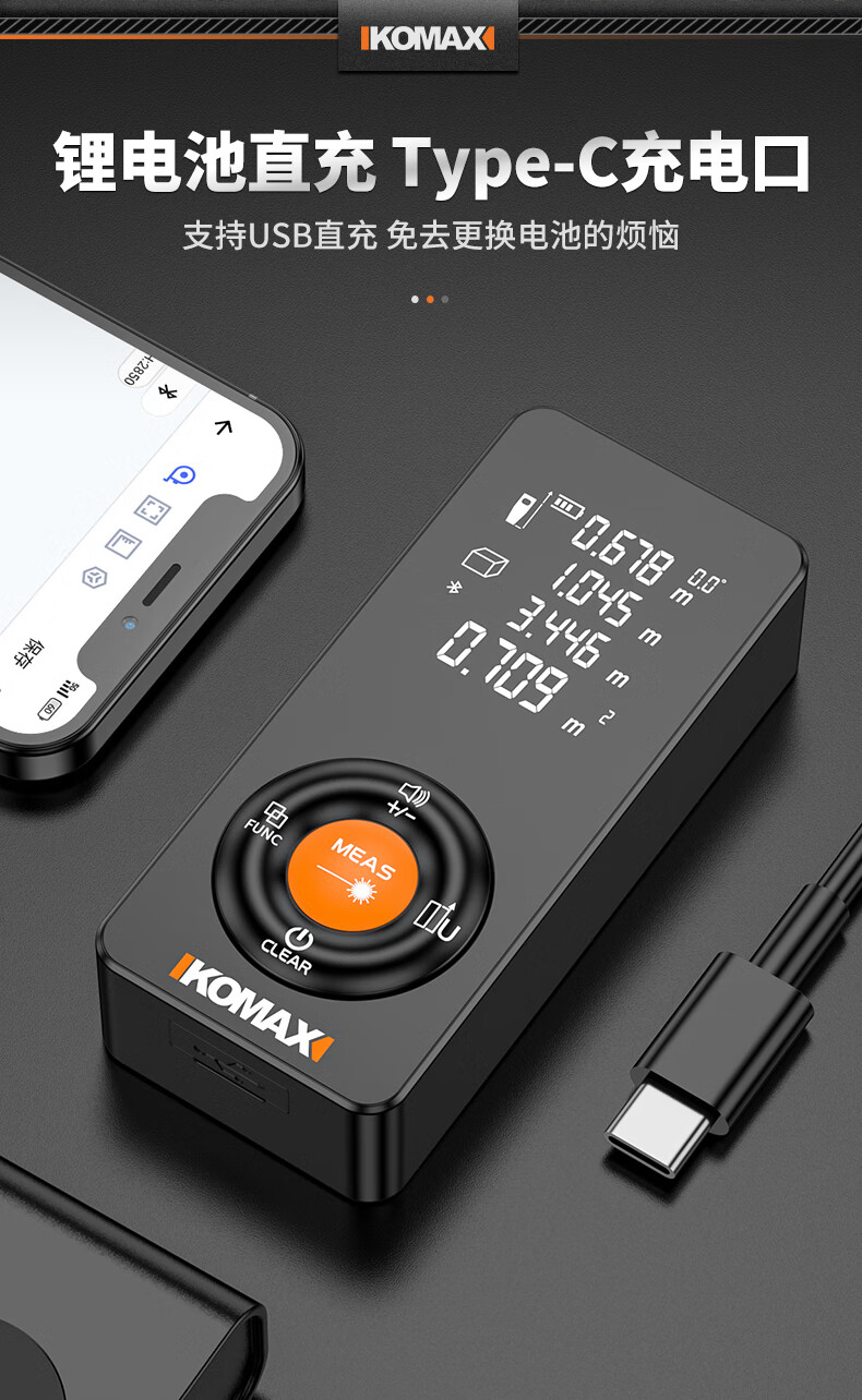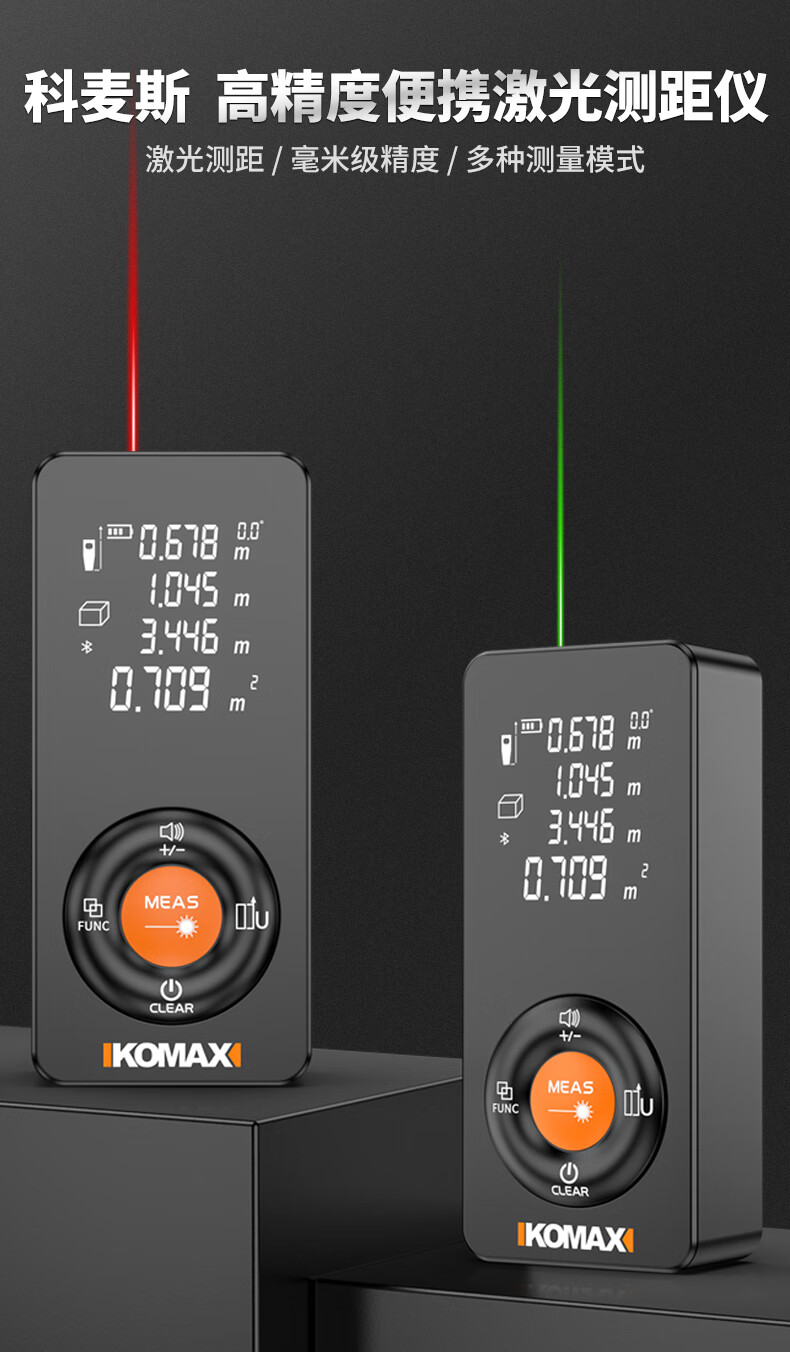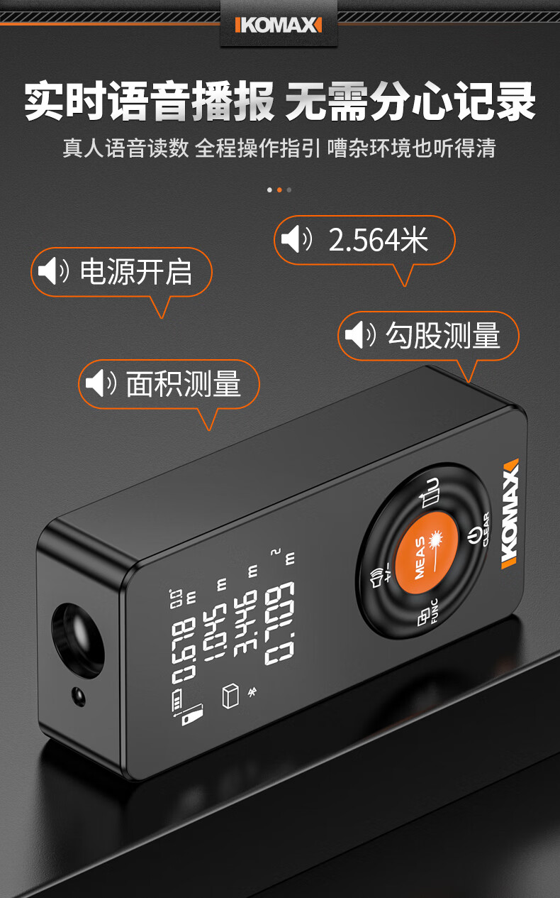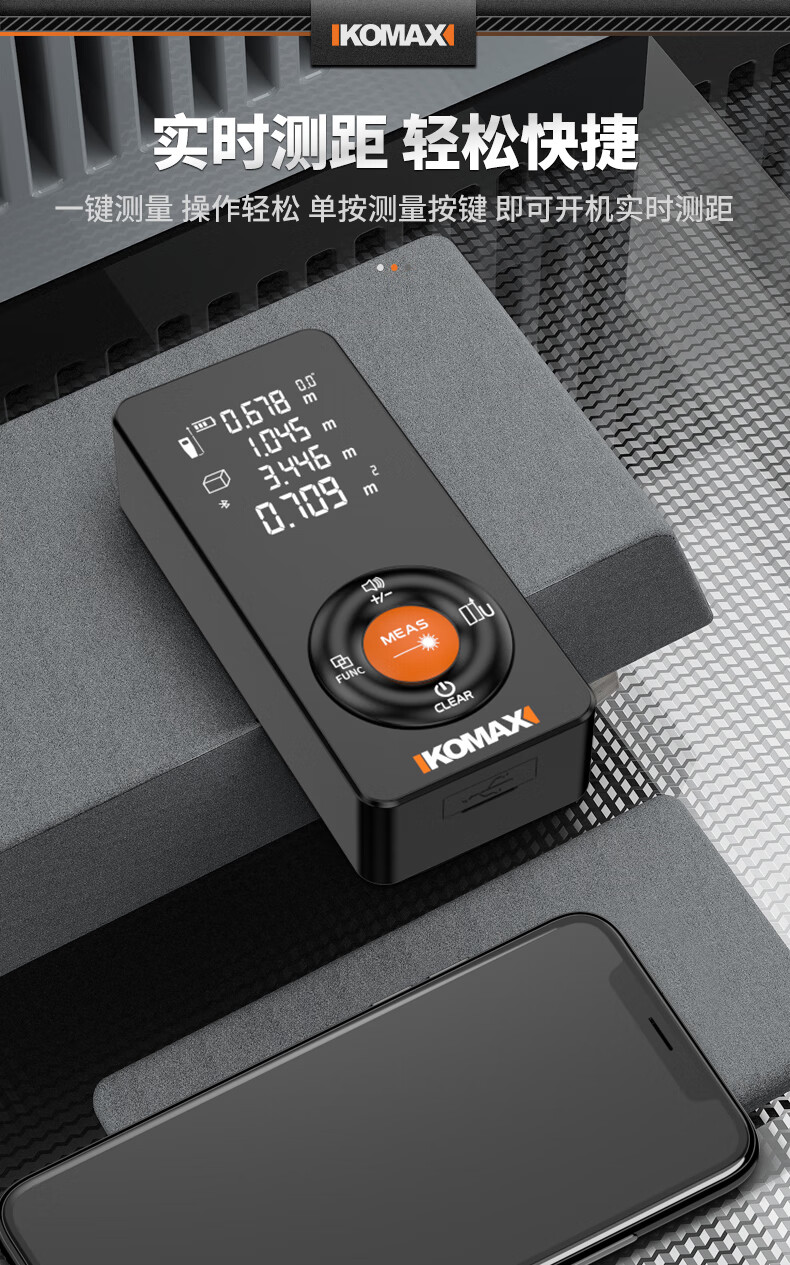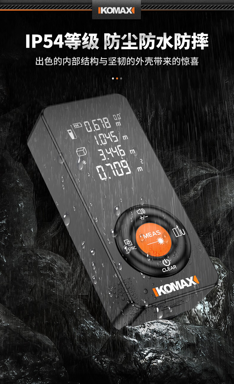 KOMAX laser rangefinder infrared high-precision industrial-grade handheld measuring room artifact lithium battery_voice_IP54 waterproof 50-meter black warrior