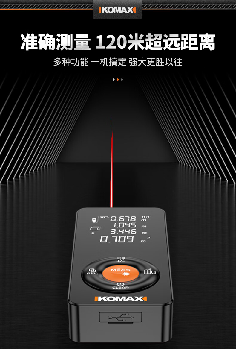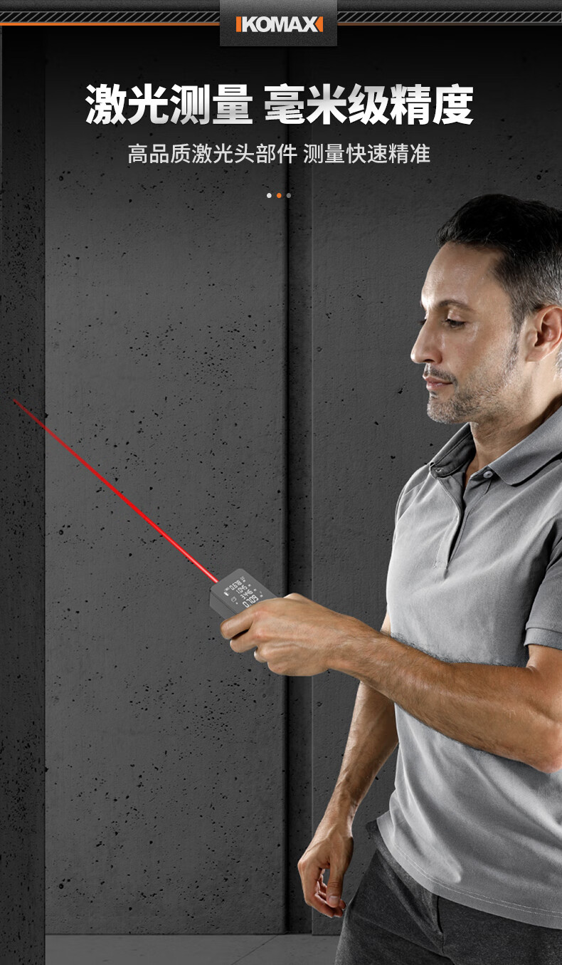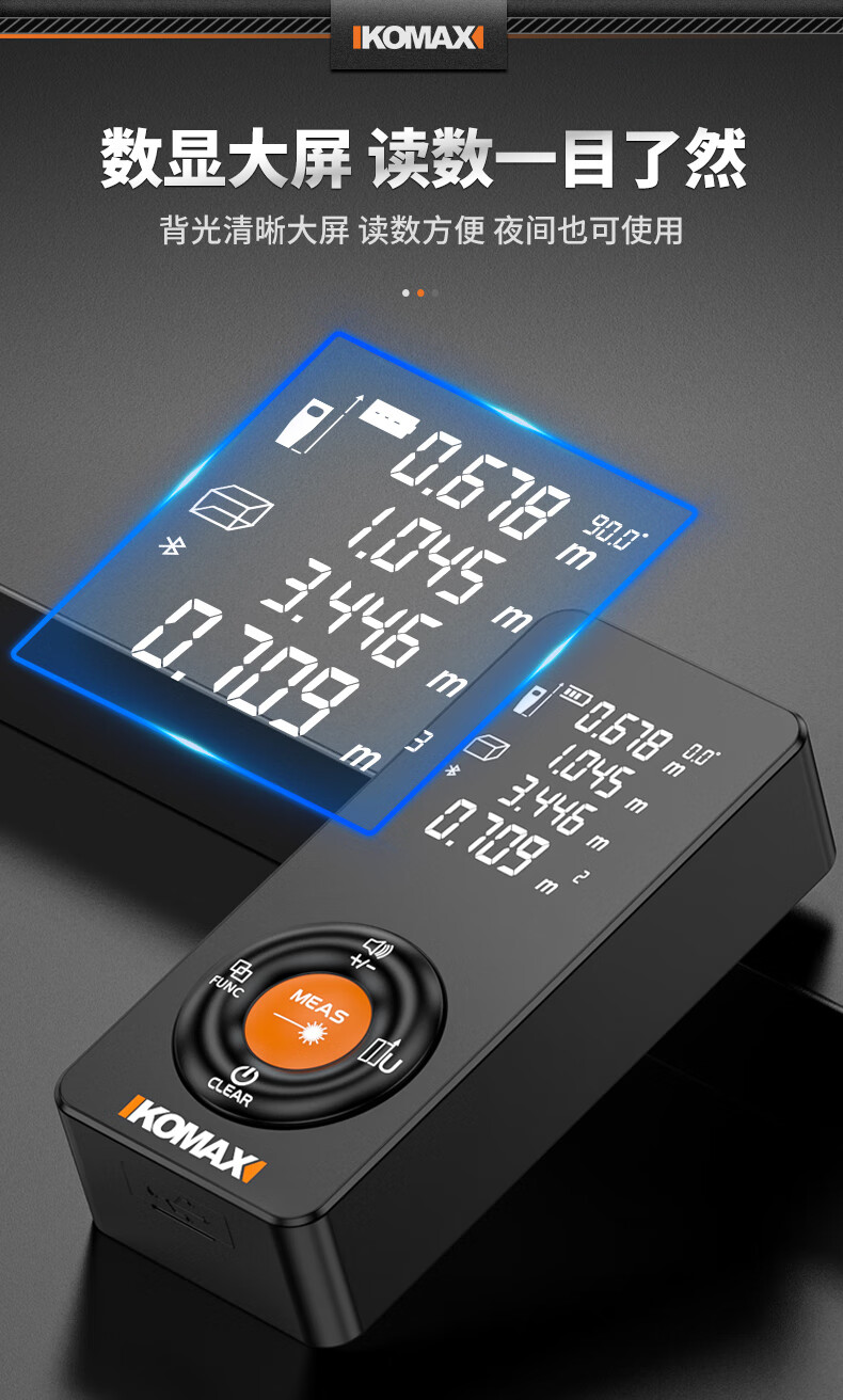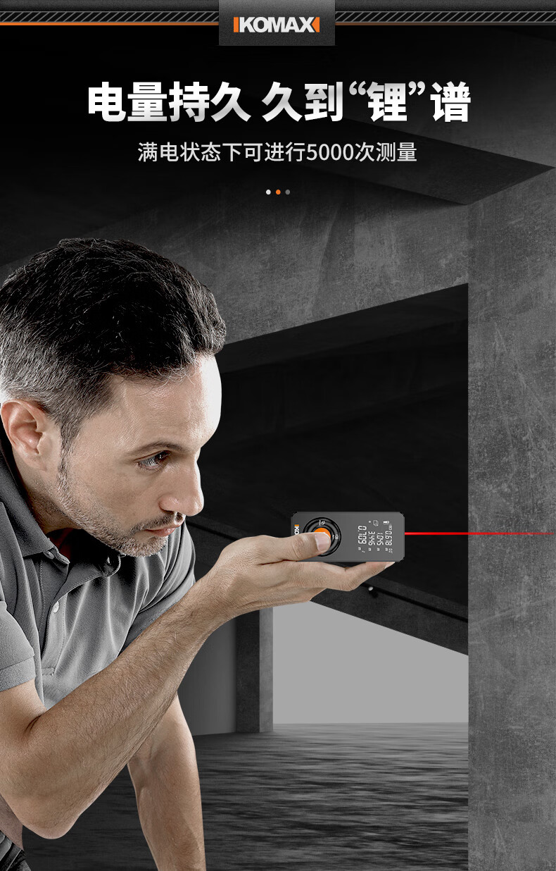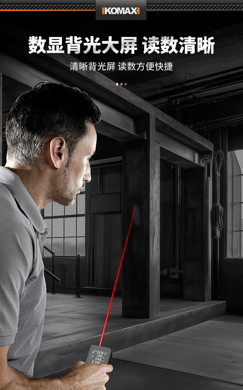 KOMAX laser rangefinder infrared high-precision industrial-grade handheld measuring room artifact lithium battery_voice_IP54 waterproof 50-meter black warrior