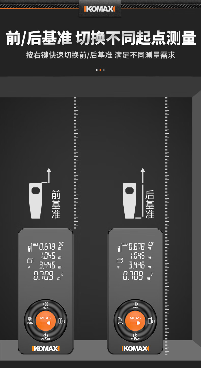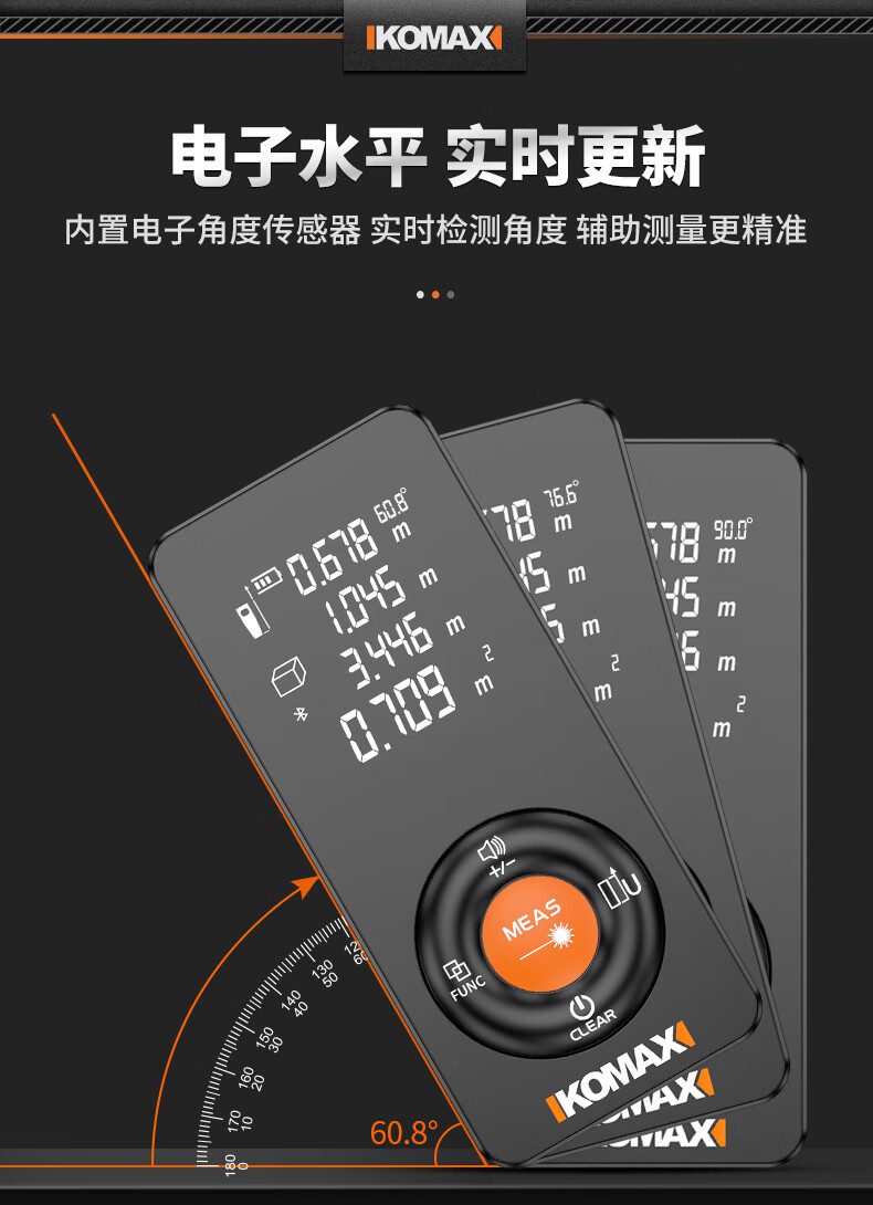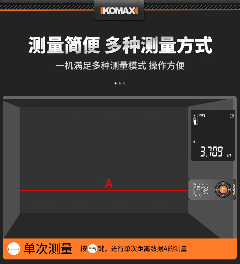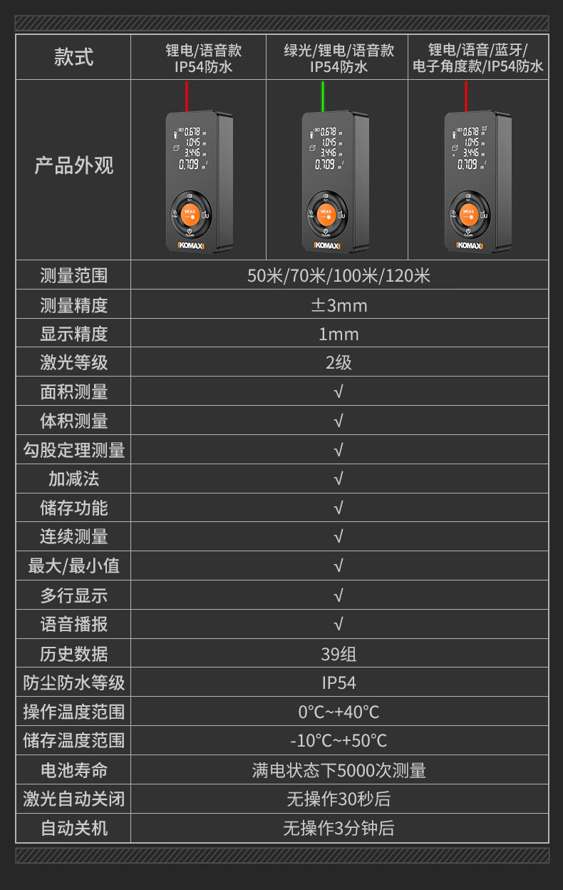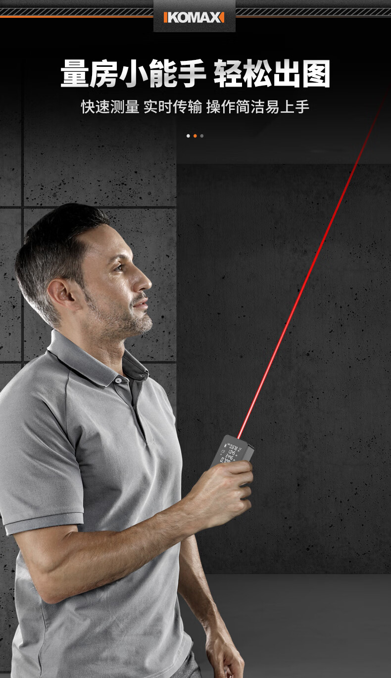 KOMAX laser rangefinder infrared high-precision industrial-grade handheld measuring room artifact lithium battery_voice_IP54 waterproof 50-meter black warrior