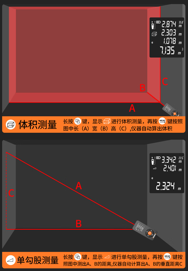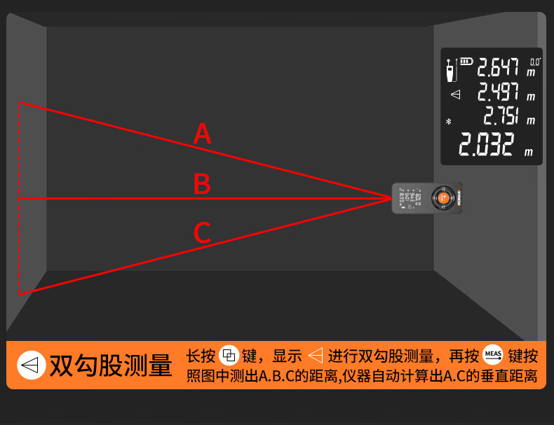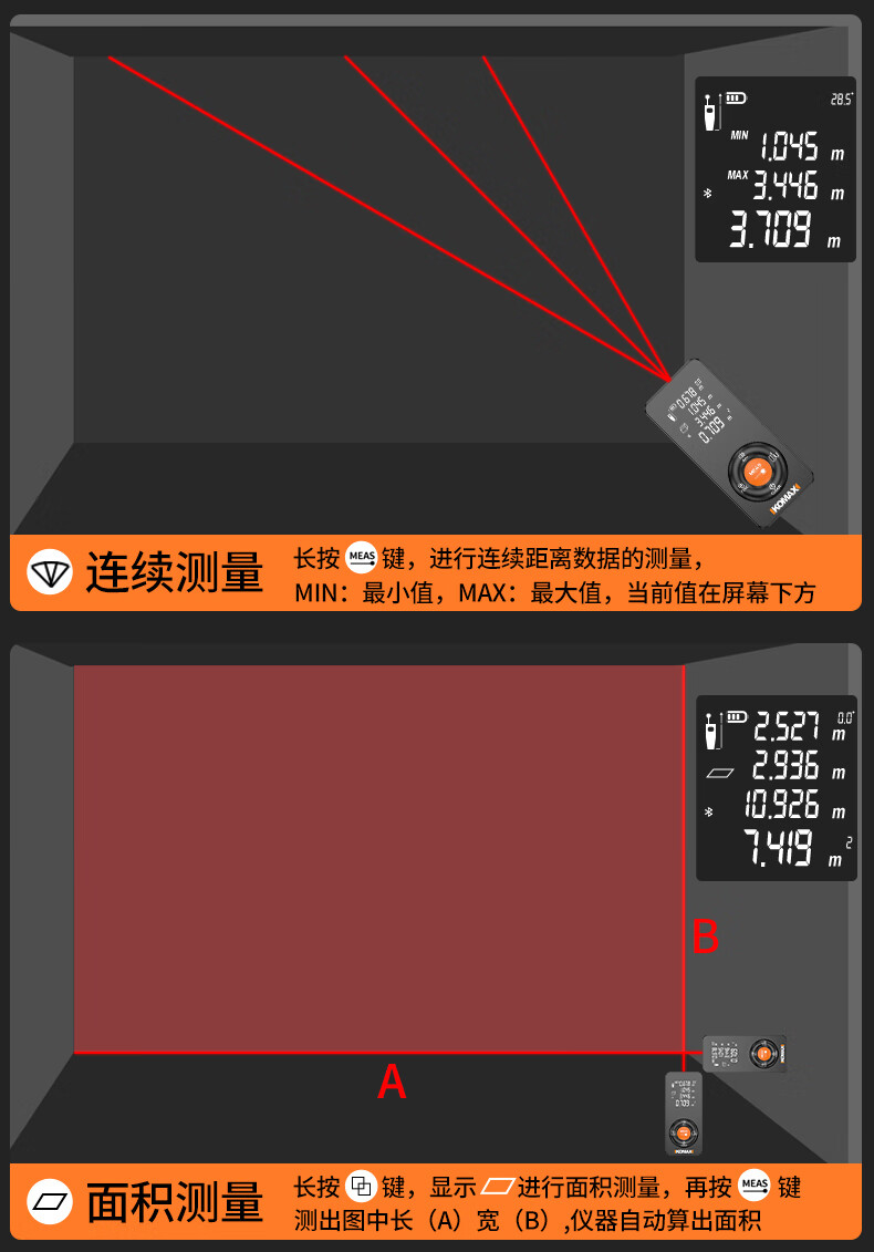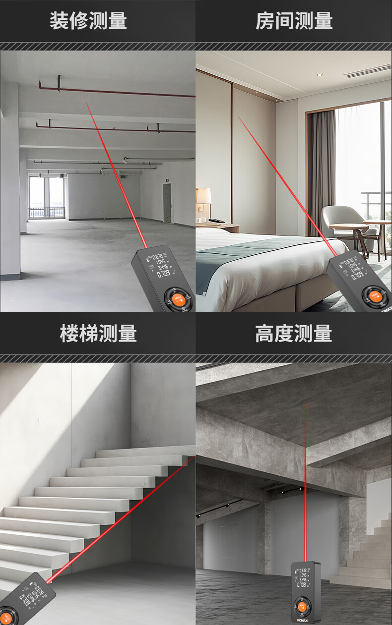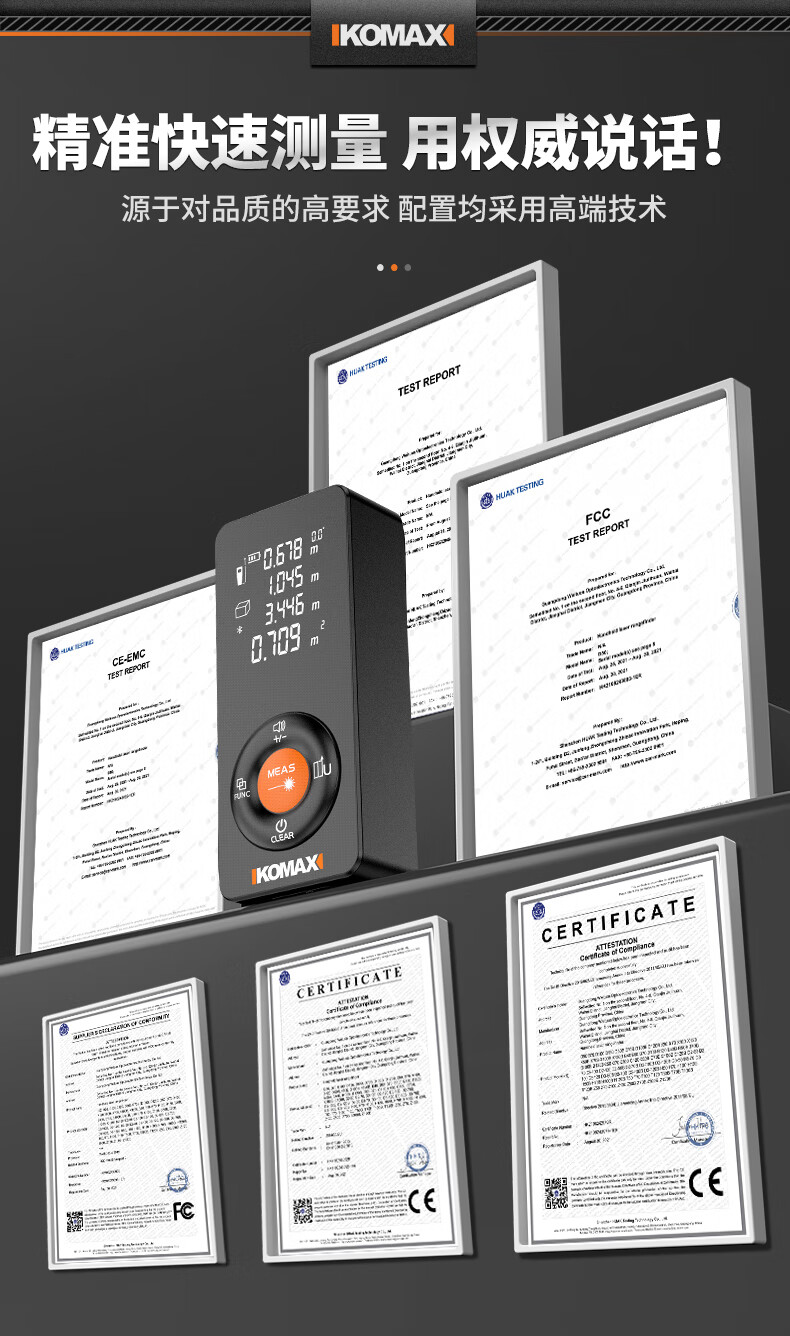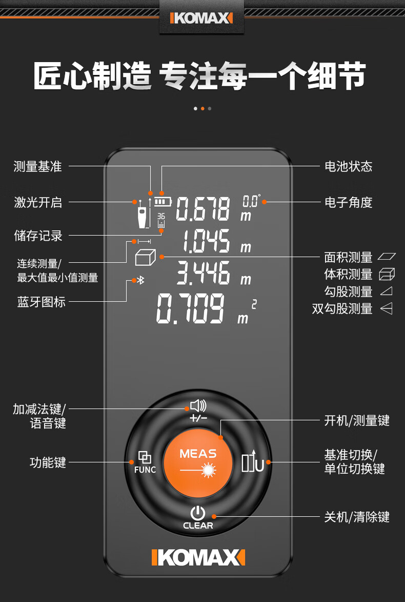 KOMAX laser rangefinder infrared high-precision industrial-grade handheld measuring room artifact lithium battery_voice_IP54 waterproof 50-meter black warrior